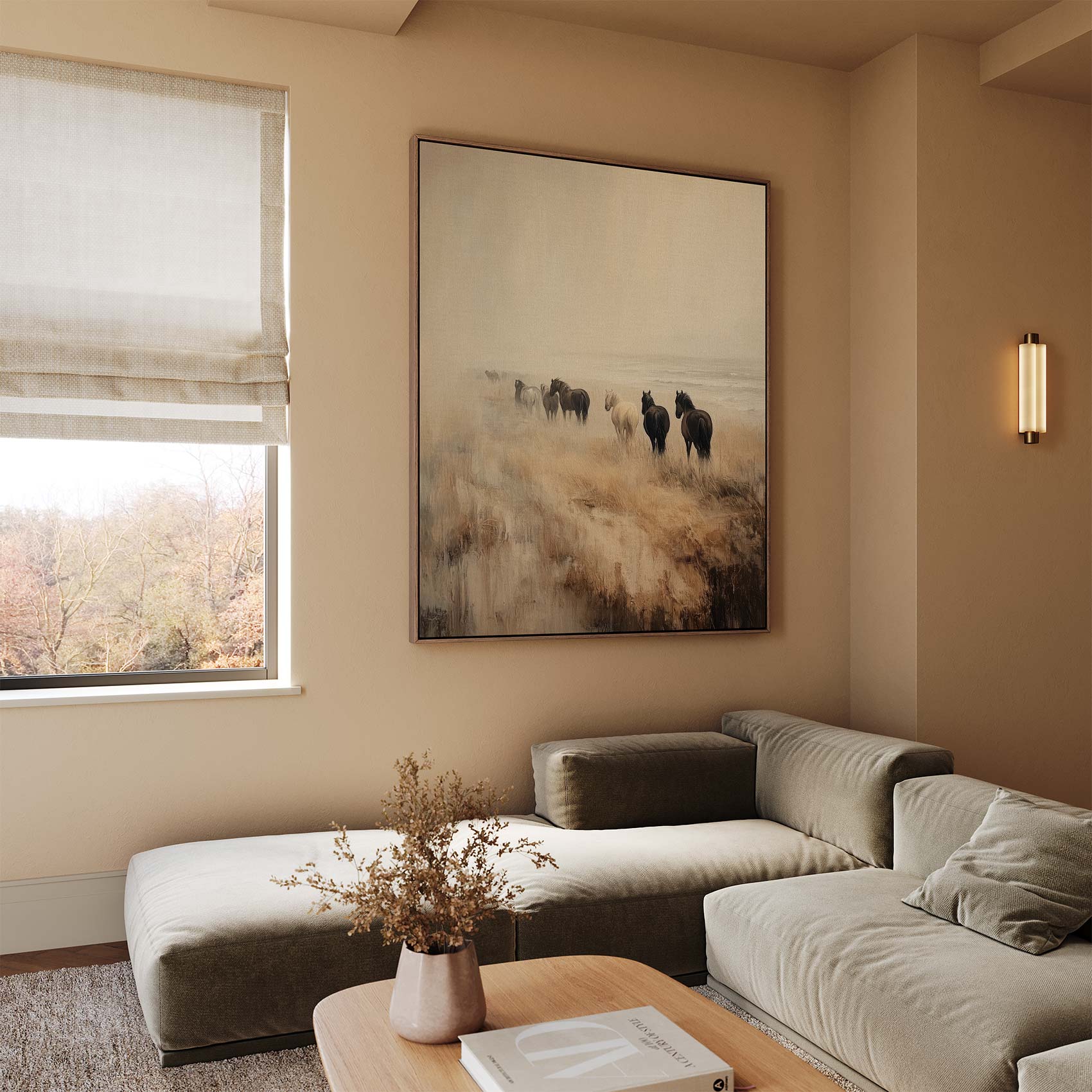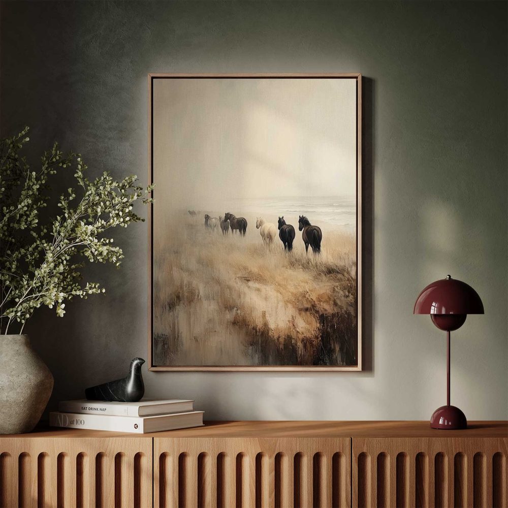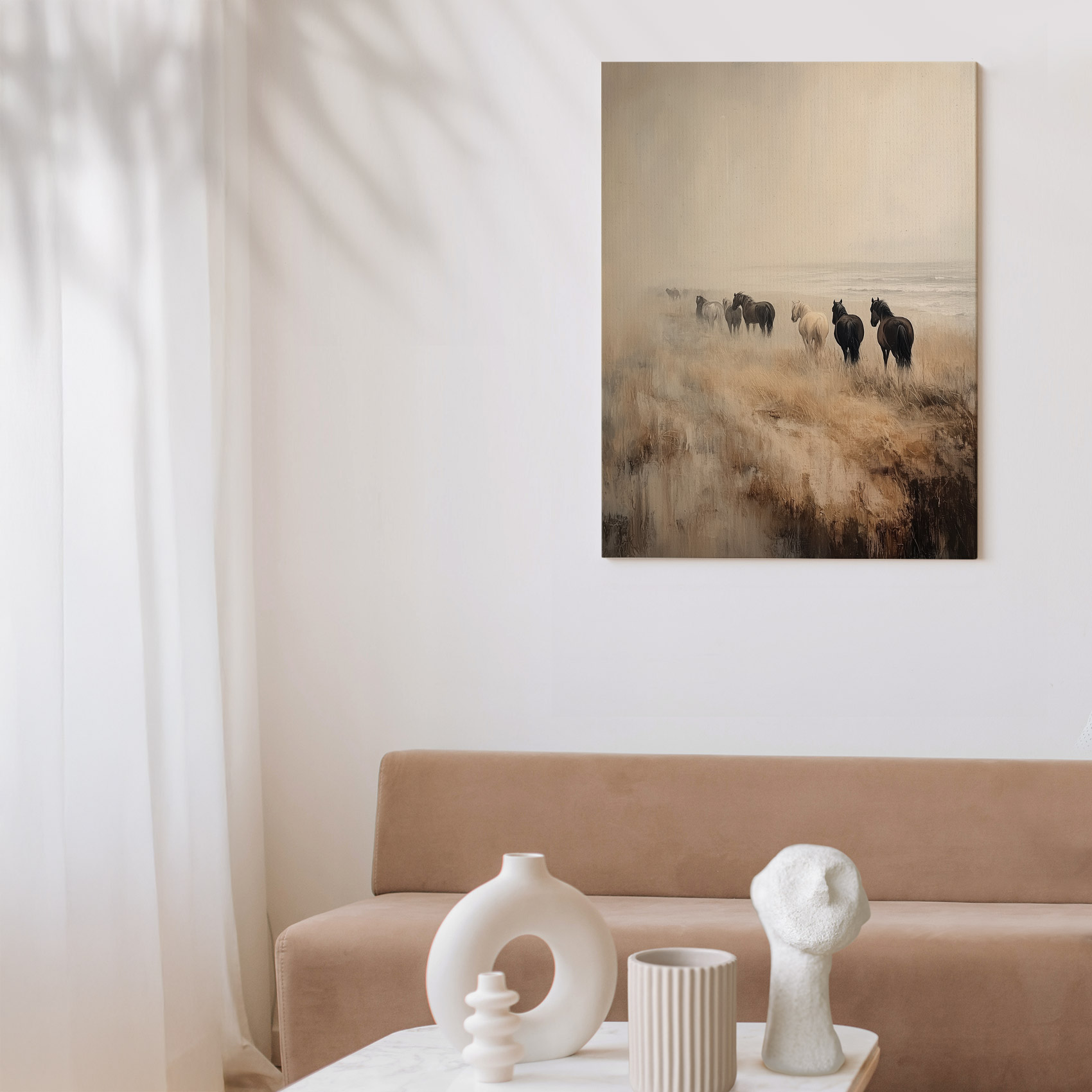 Terug naar collectie / Schilderijen / Dieren Schilderij / Impressionistische paarden aan zee