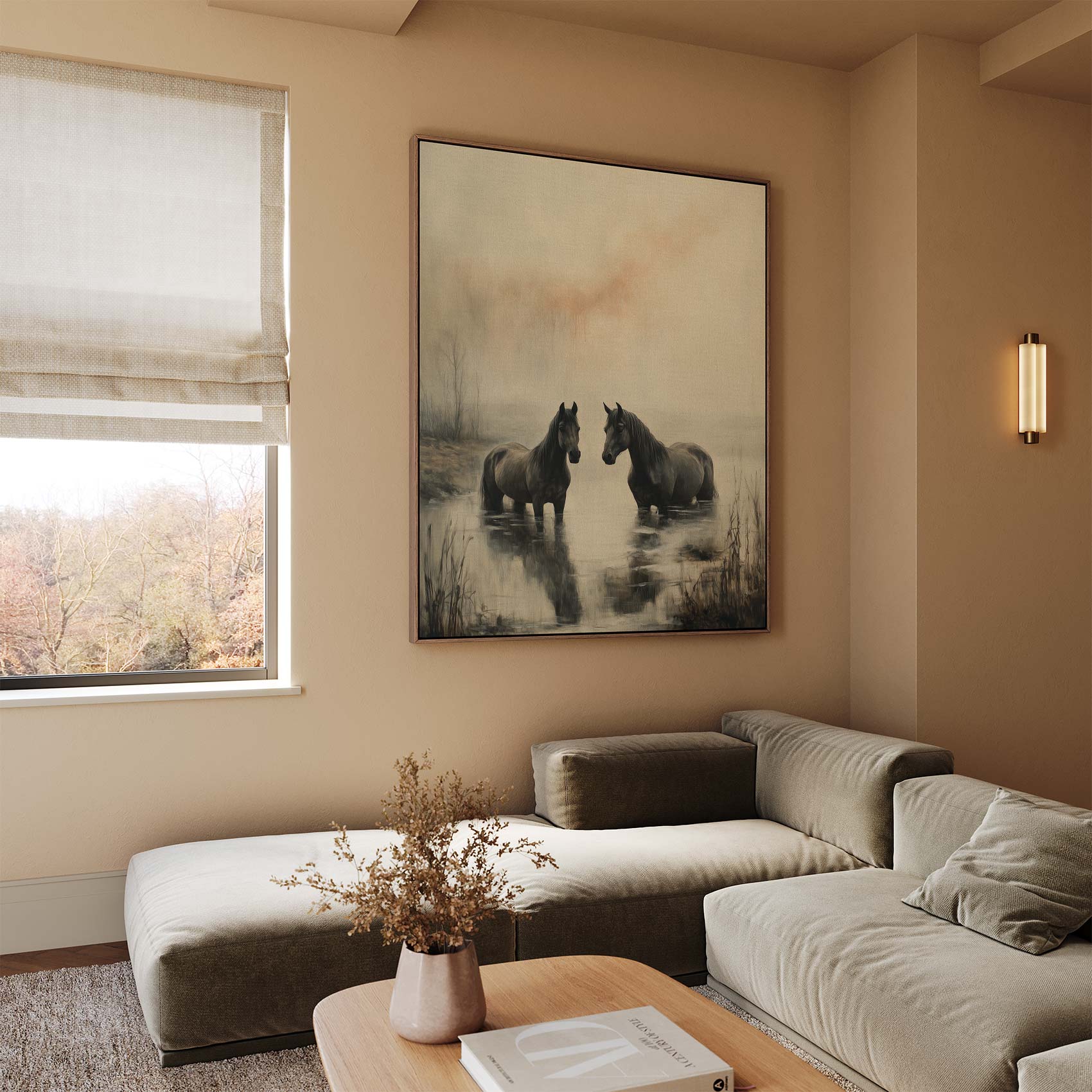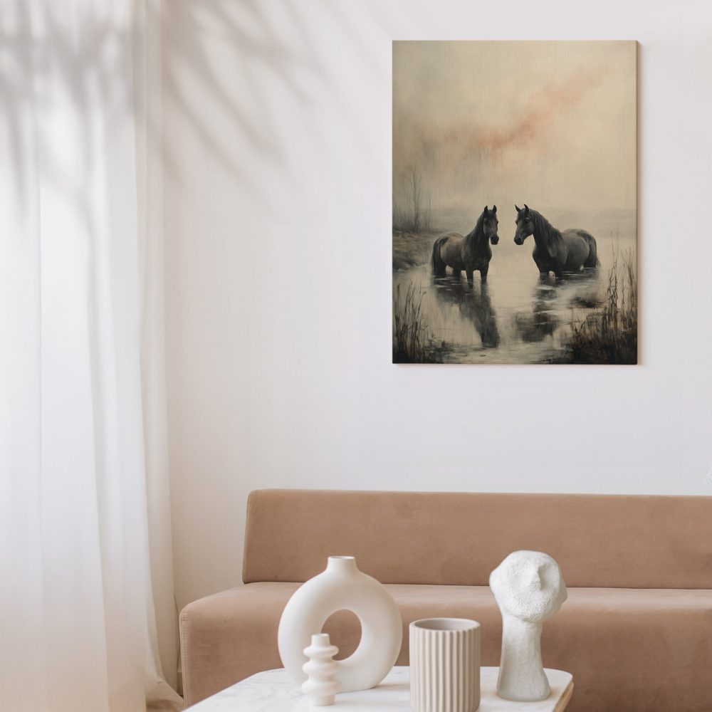 Terug naar collectie / Schilderijen / Dieren Schilderij / Impressionistische paarden bij water