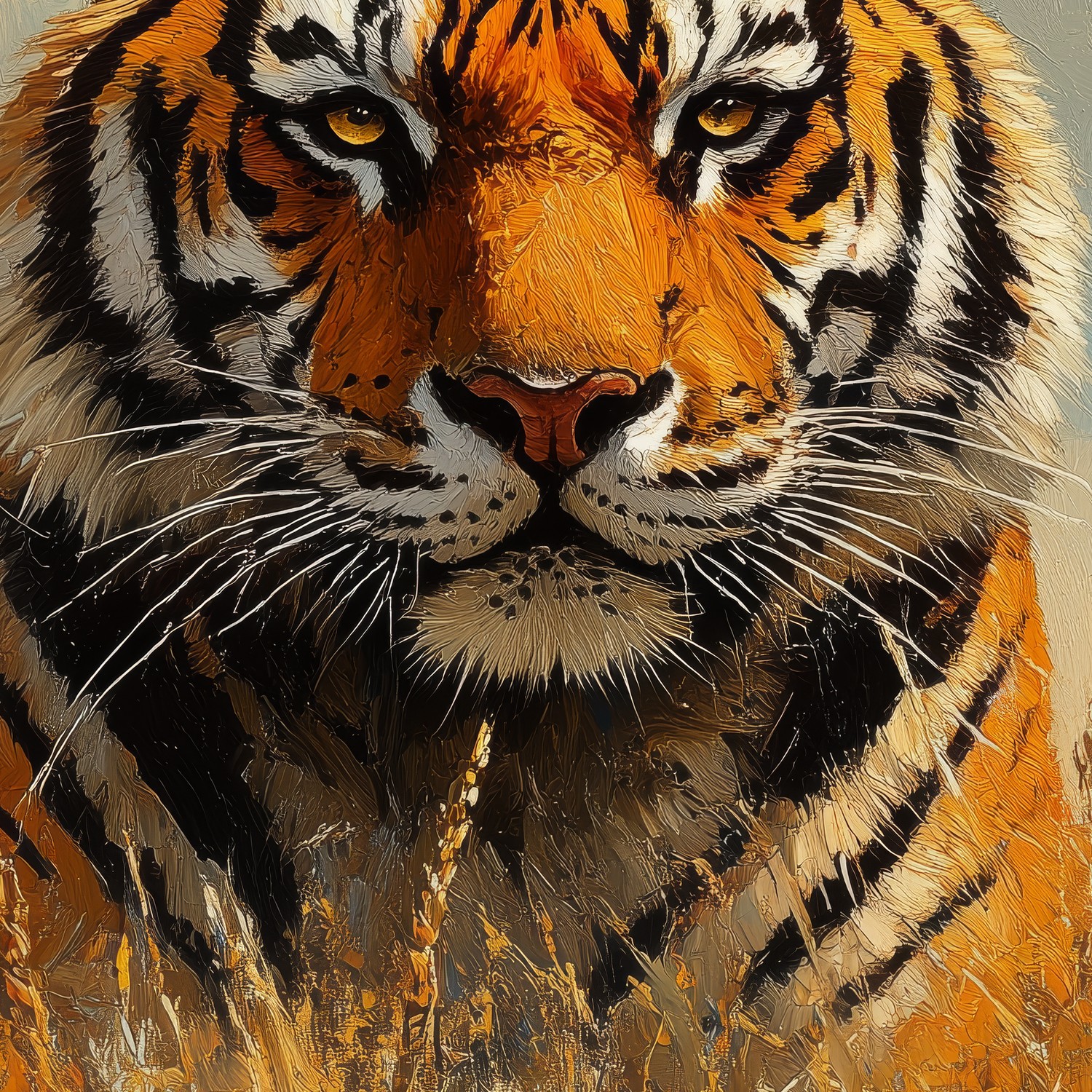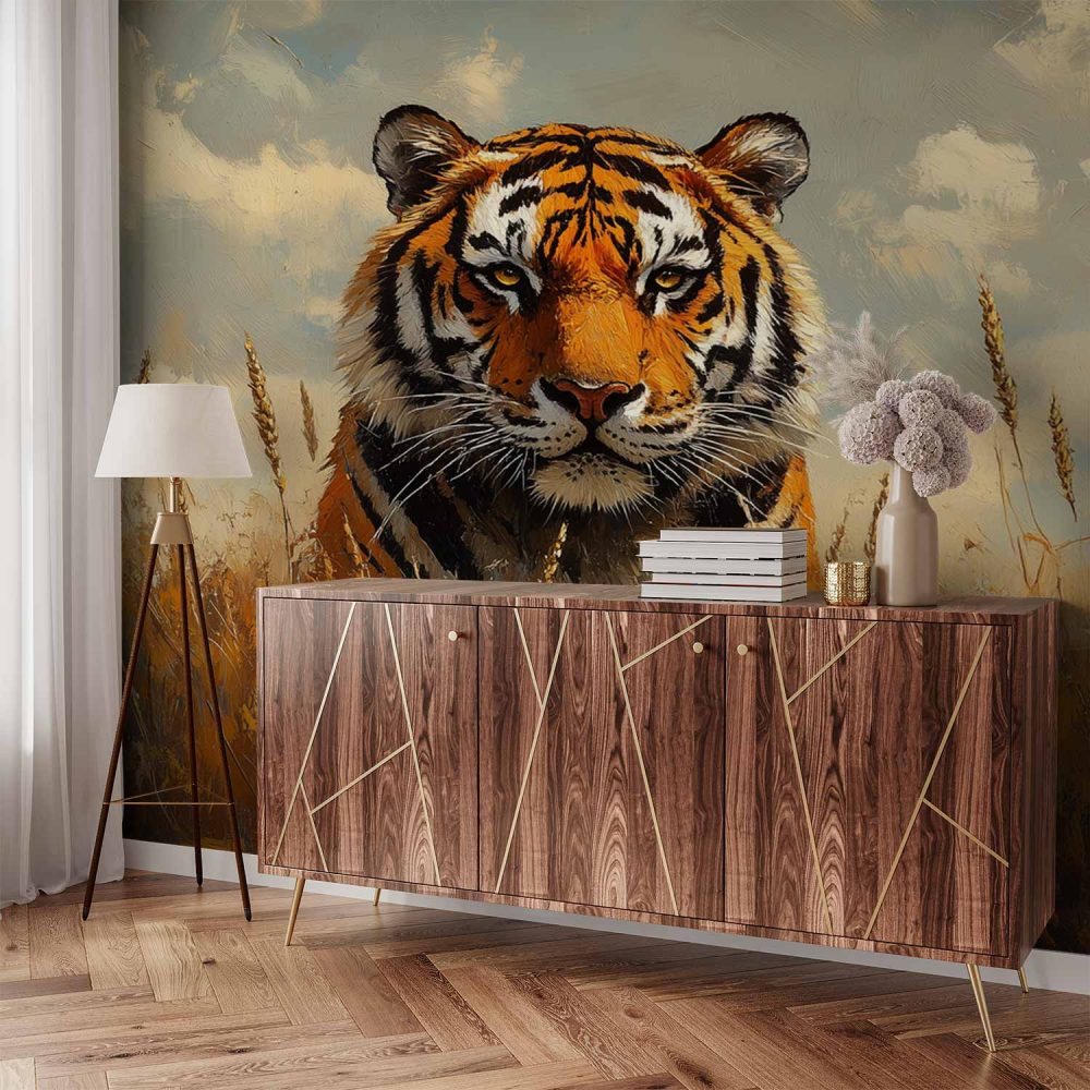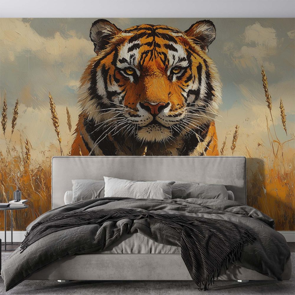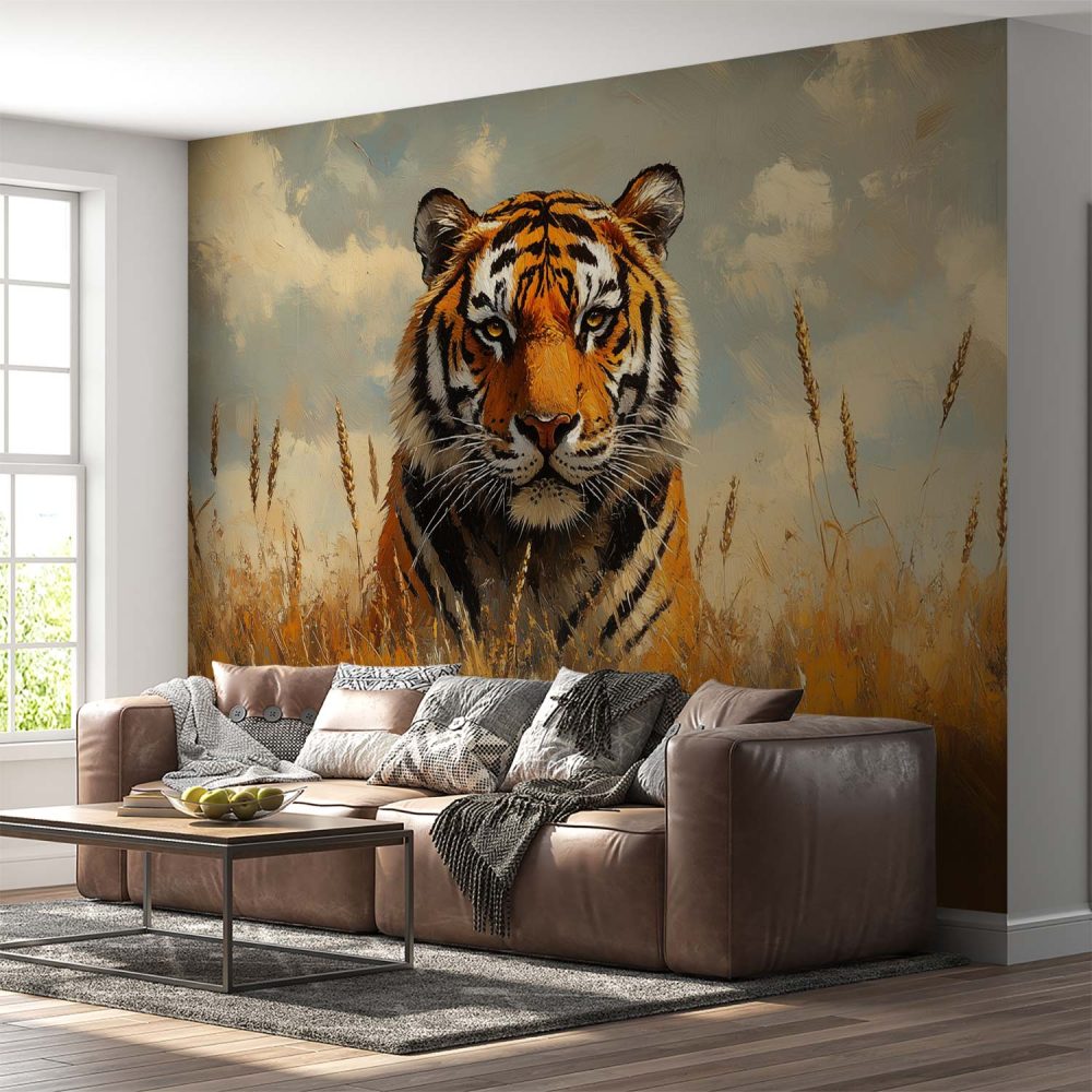 Terug naar collectie / Behang / Impressionistische tijger in gras behang
