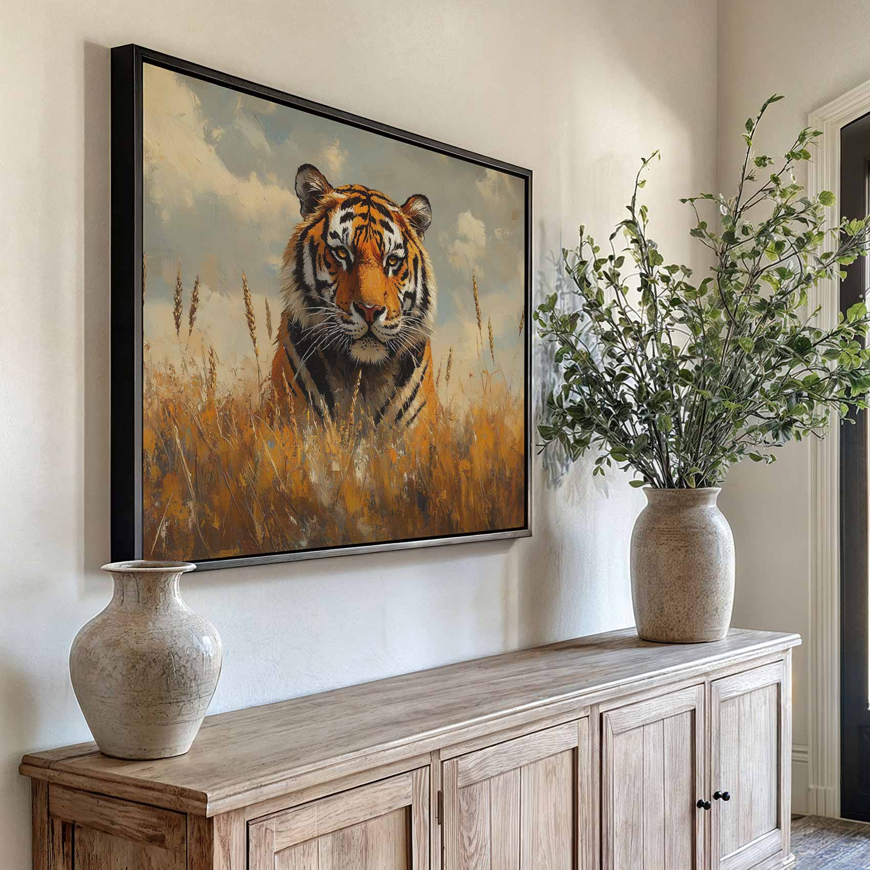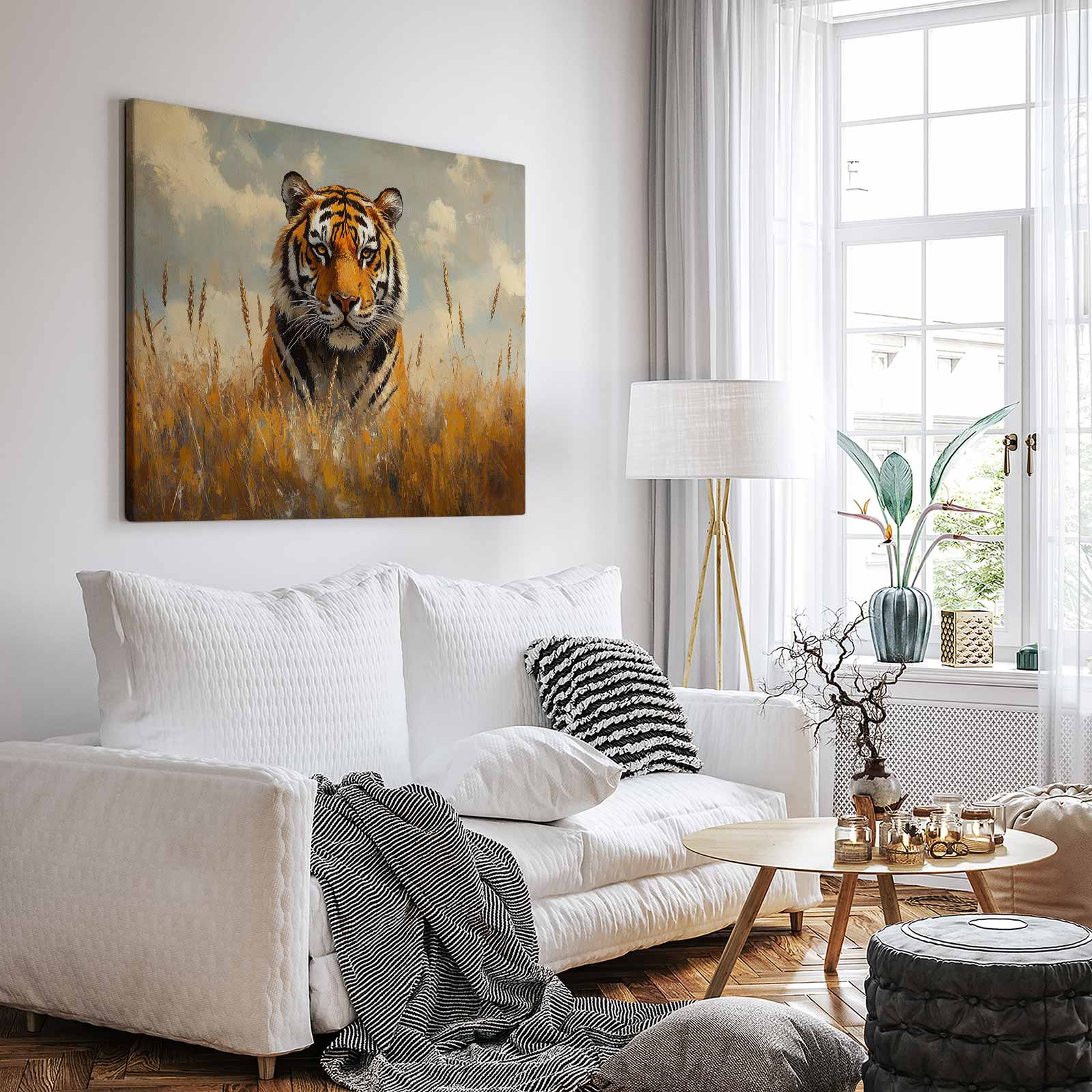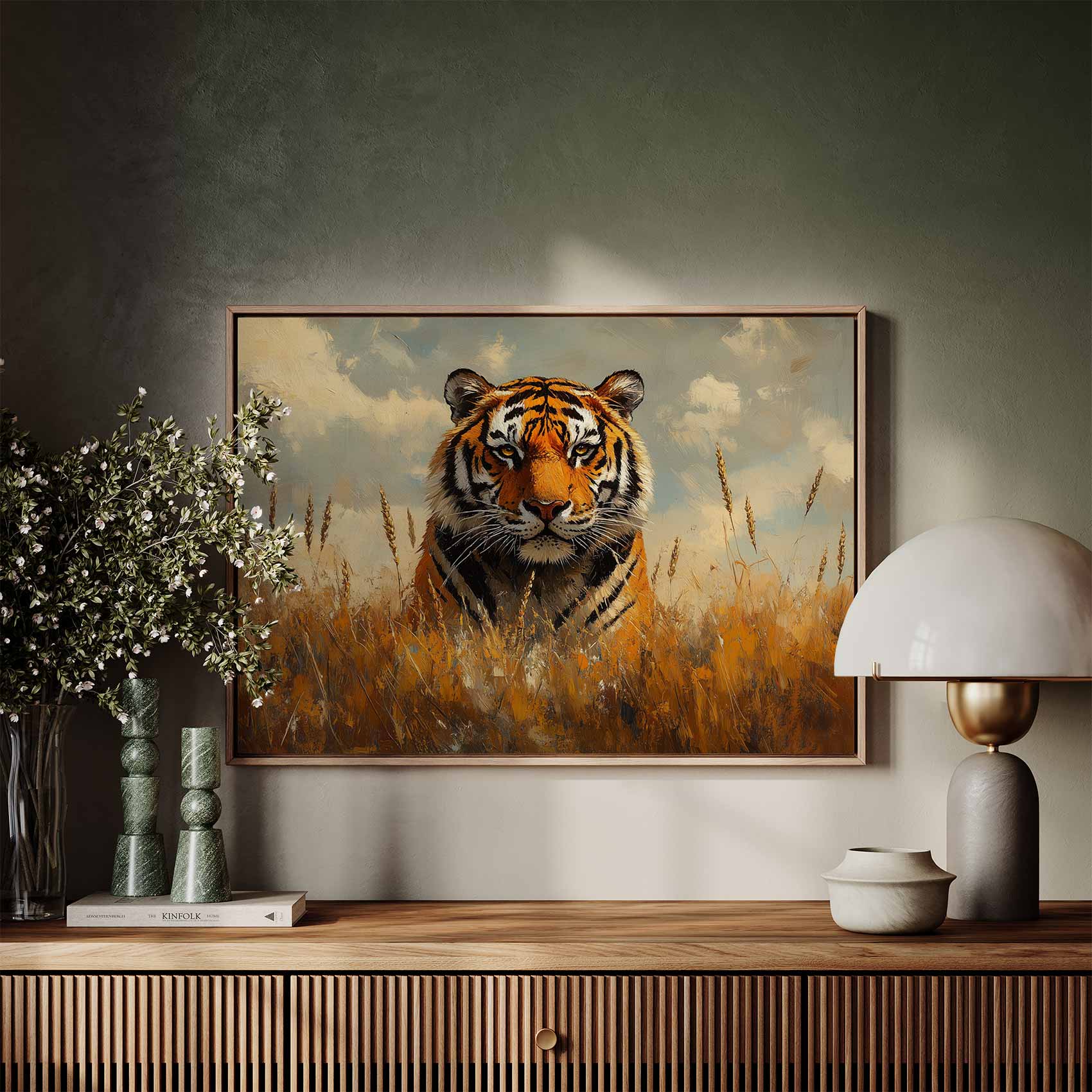 Terug naar collectie / Schilderijen / Dieren Schilderij / Impressionistische tijger in gras