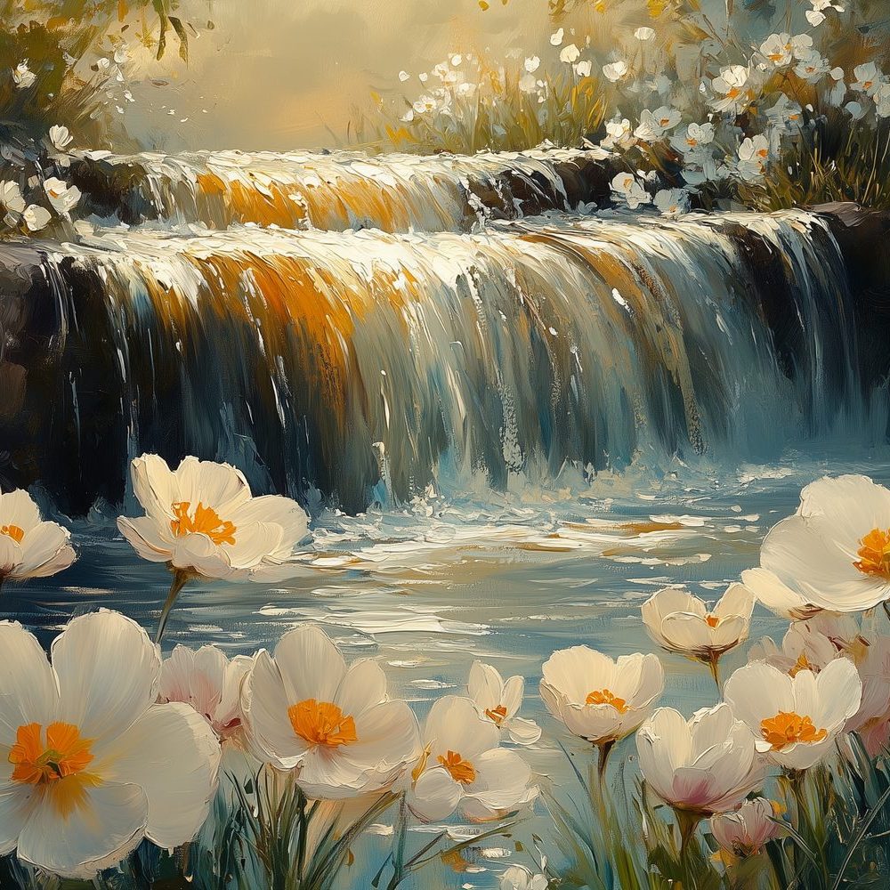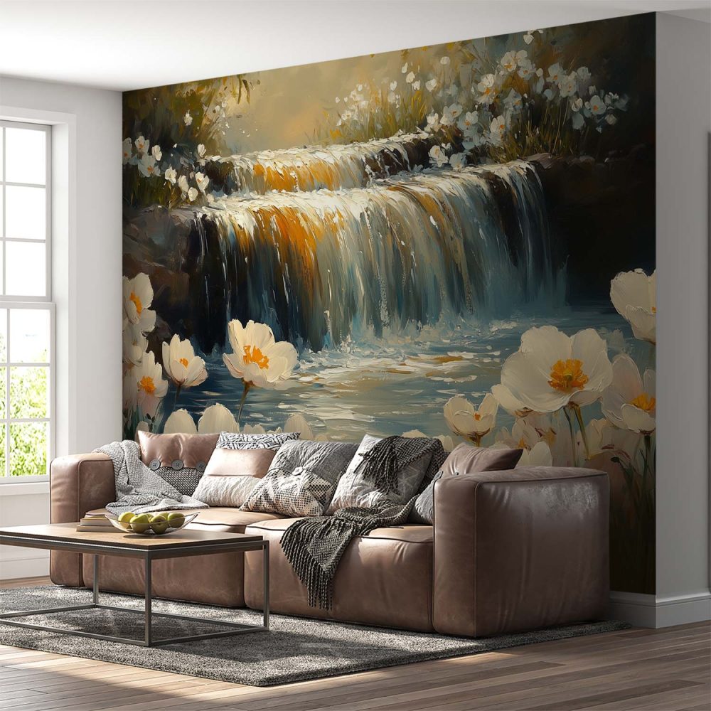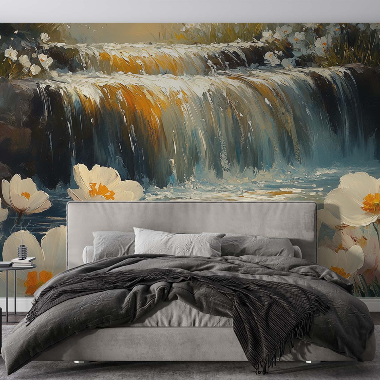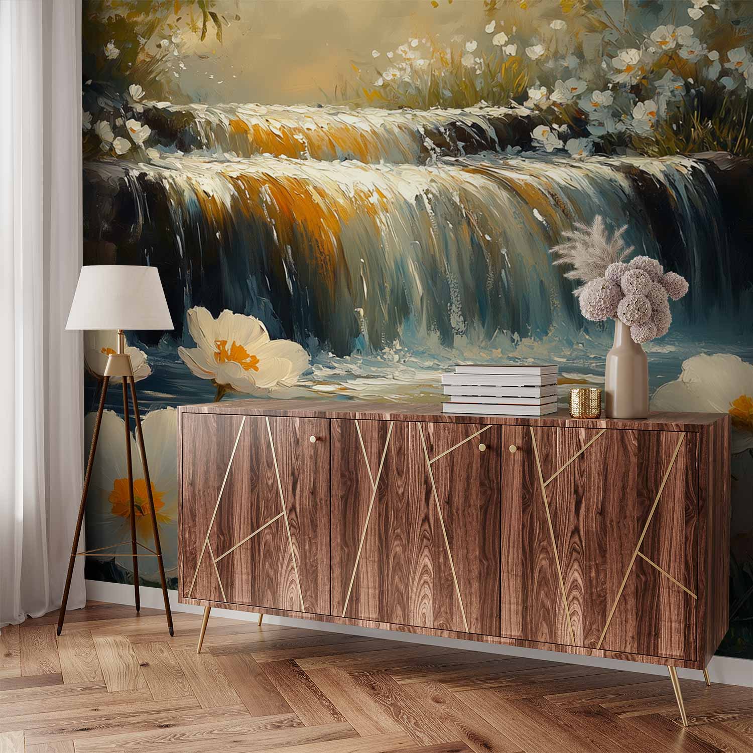 Terug naar collectie / Behang / Abstract behang / Impressionistische waterval met bloemen behang