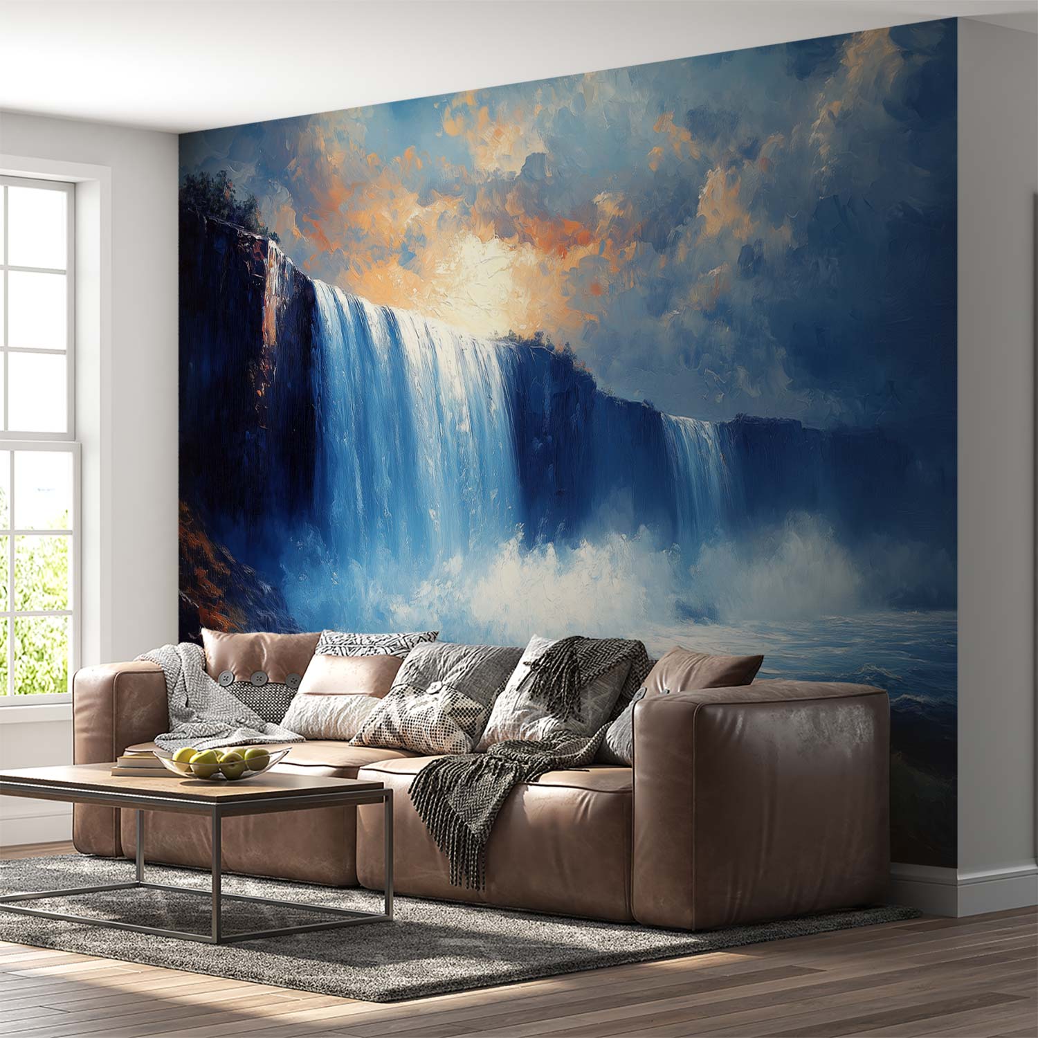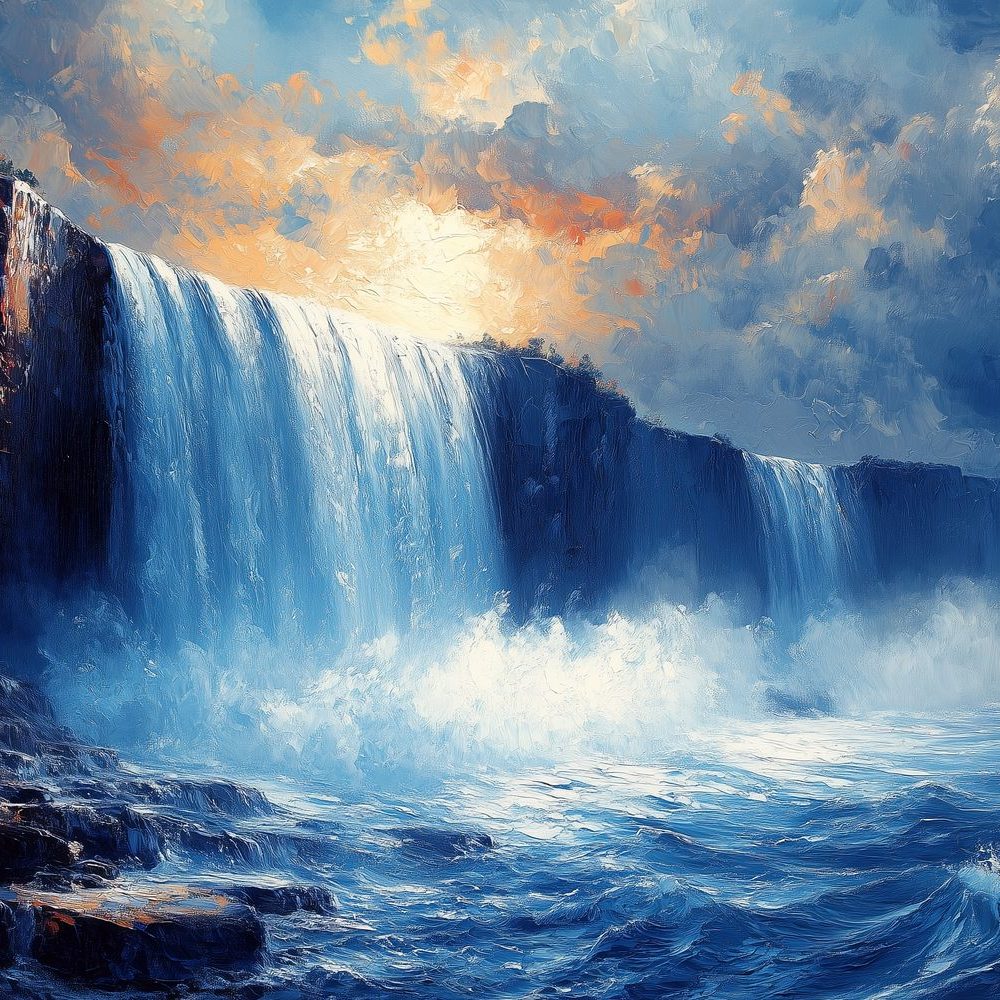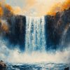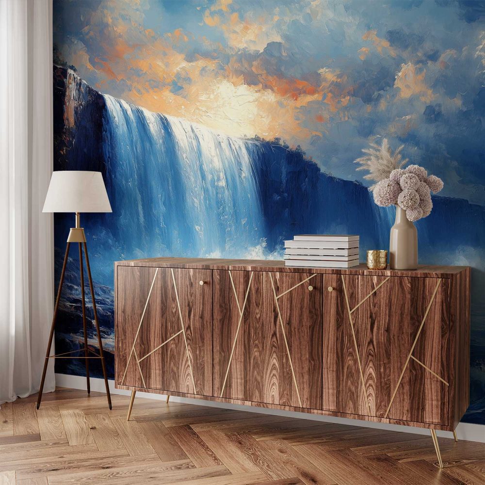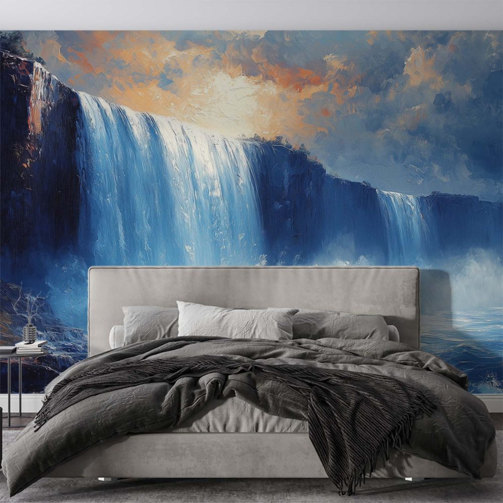 Impressionistische waterval schildering behang