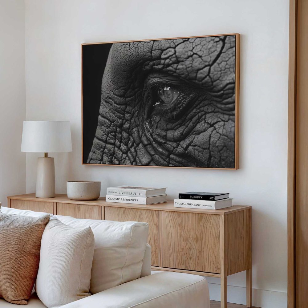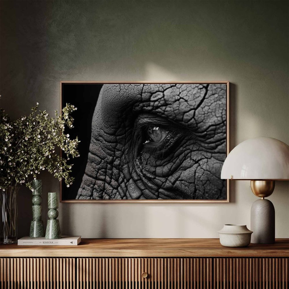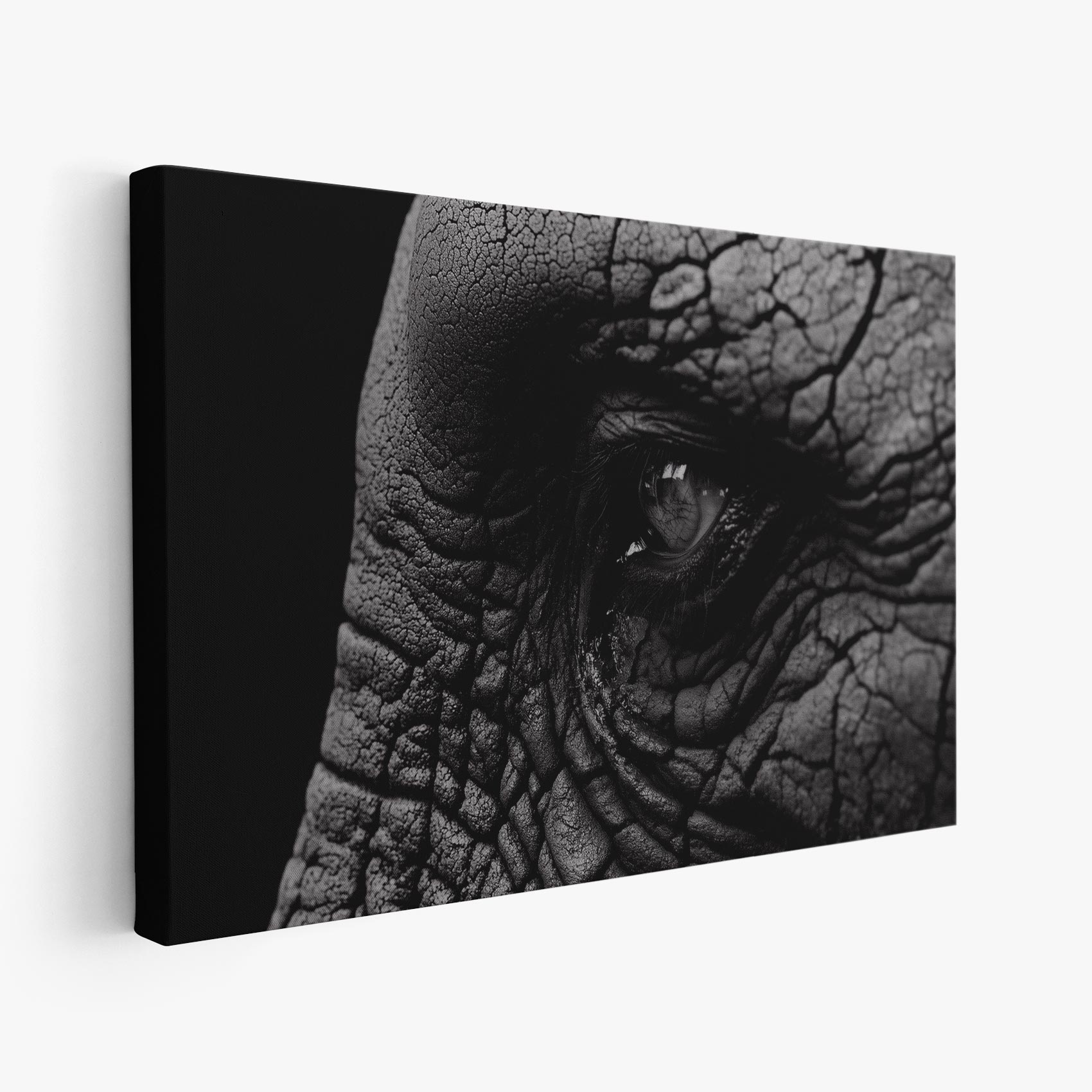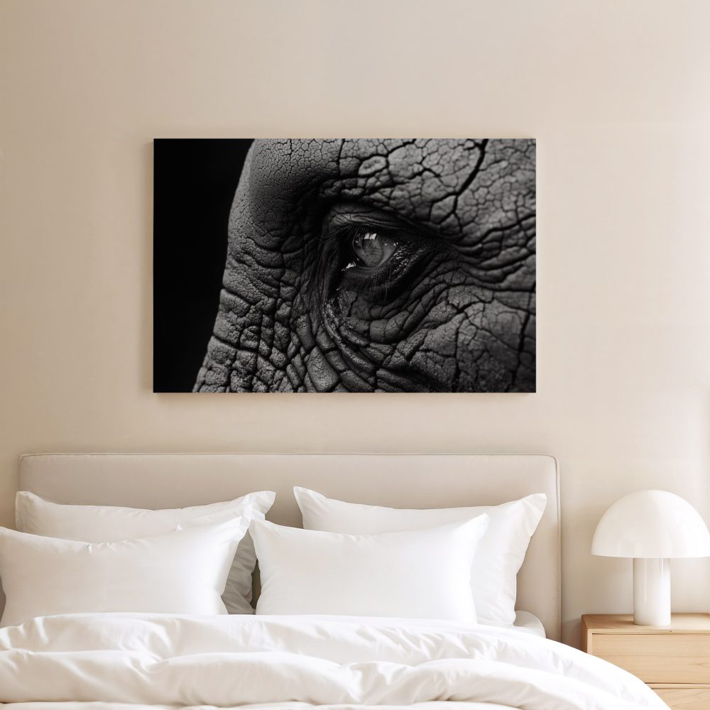 Terug naar collectie / Schilderijen / Dieren Schilderij / Indringend olifantenoog zwart-wit