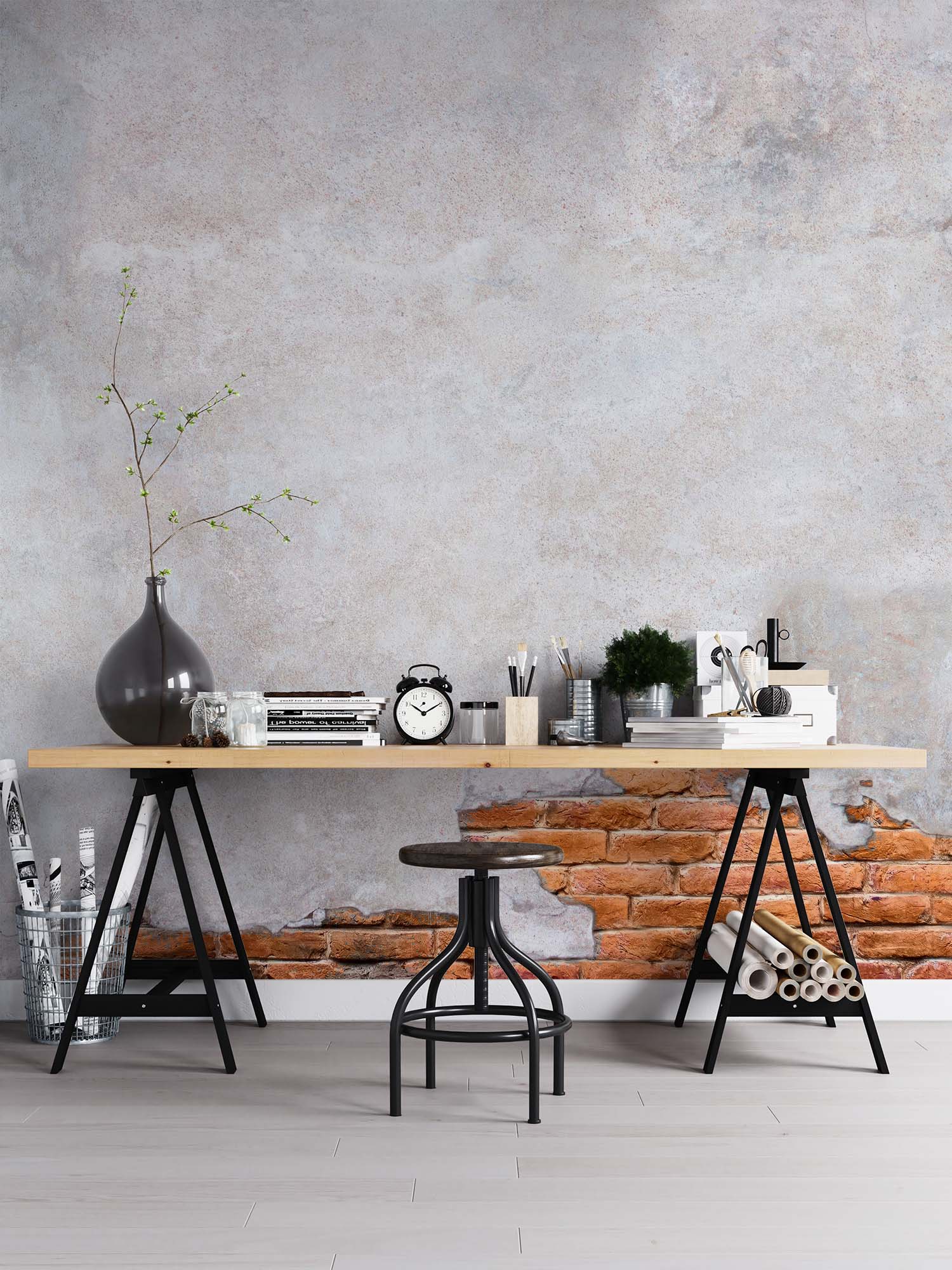 Terug naar collectie / Behang / Baksteen behang / Industrieel Behang: Rode Baksteen & Cement