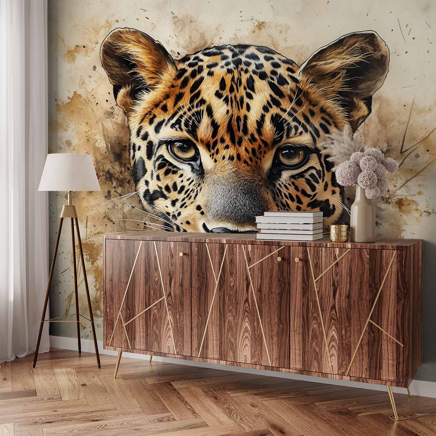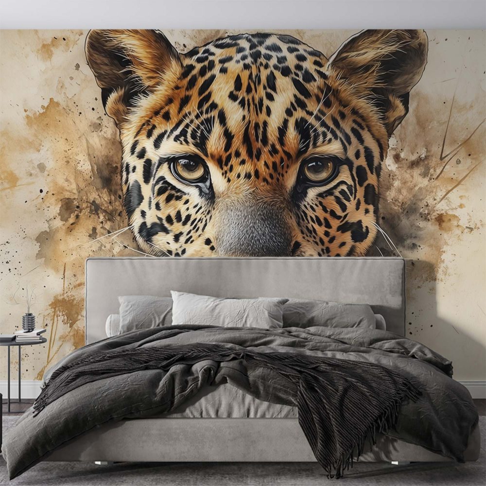 Intens luipaard portret close-up behang