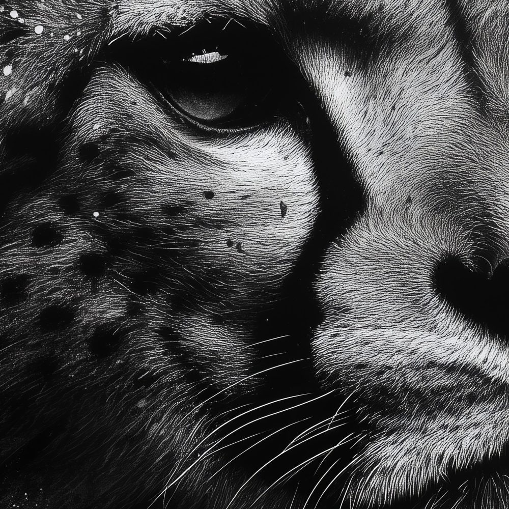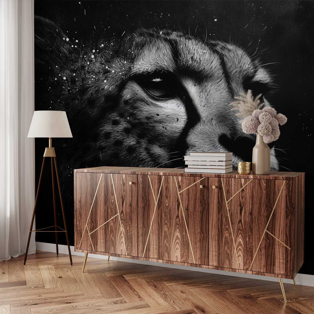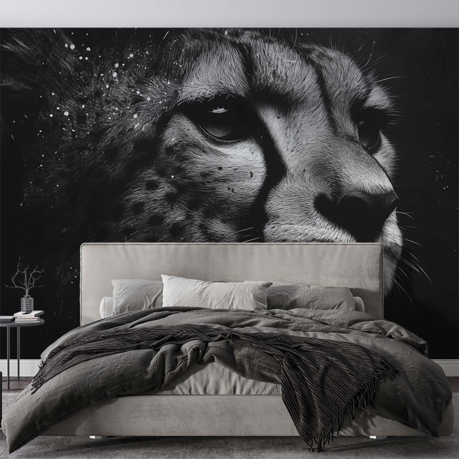 Terug naar collectie / Behang / Intens Zwart-Wit Jachtluipaardportret behang