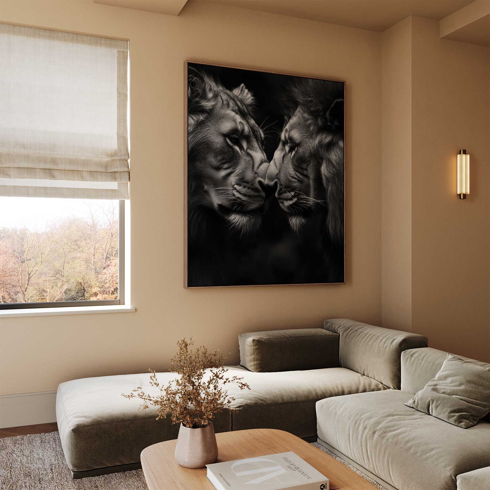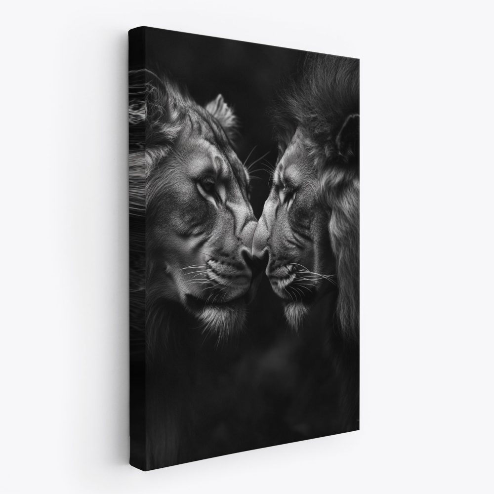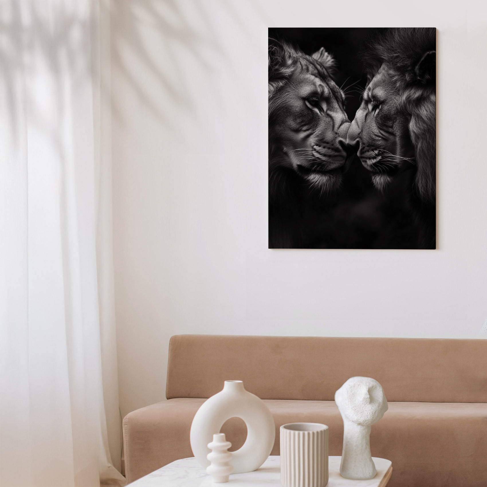 Terug naar collectie / Schilderijen / Dieren Schilderij / Intieme leeuwenmoment zwart-wit