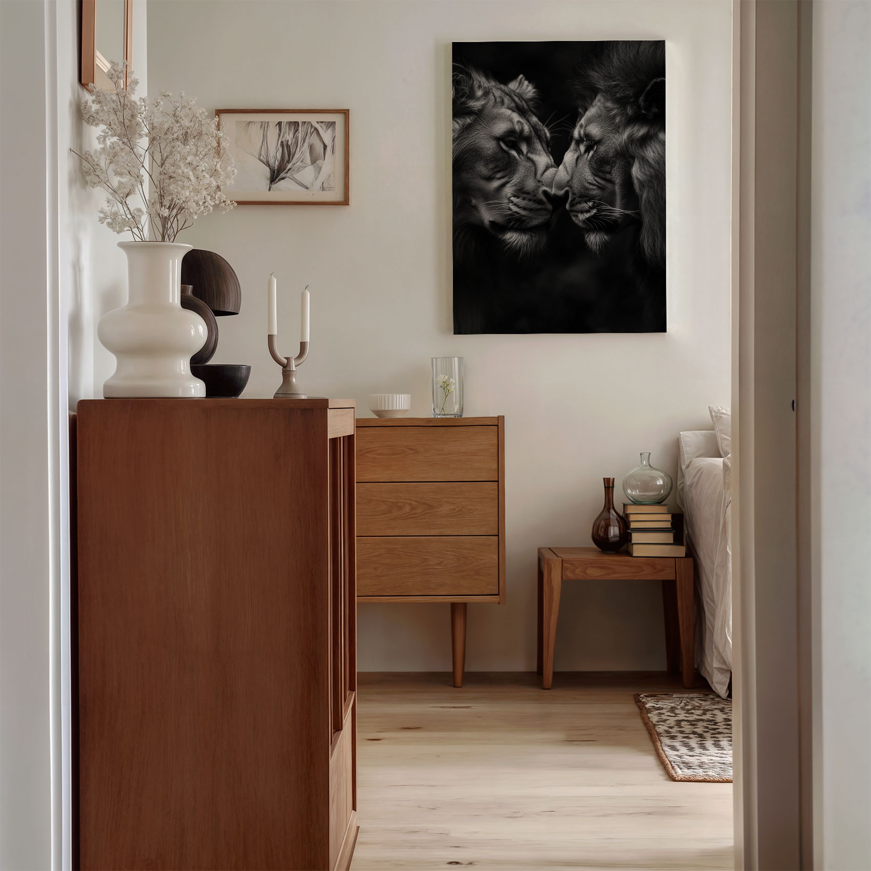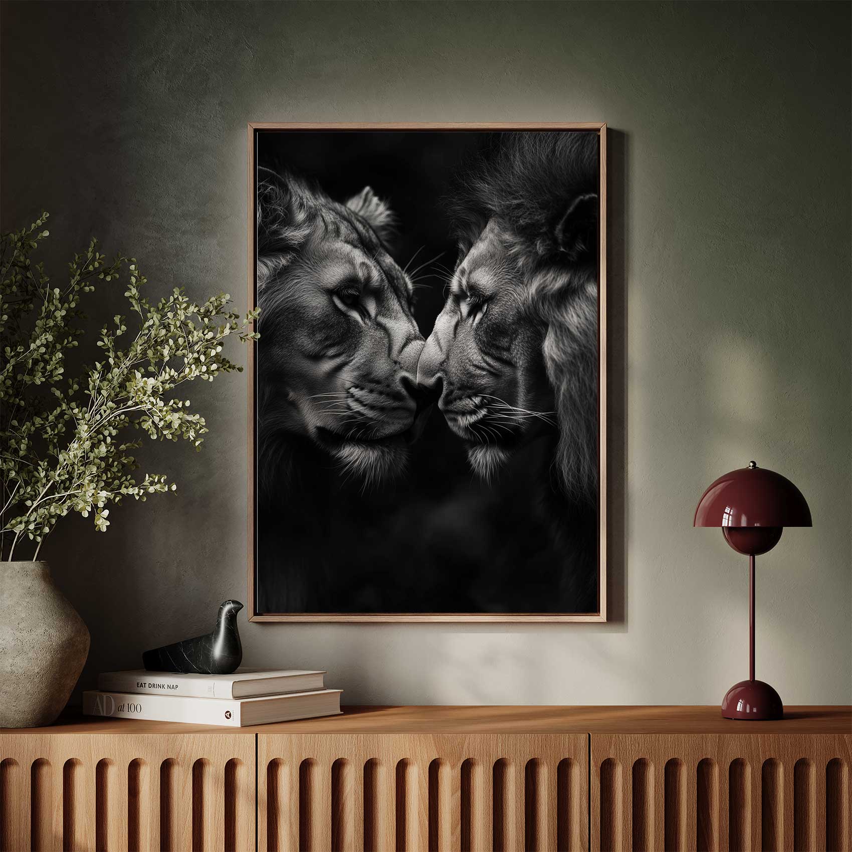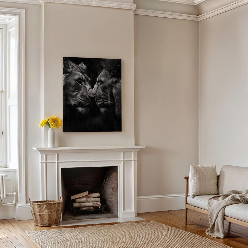 Terug naar collectie / Schilderijen / Dieren Schilderij / Intieme leeuwenmoment zwart-wit