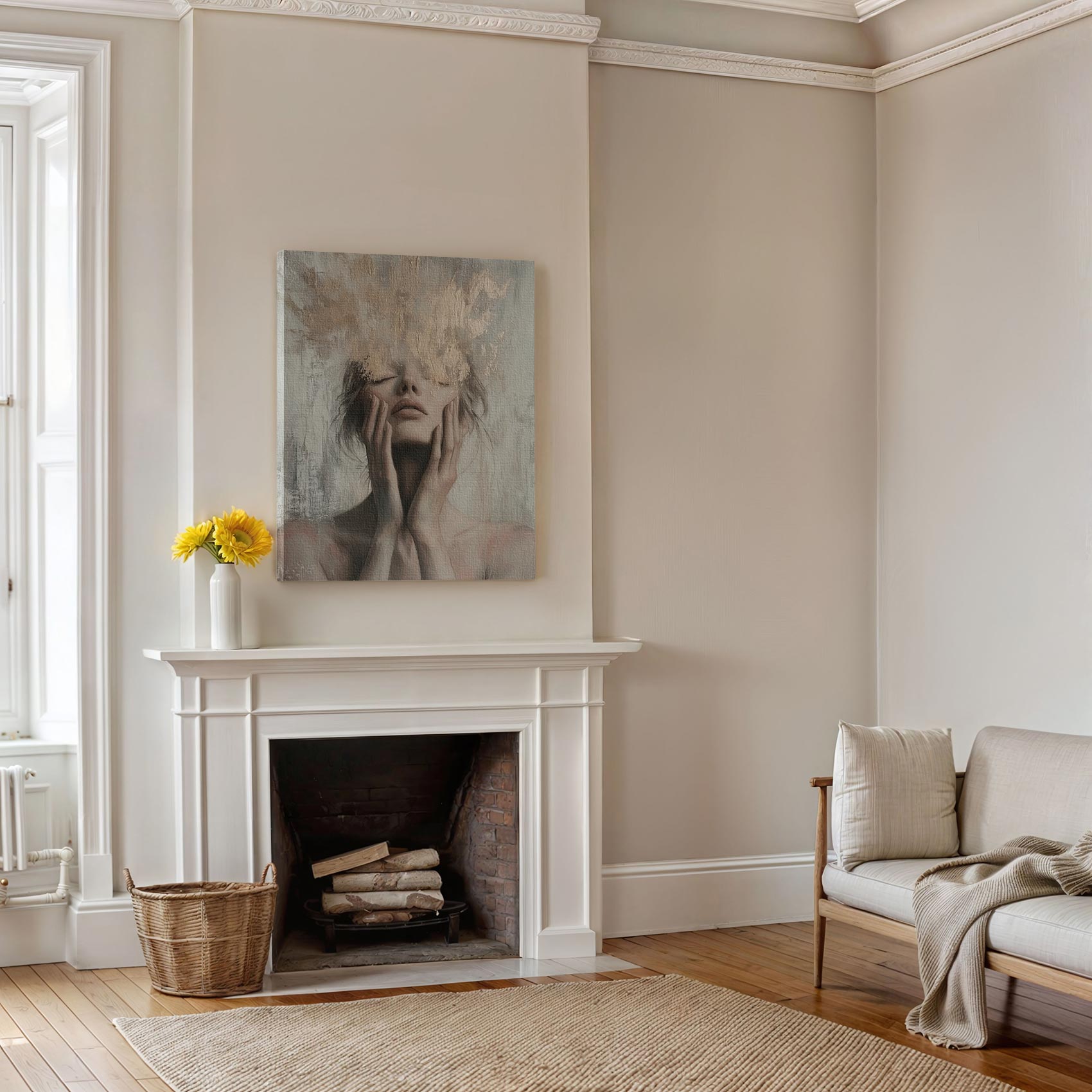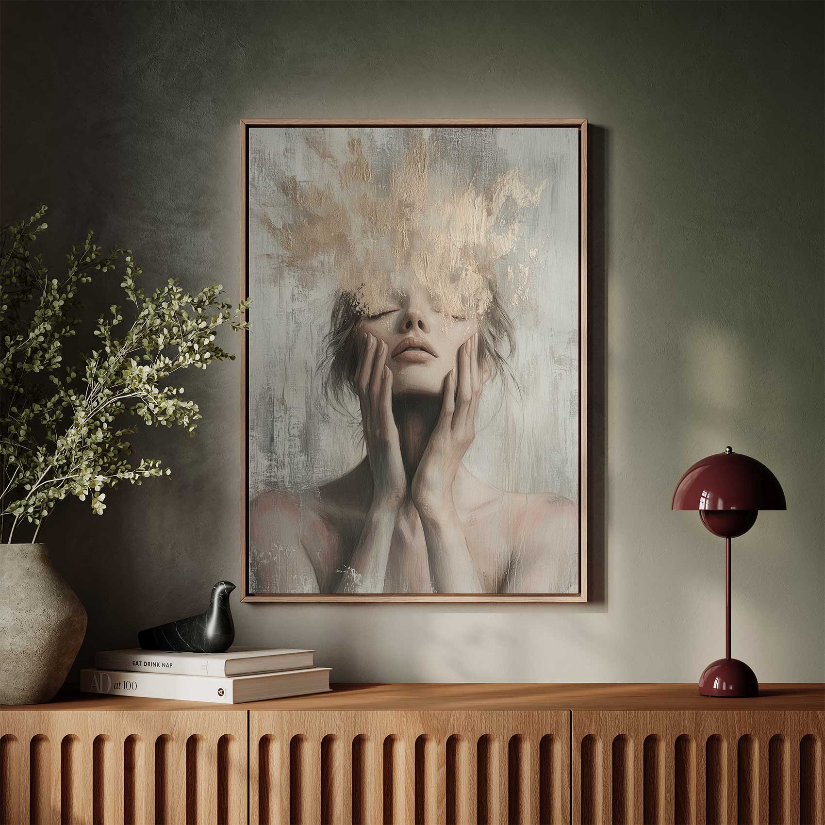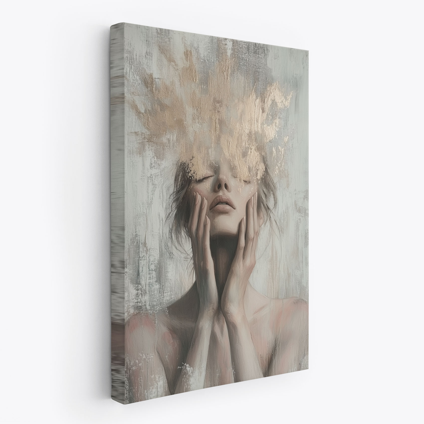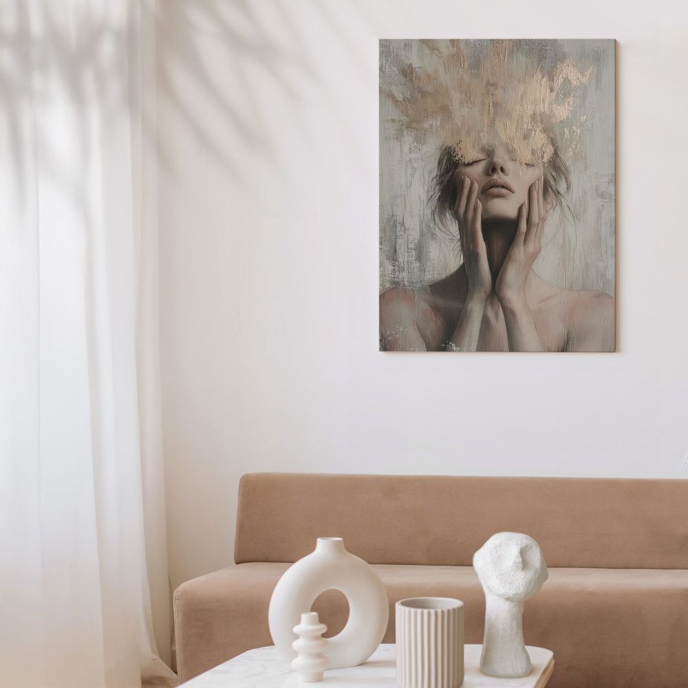 Terug naar collectie / Schilderijen / Figuren en Vormen Schilderij / Introspektief gouden vrouwportret