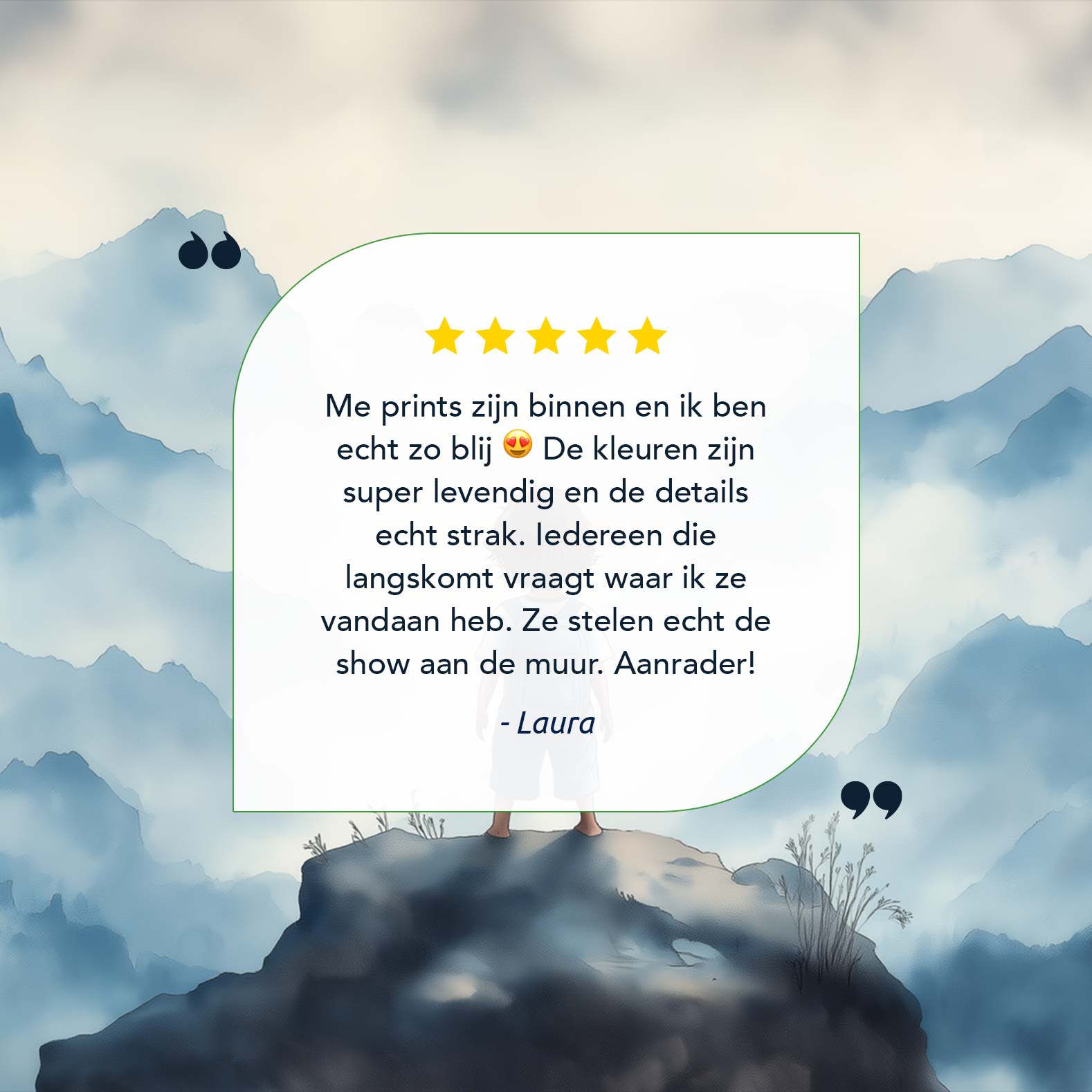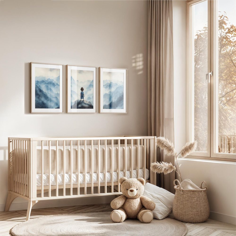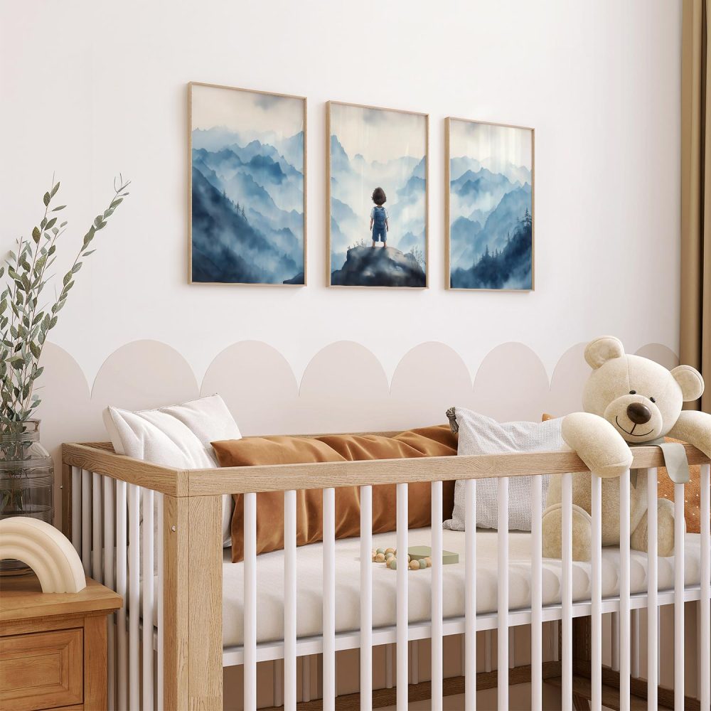 Terug naar collectie / Kinderkamer posters / Avontuurlijk posters / Jonge Avonturier in Mistige Bergen – Droom en Ontdek