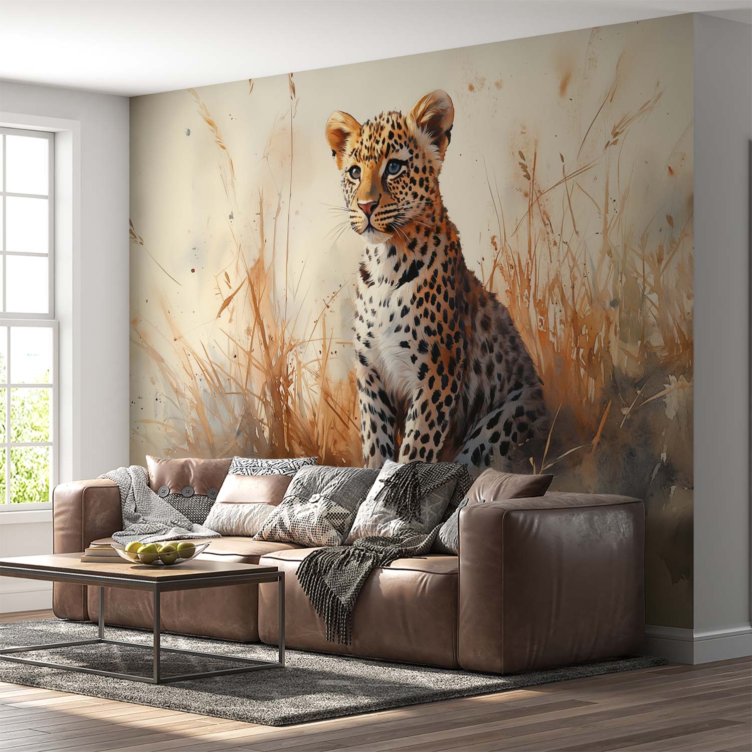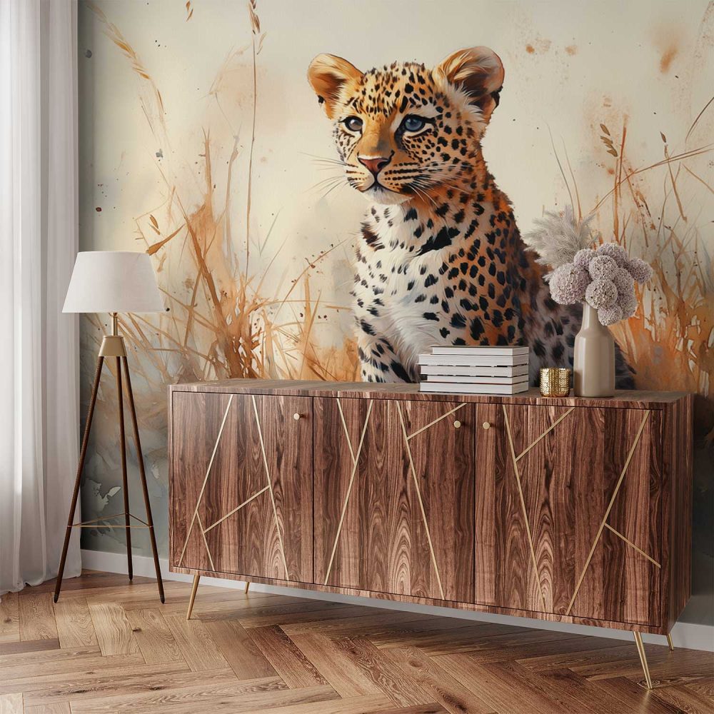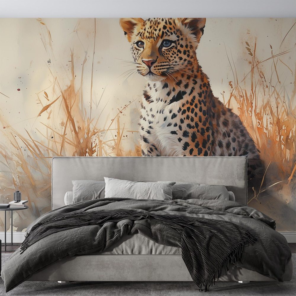 Terug naar collectie / Behang / Jonge luipaard in gras behang
