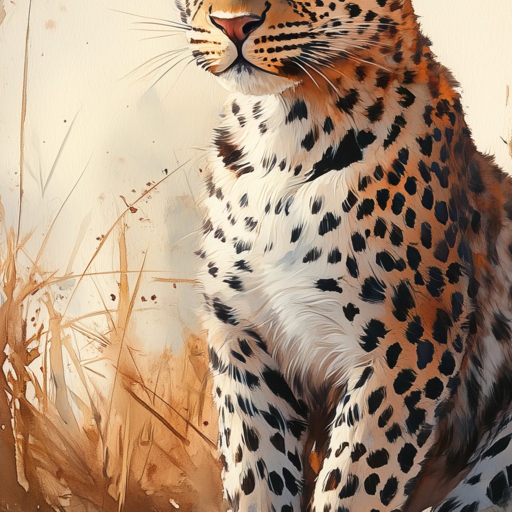 Jonge luipaard in gras behang