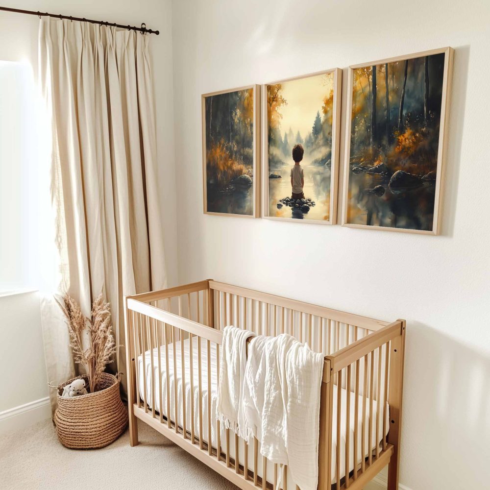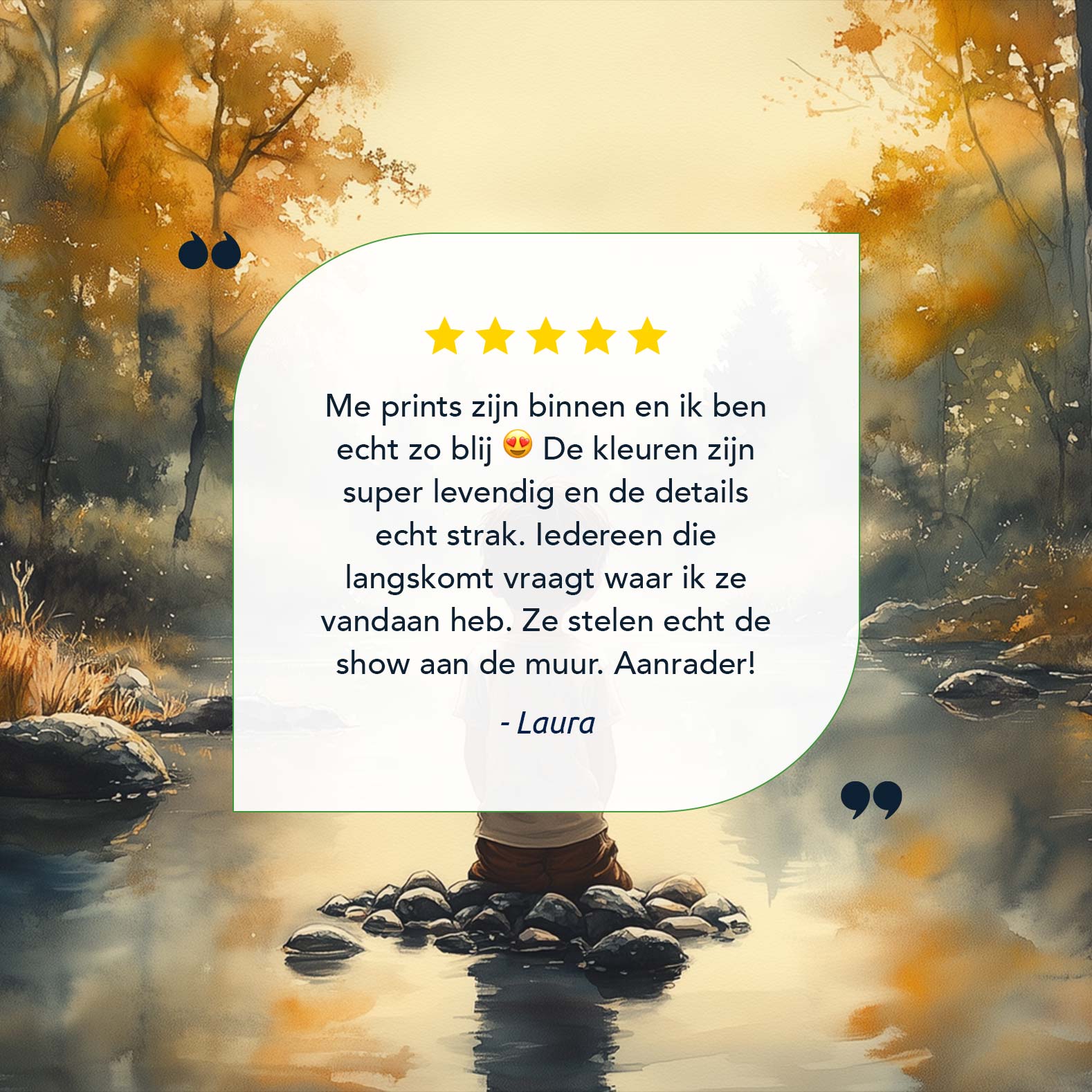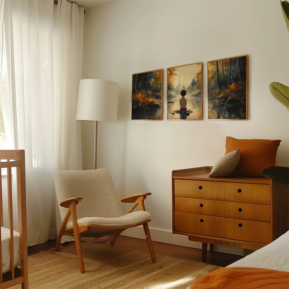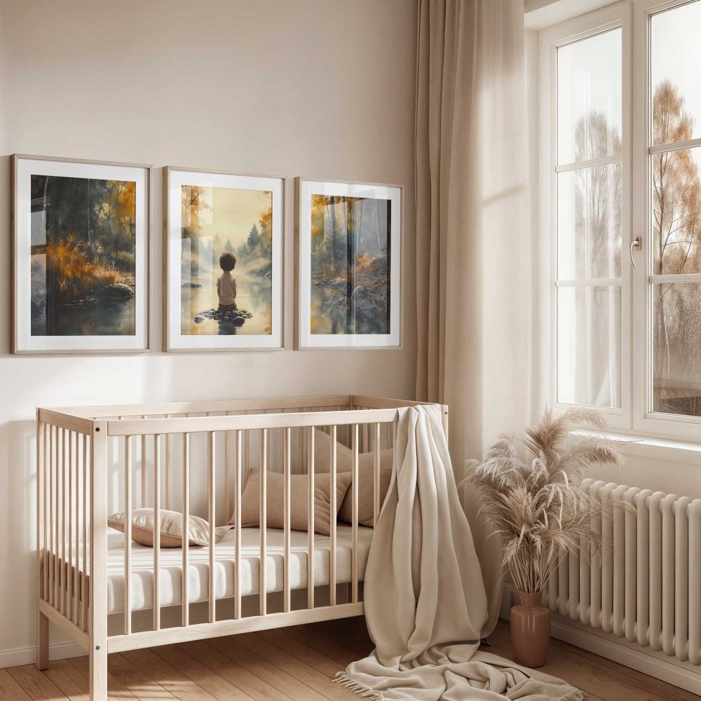 Terug naar collectie / Kinderkamer posters / Jongen bij de rivier: Dromerig herfsttafereel
