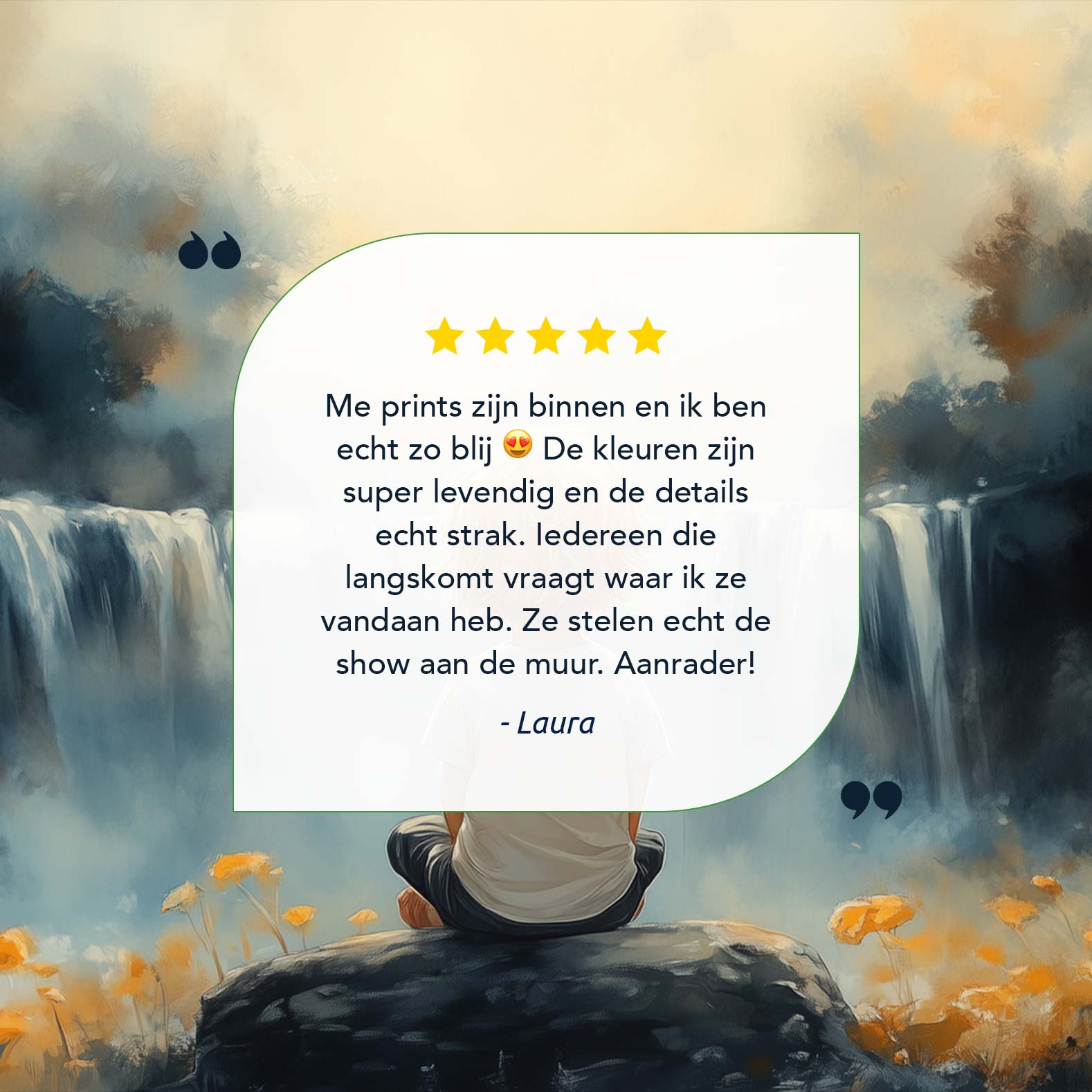 Jongen bij waterval in dromerig bloemenveld