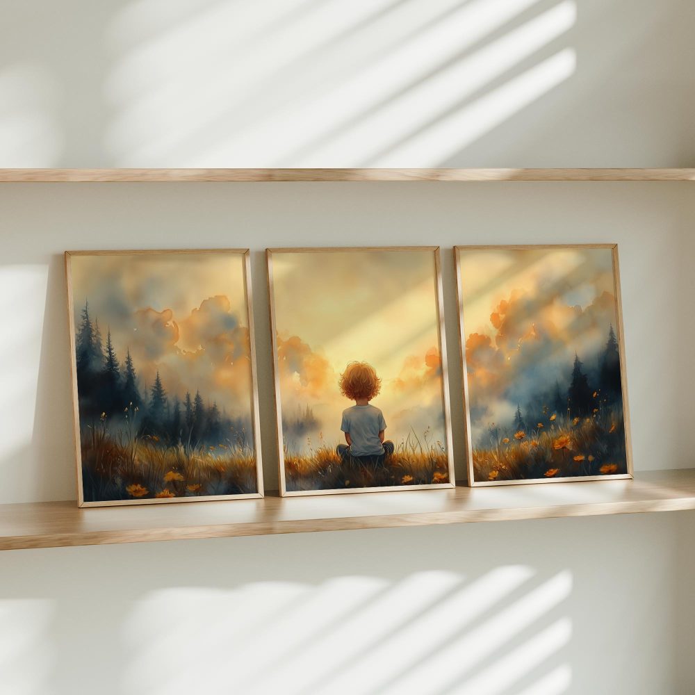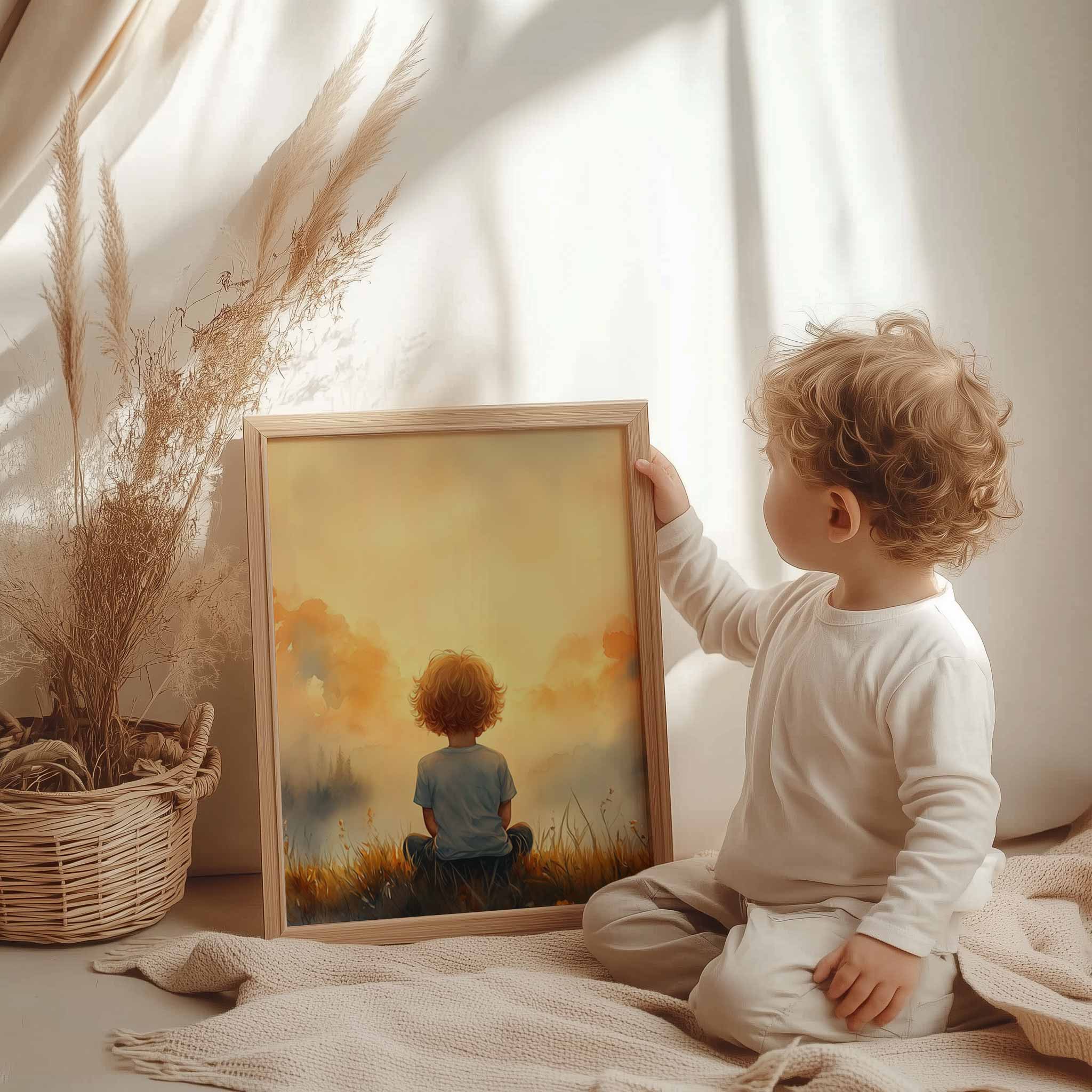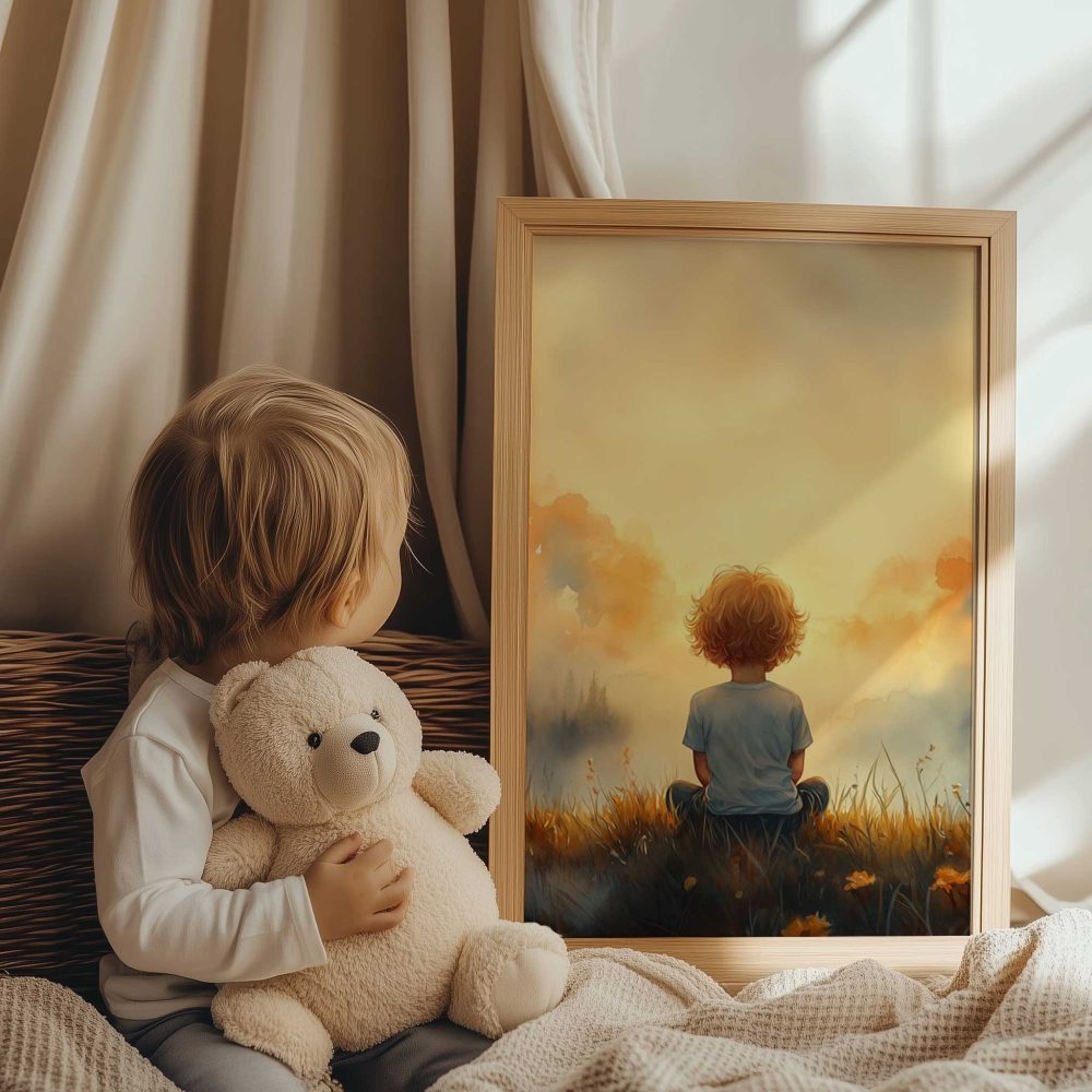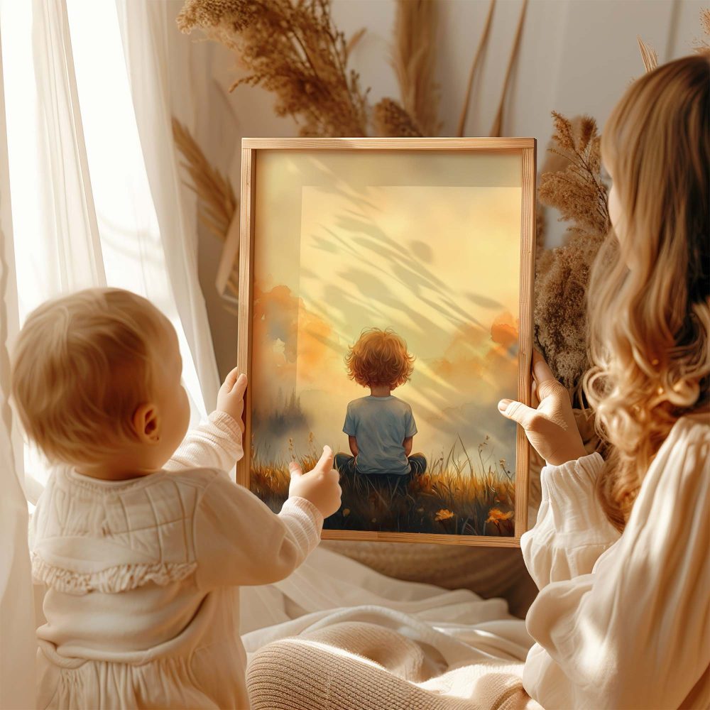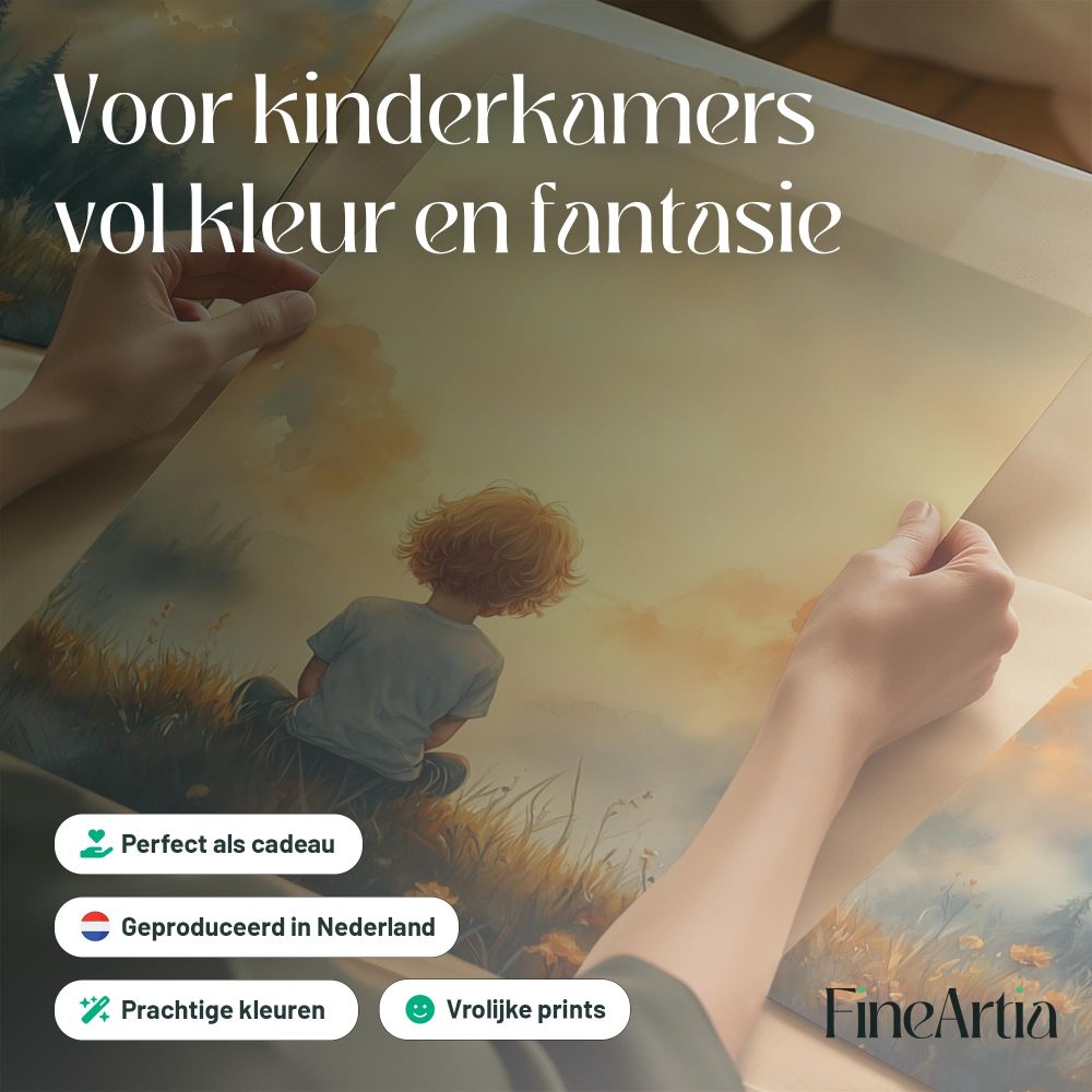 Terug naar collectie / Kinderkamer posters / Bloemen posters / Jongen in Bloemenveld: Serene Natuurmoment