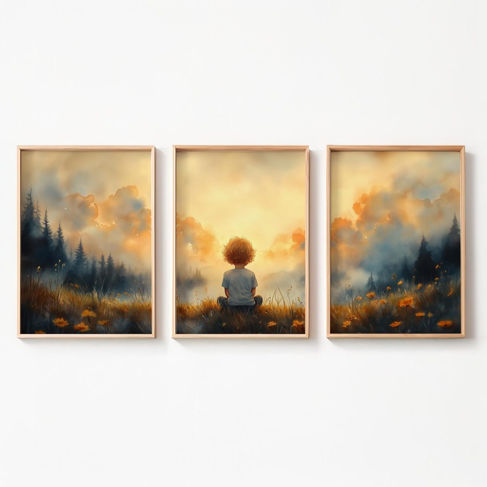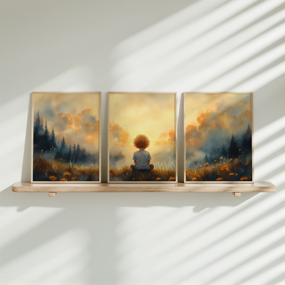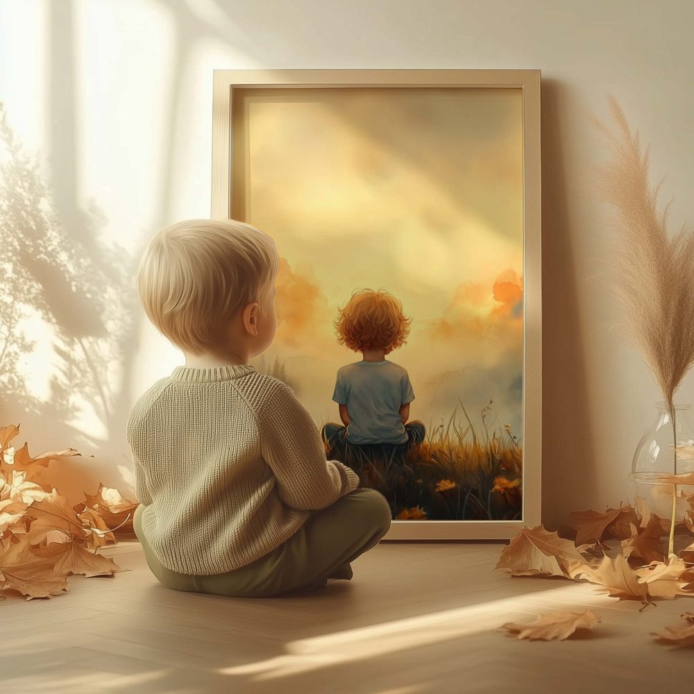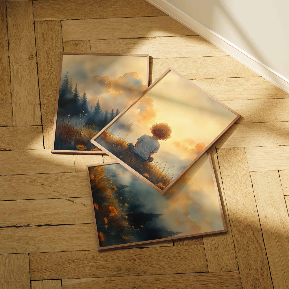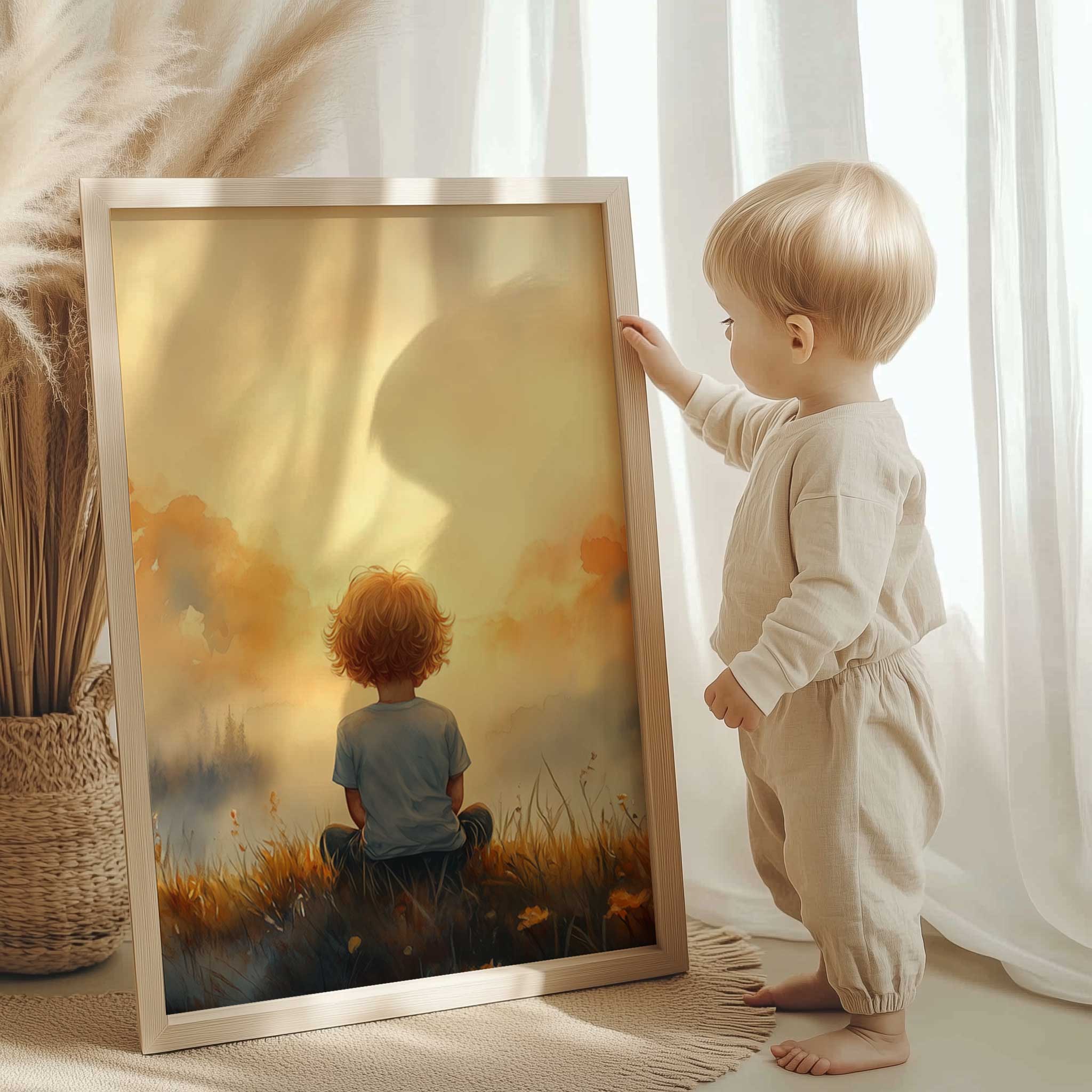 Terug naar collectie / Kinderkamer posters / Bloemen posters / Jongen in Bloemenveld: Serene Natuurmoment