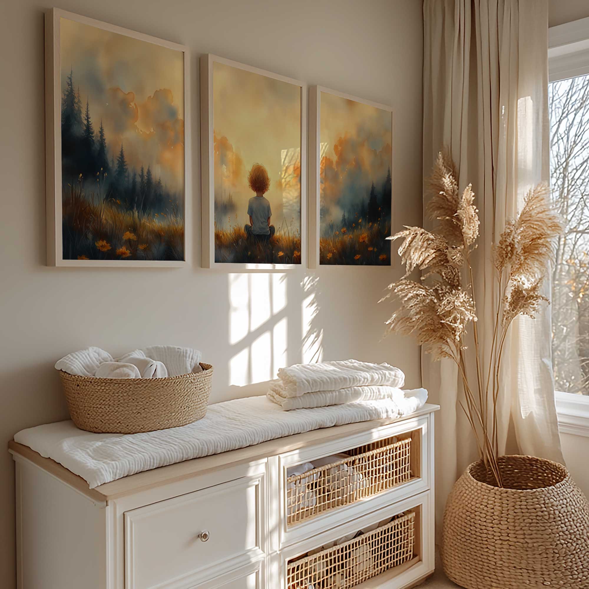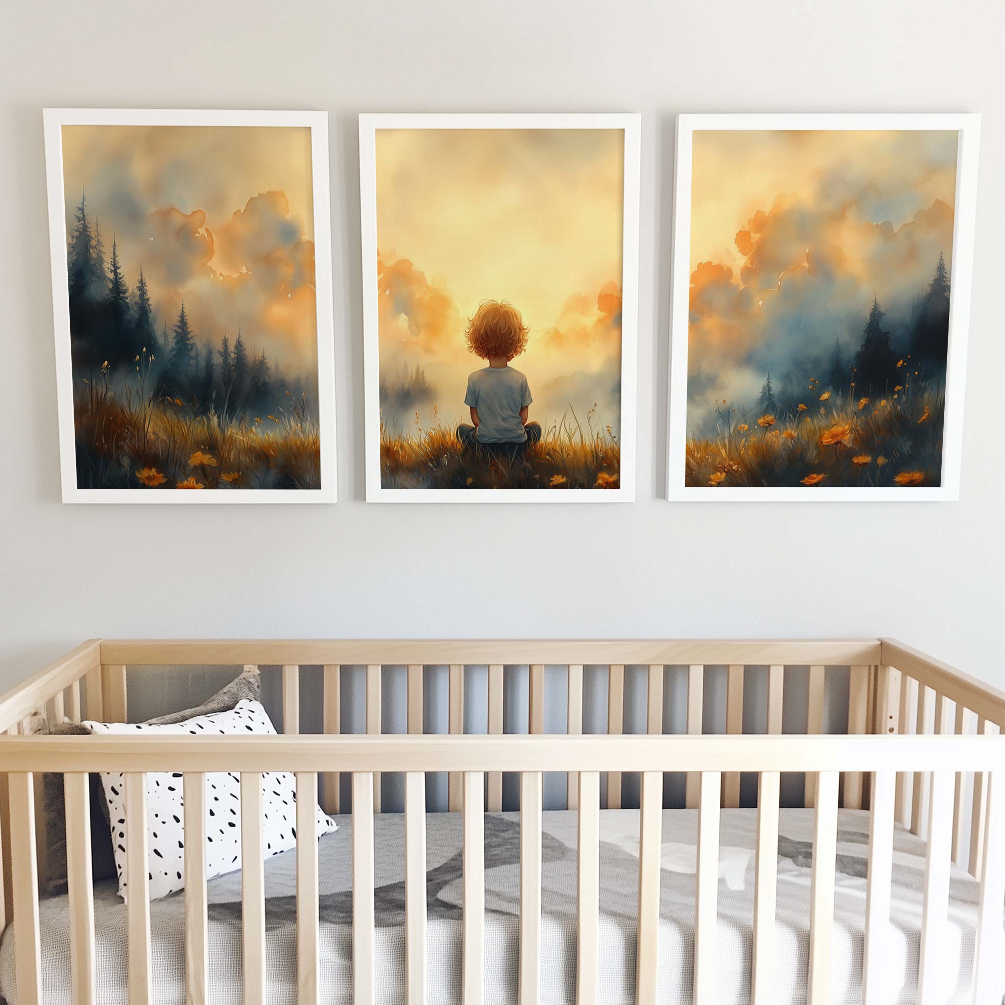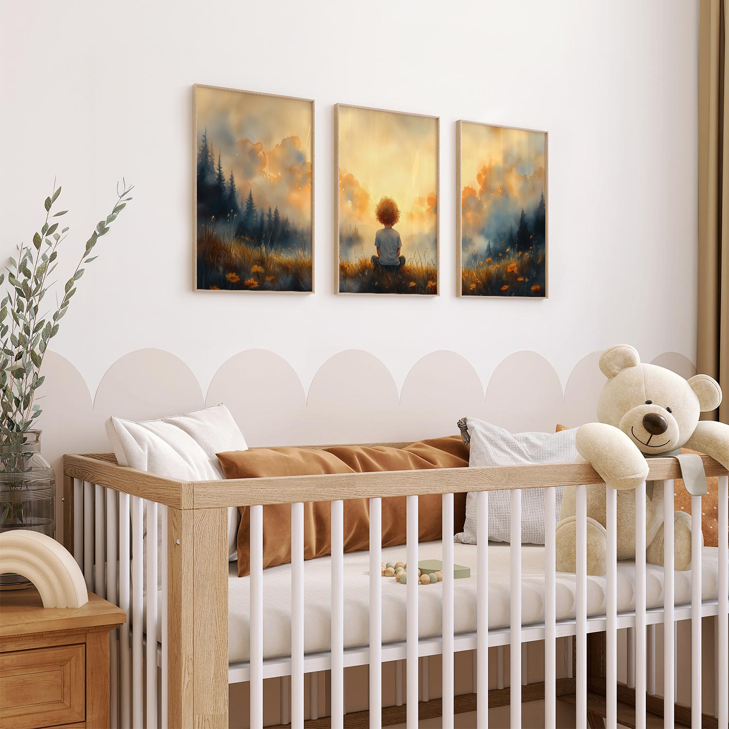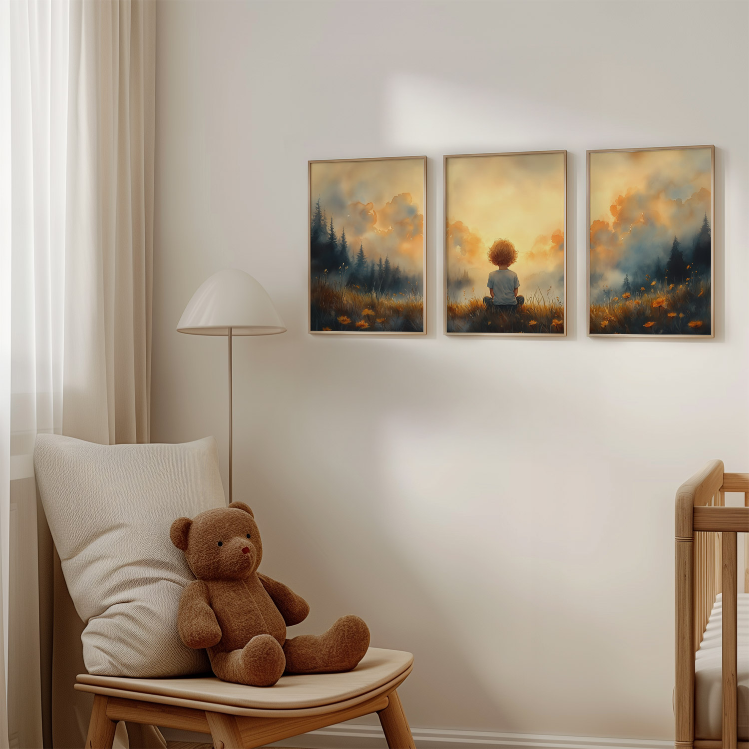 Terug naar collectie / Kinderkamer posters / Bloemen posters / Jongen in Bloemenveld: Serene Natuurmoment