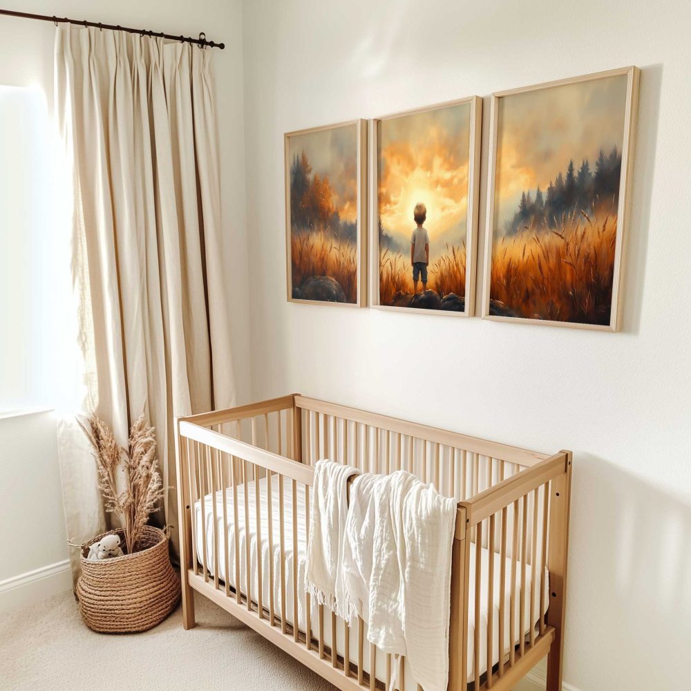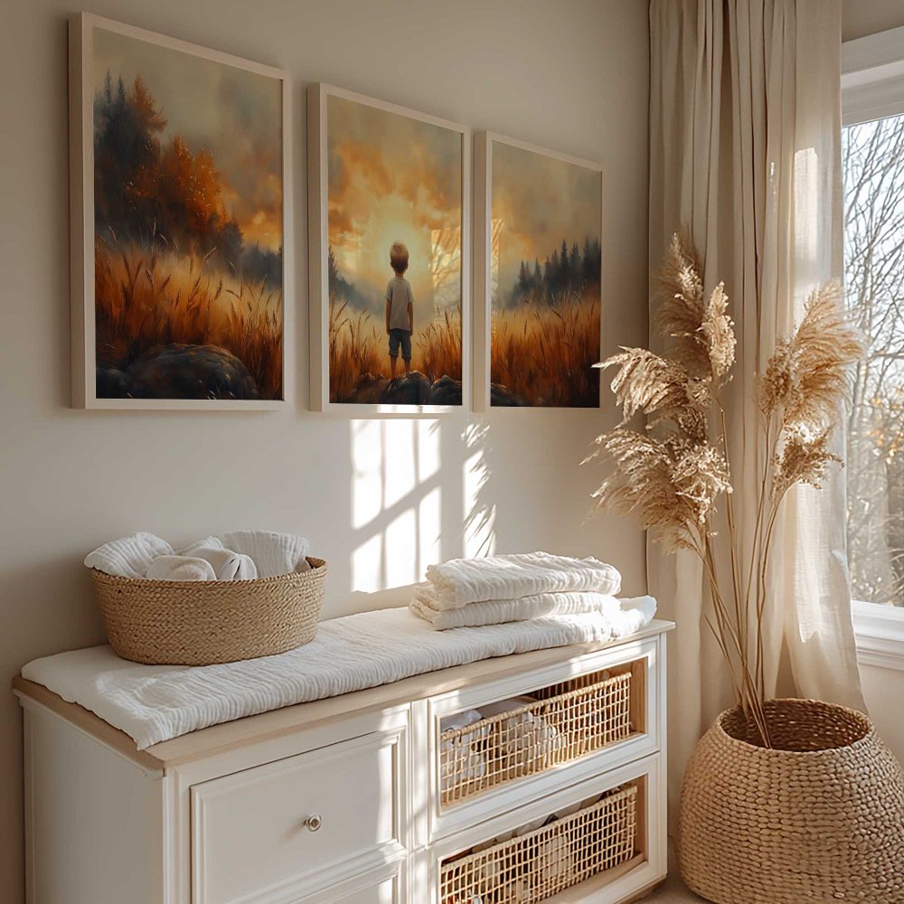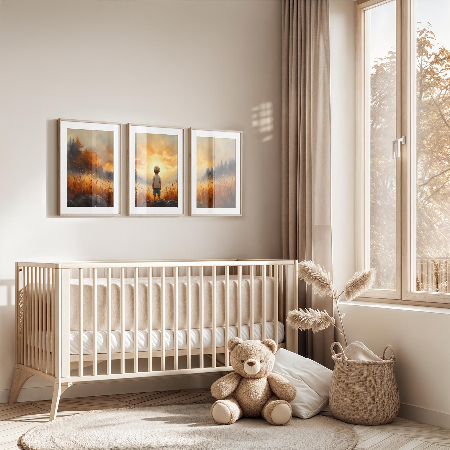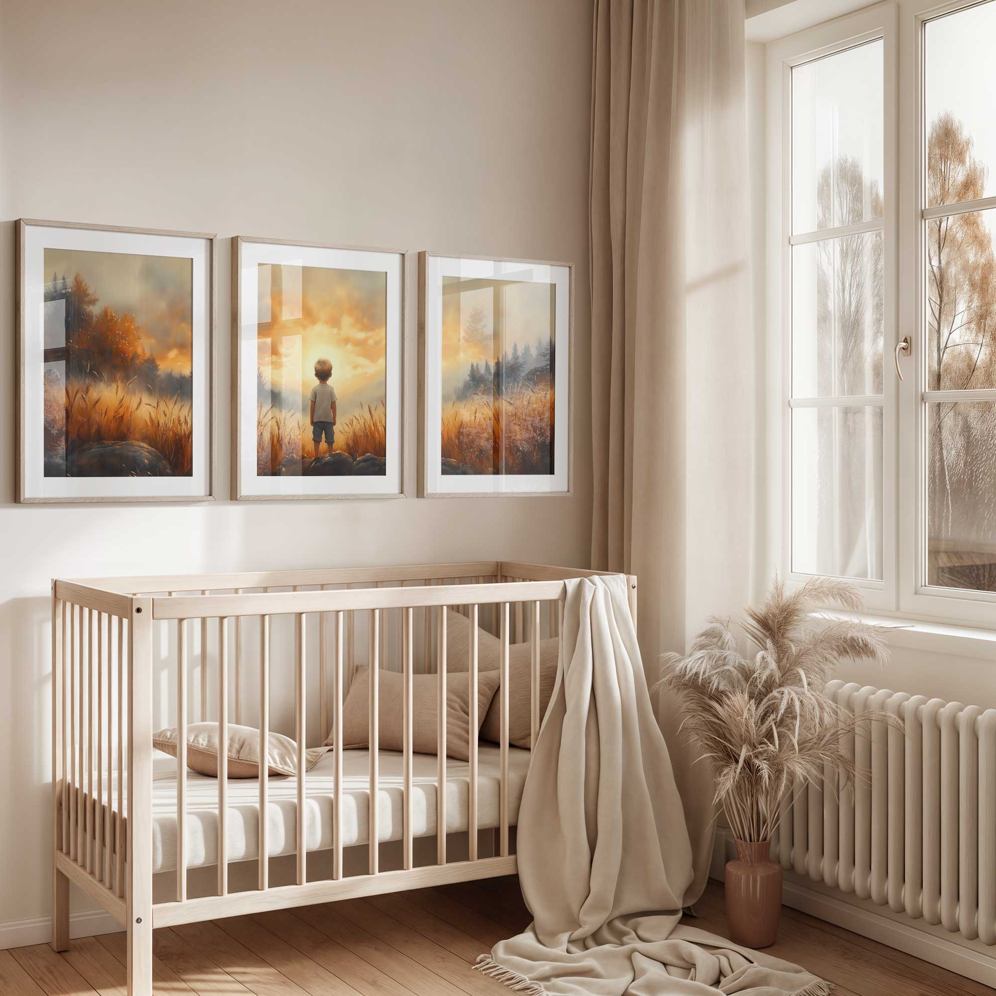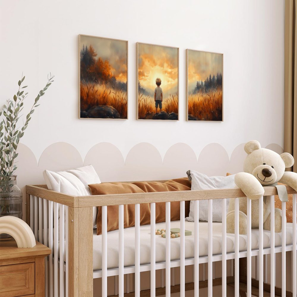 Terug naar collectie / Kinderkamer posters / Jongen in gouden velden bij zonsondergang