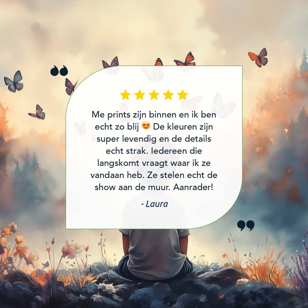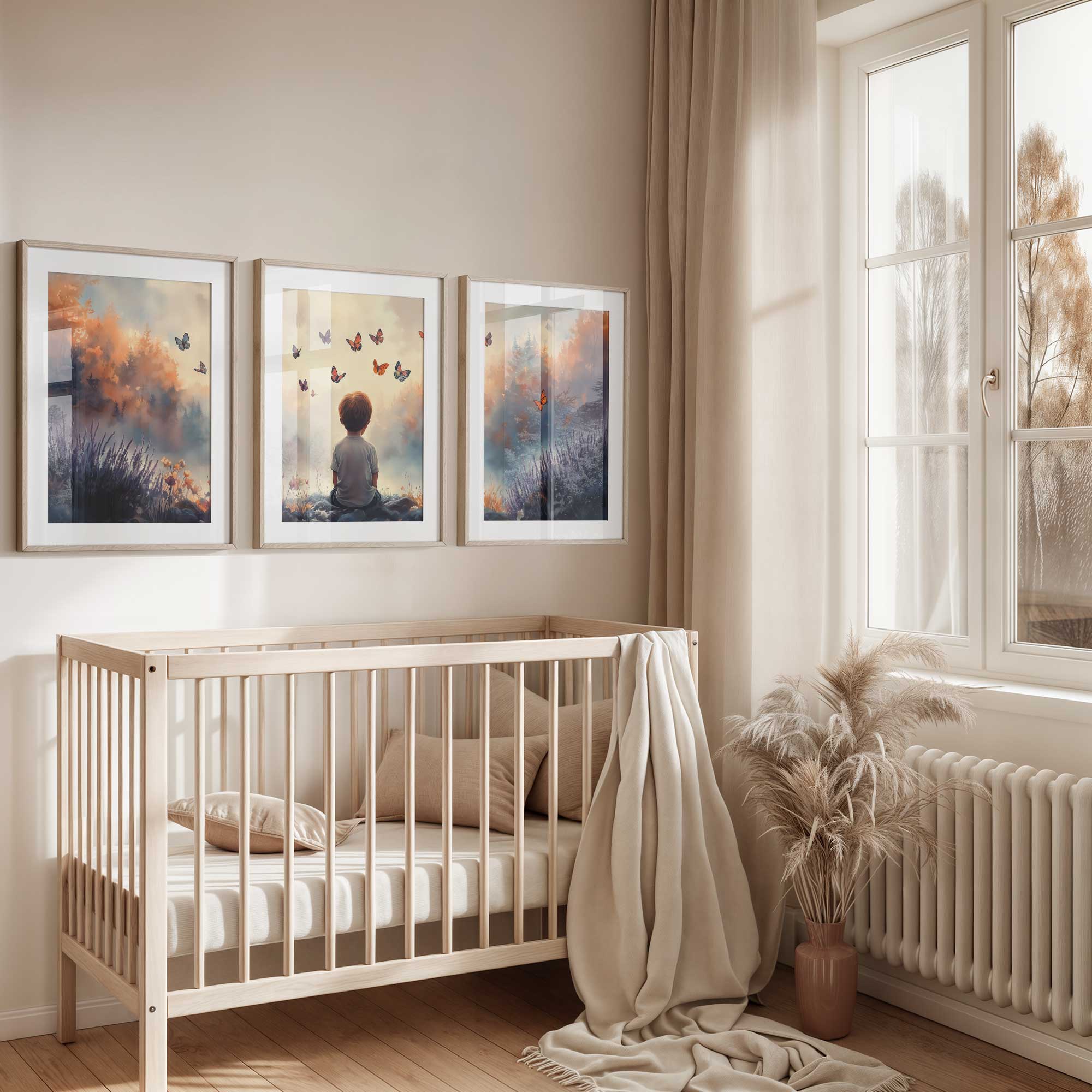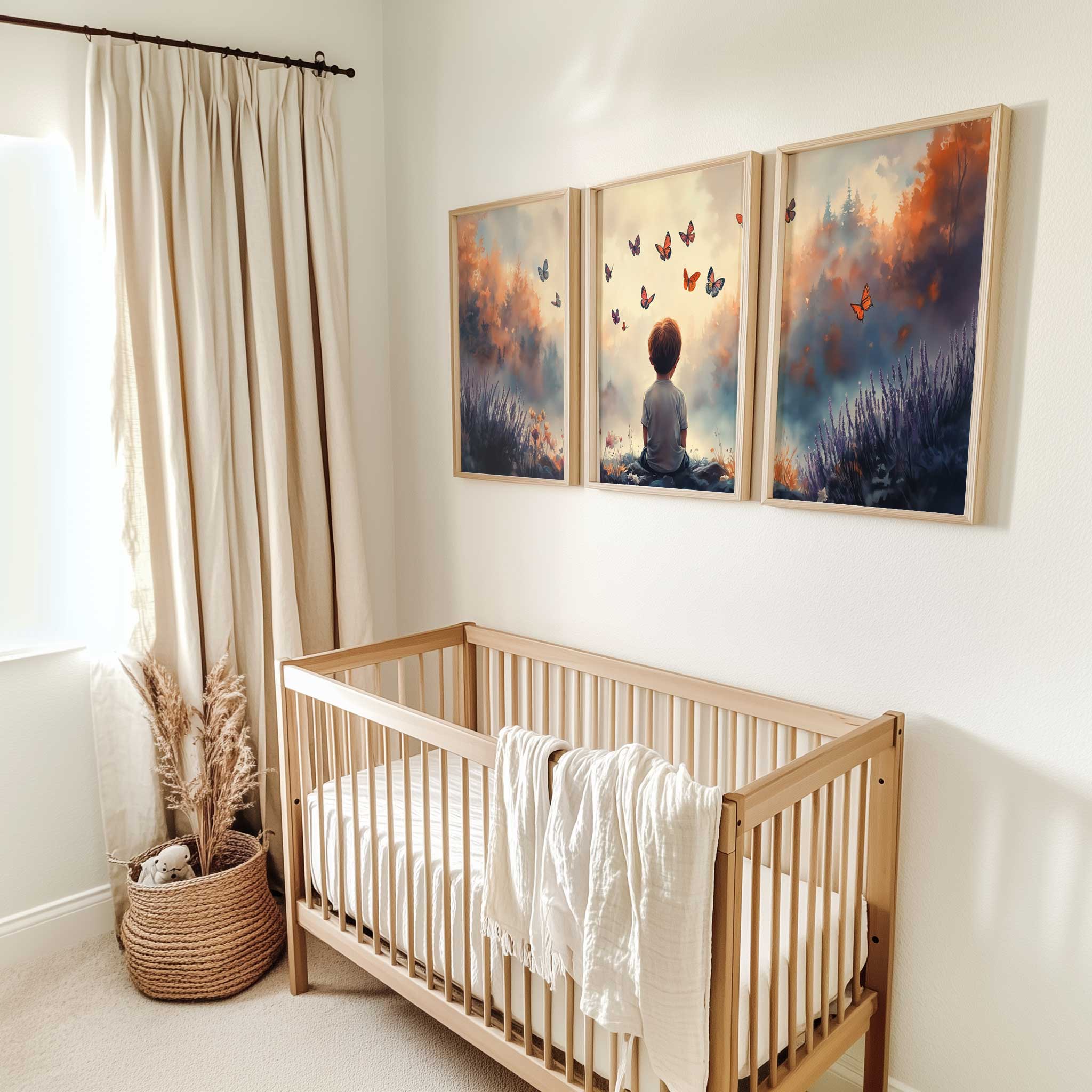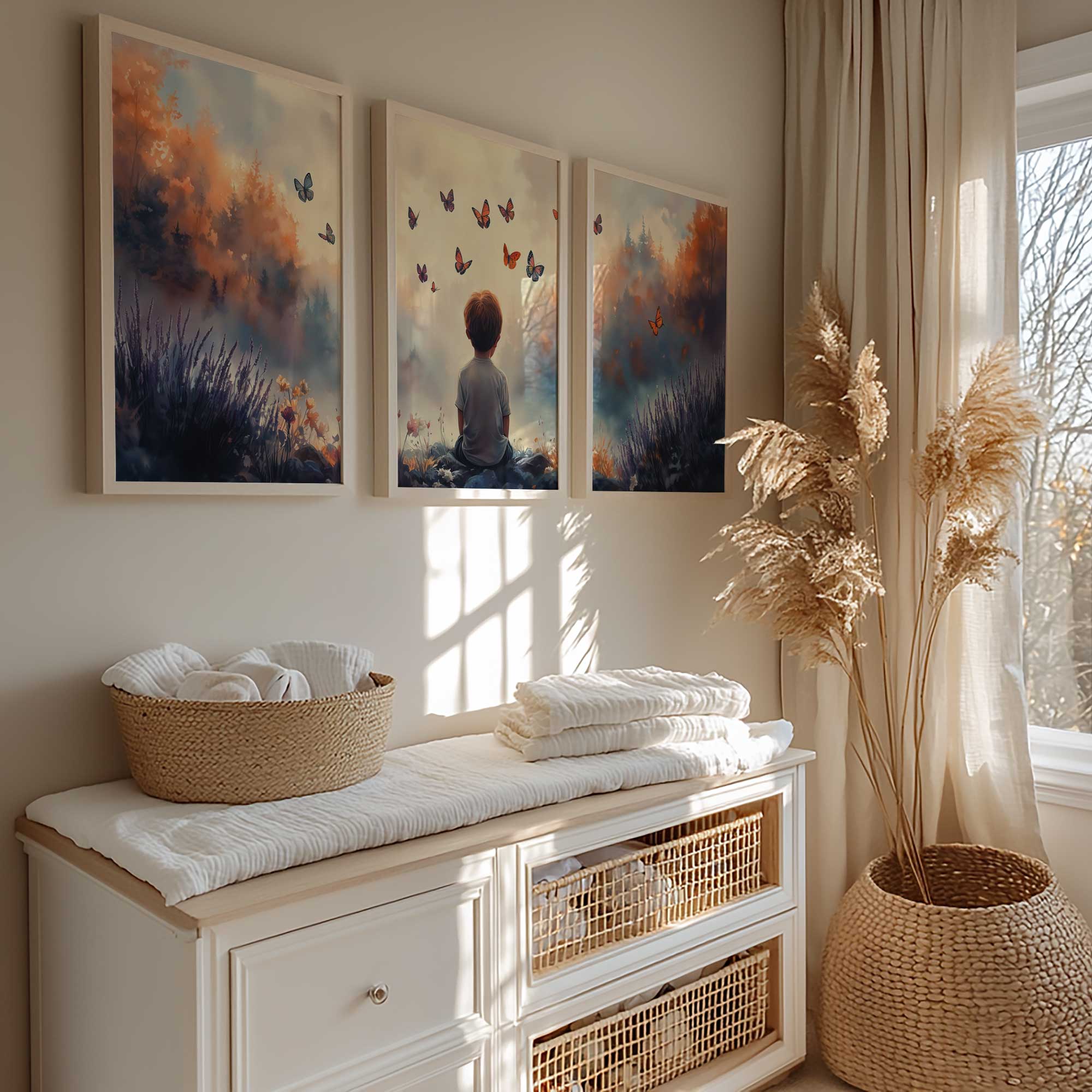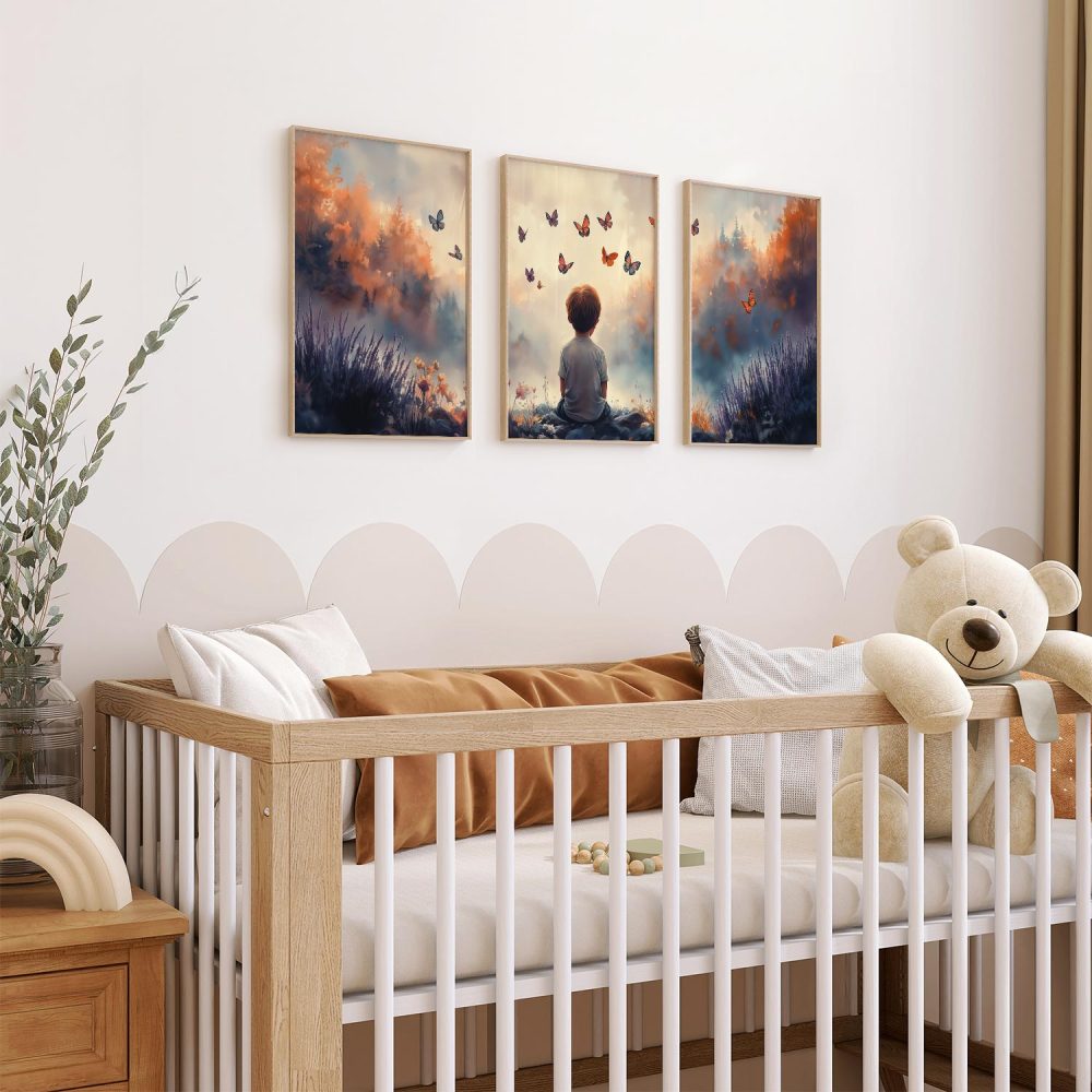 Jongen tussen bloemen en vlinders – Dromerig landschap