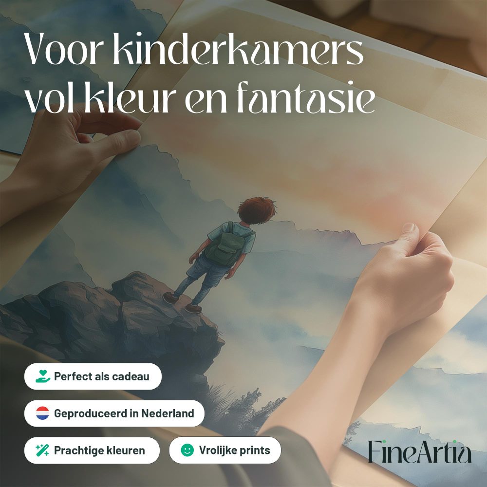 Terug naar collectie / Kinderkamer posters / Avontuurlijk posters / Jongensdroom: Avontuur in de Bergen