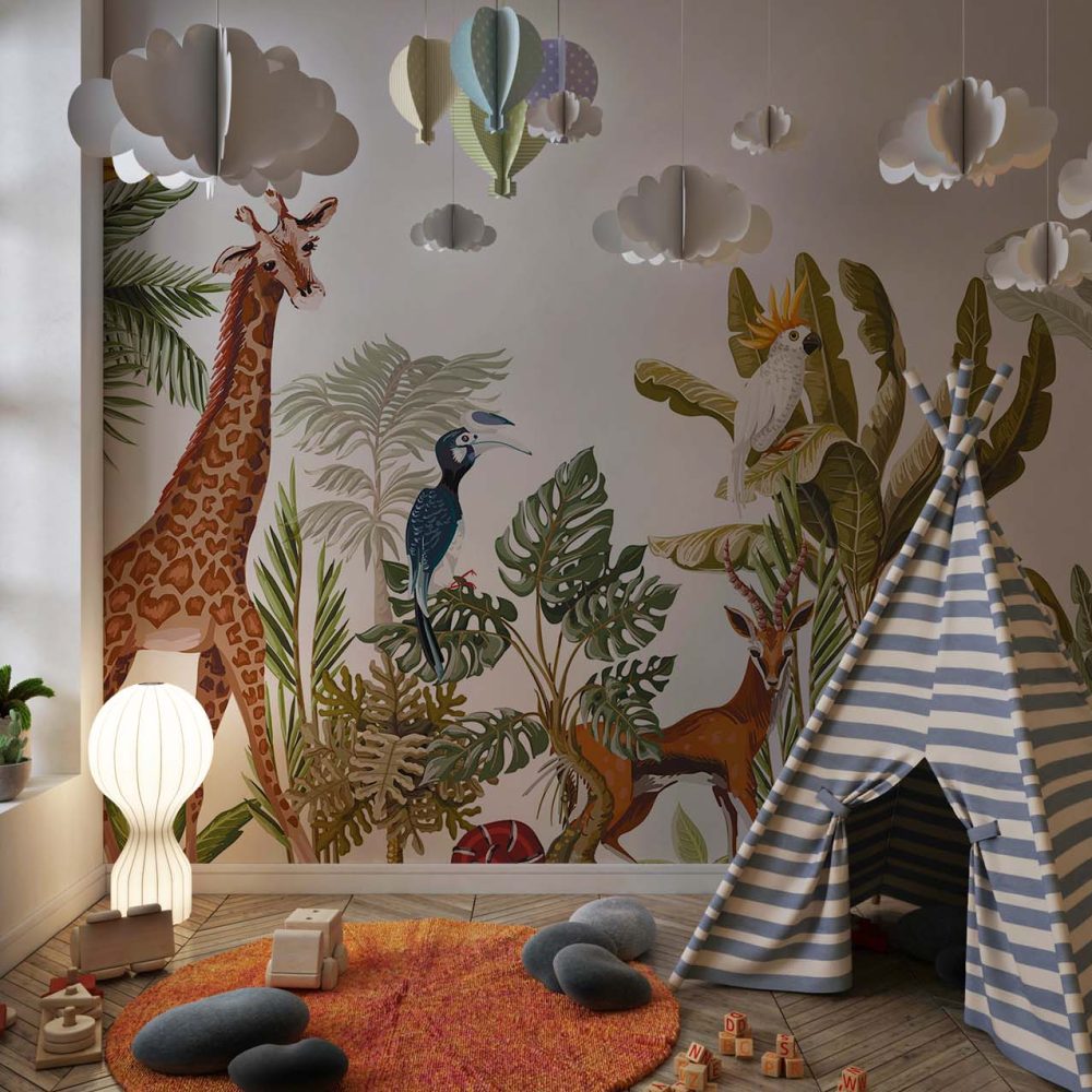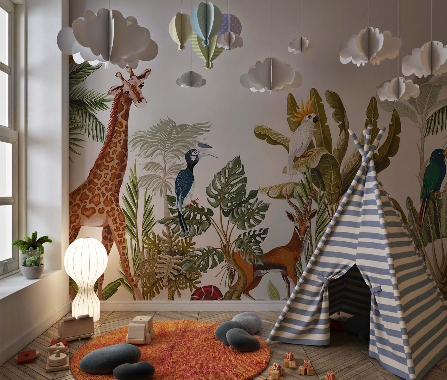 Terug naar collectie / Behang / Kinderkamer behang / Avontuurlijk behang / Jungle Avontuur Kinderkamer Behang