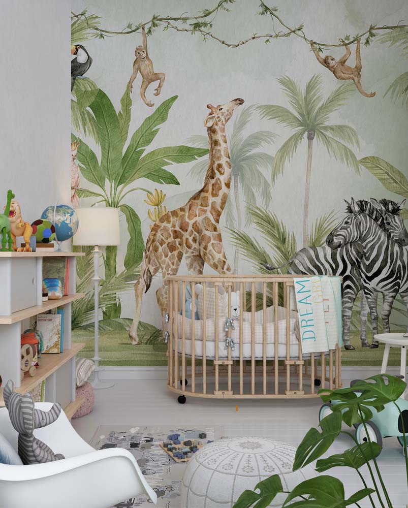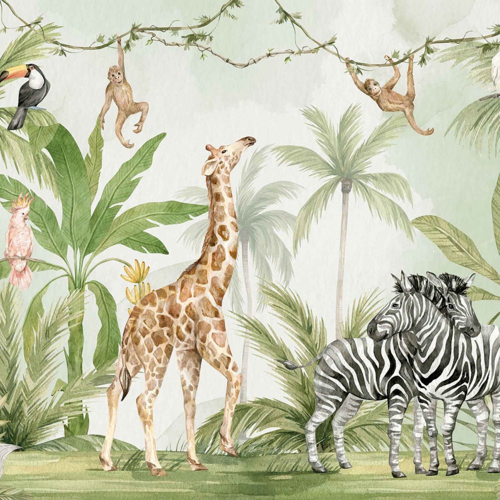 Terug naar collectie / Behang / Kinderkamer behang / Avontuurlijk behang / Jungle Dieren Kinderkamer Behang