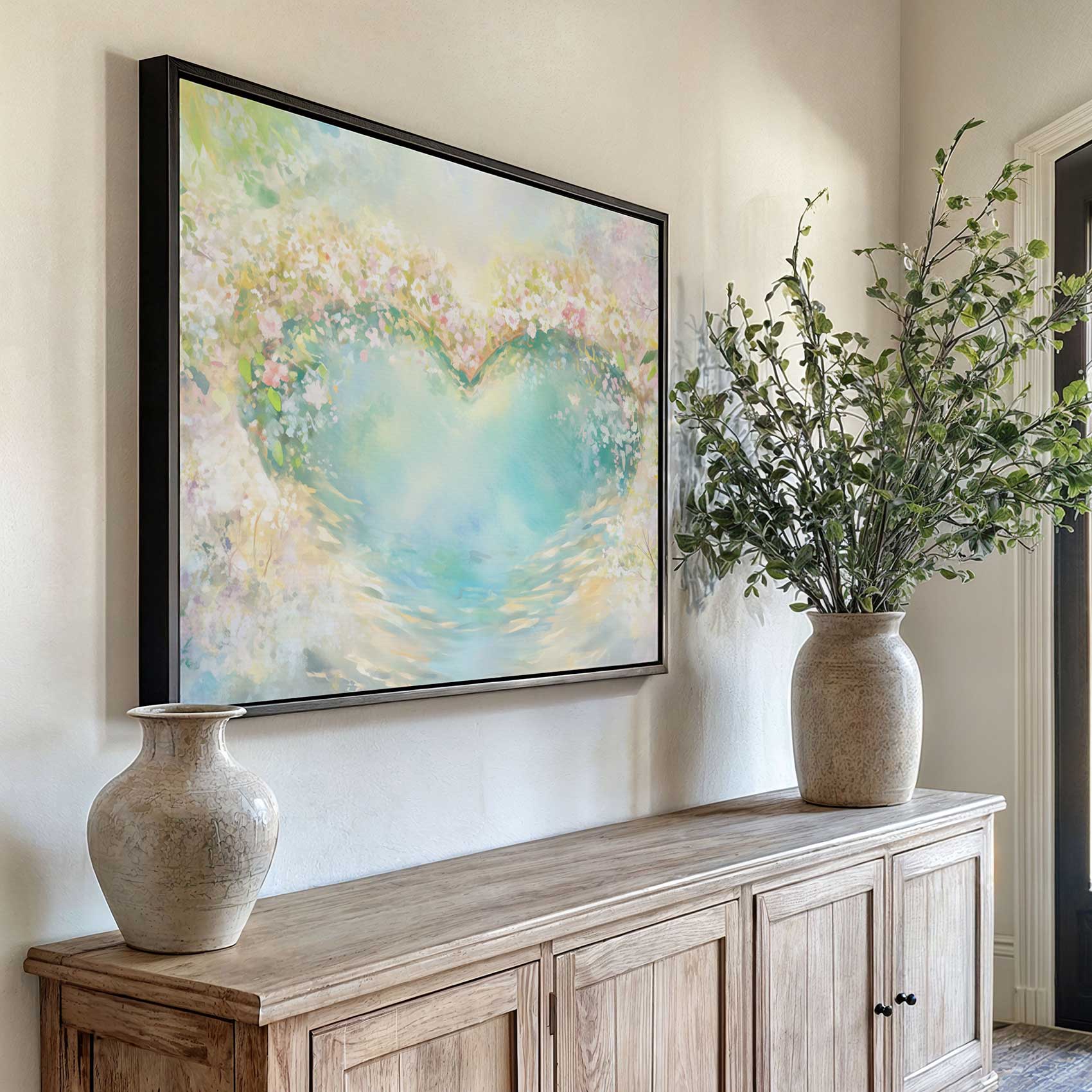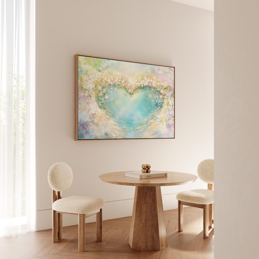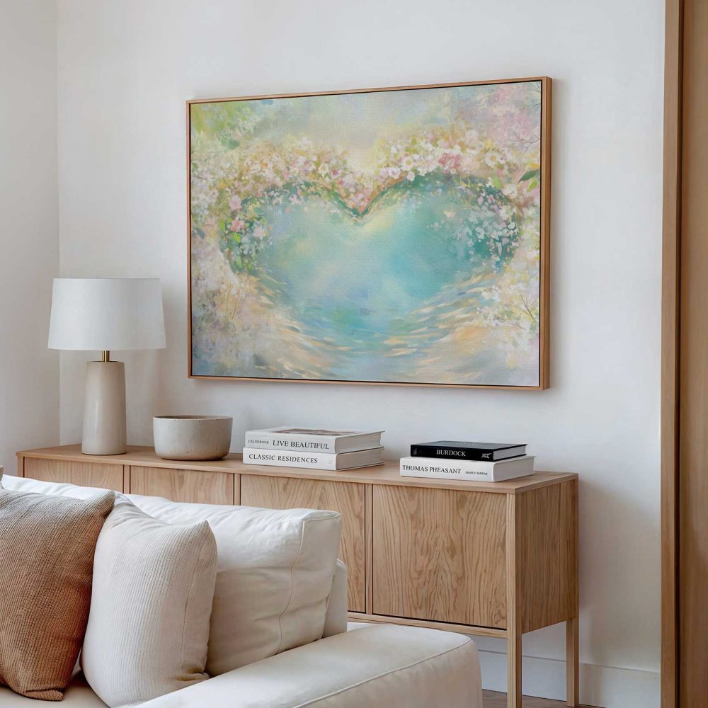 Terug naar collectie / Schilderijen / Bloemen Schilderij / Kleurrijk hart in bloementuin