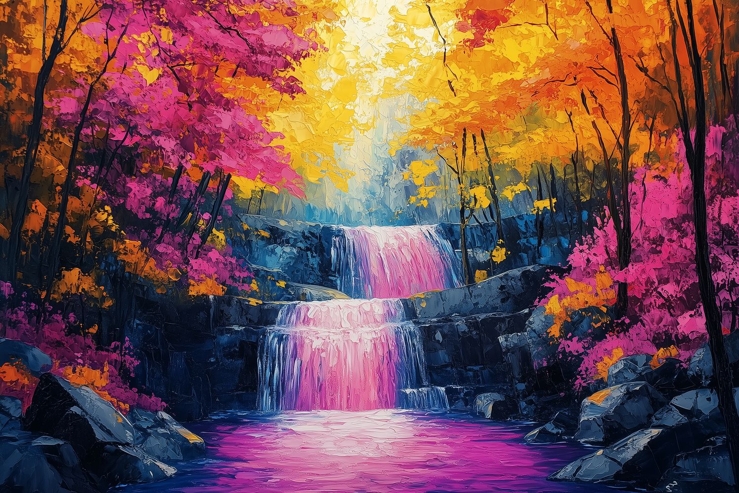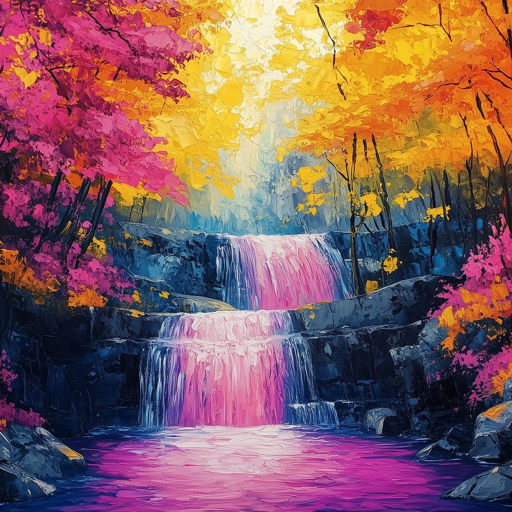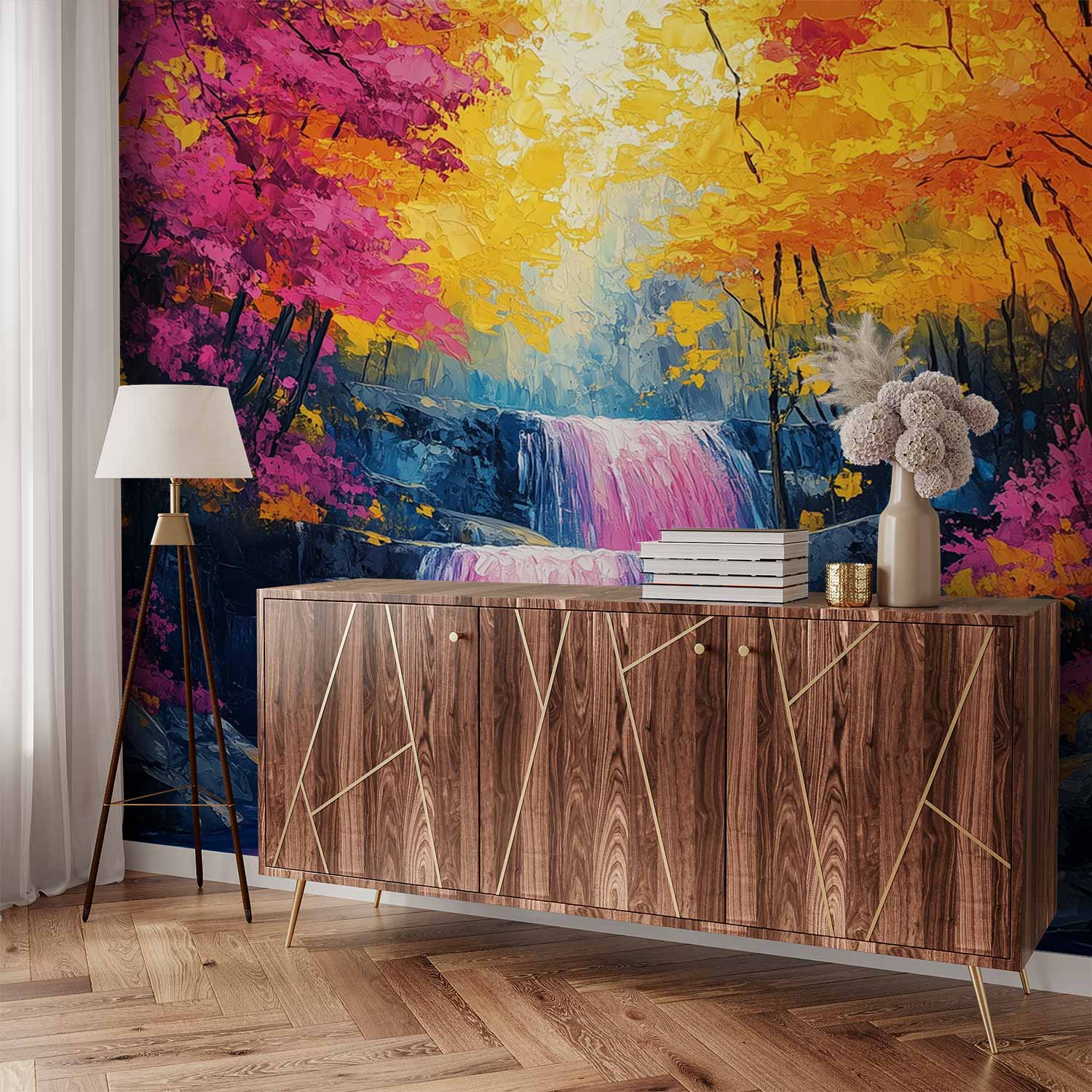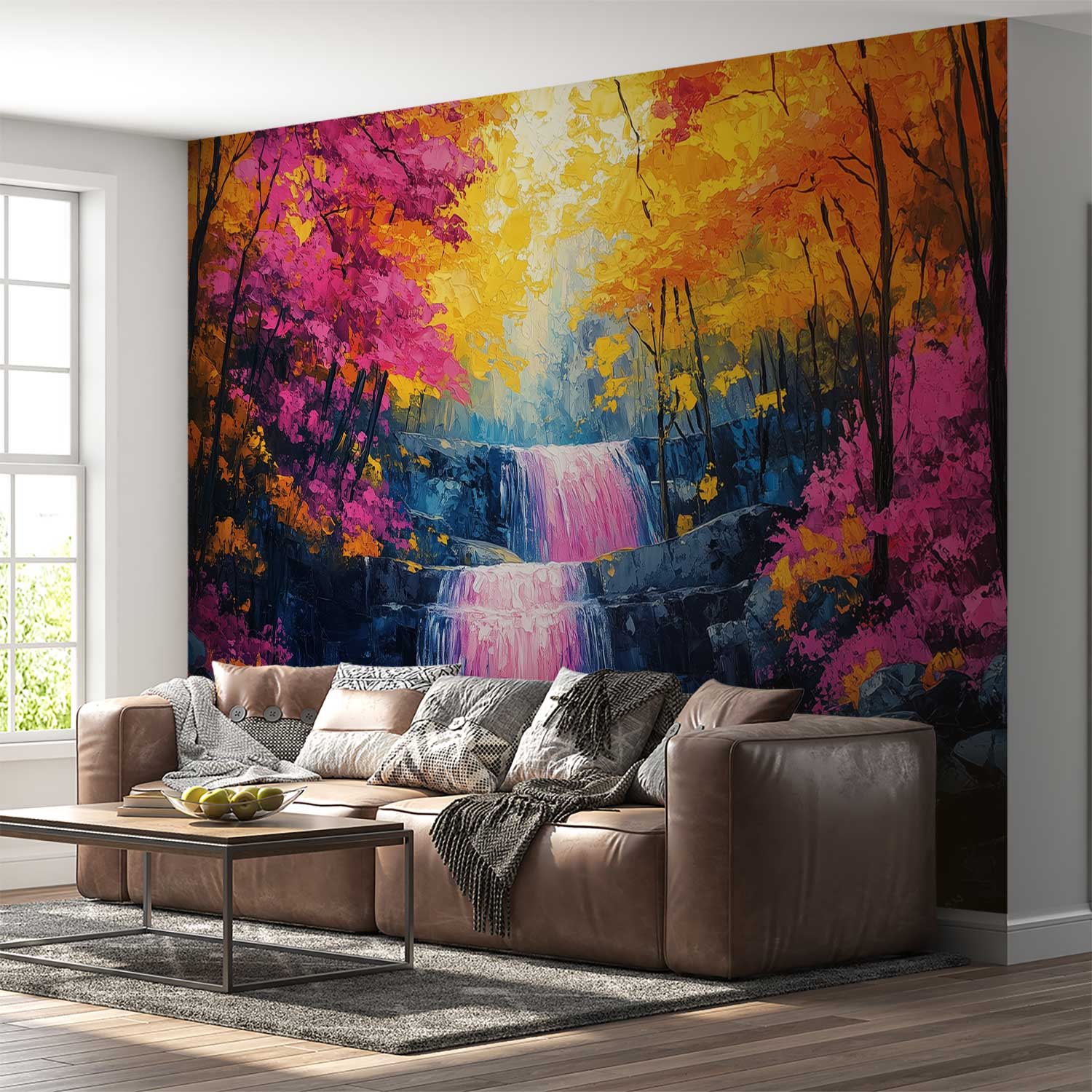 Terug naar collectie / Behang / Kleurrijk waterval boslandschap behang