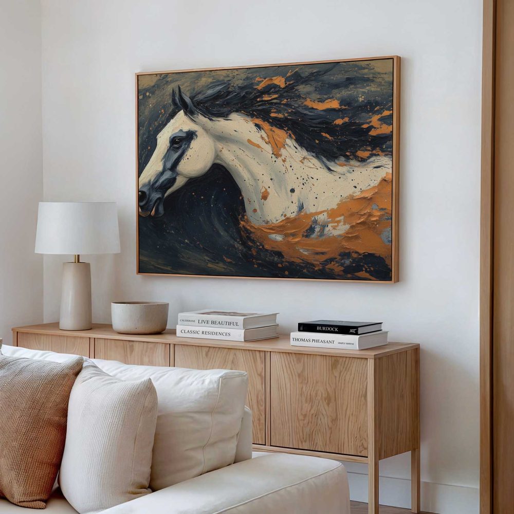 Terug naar collectie / Schilderijen / Abstract Schilderij / Kleurrijke Dynamische Paardenkunst