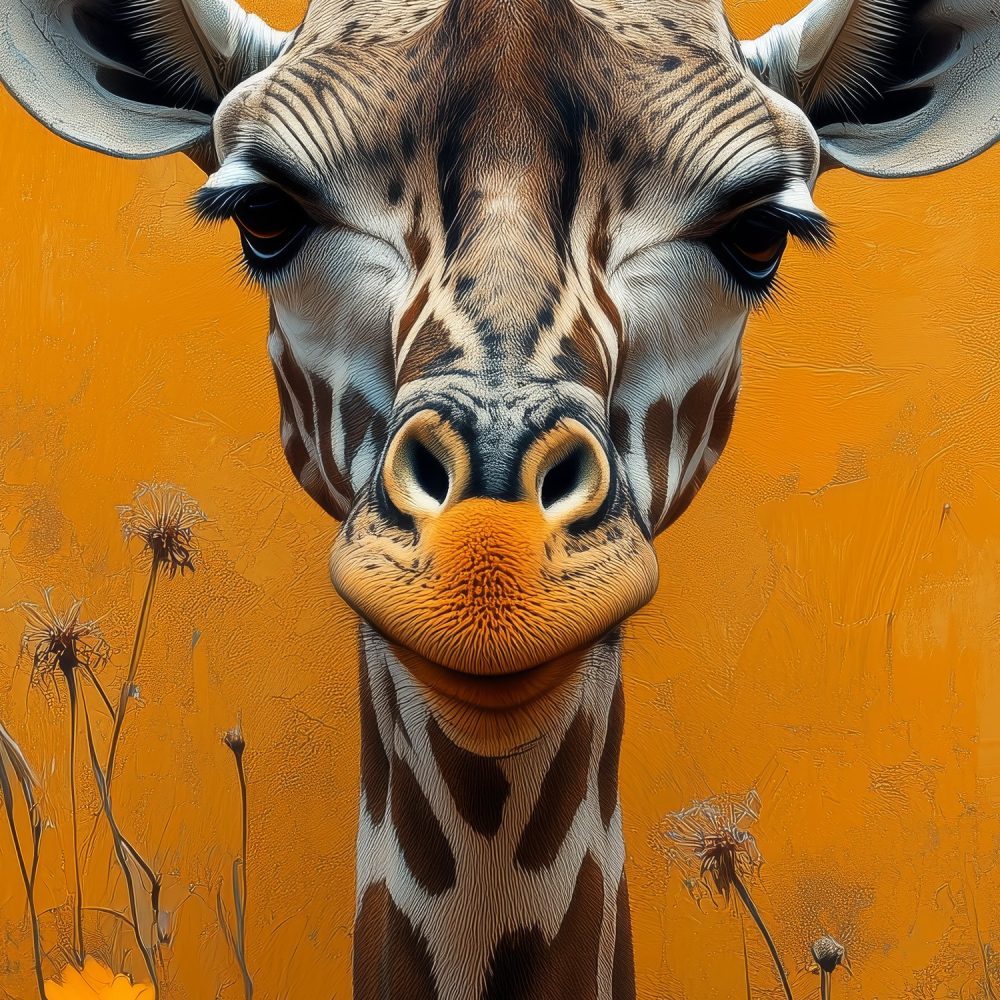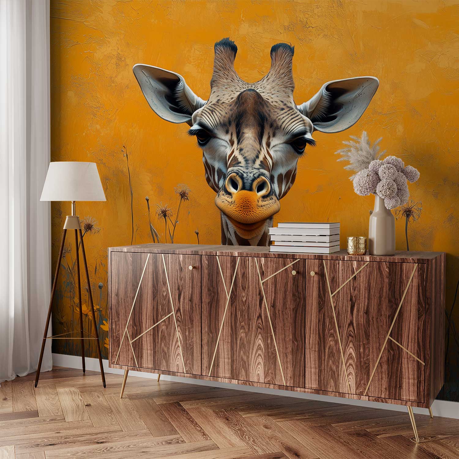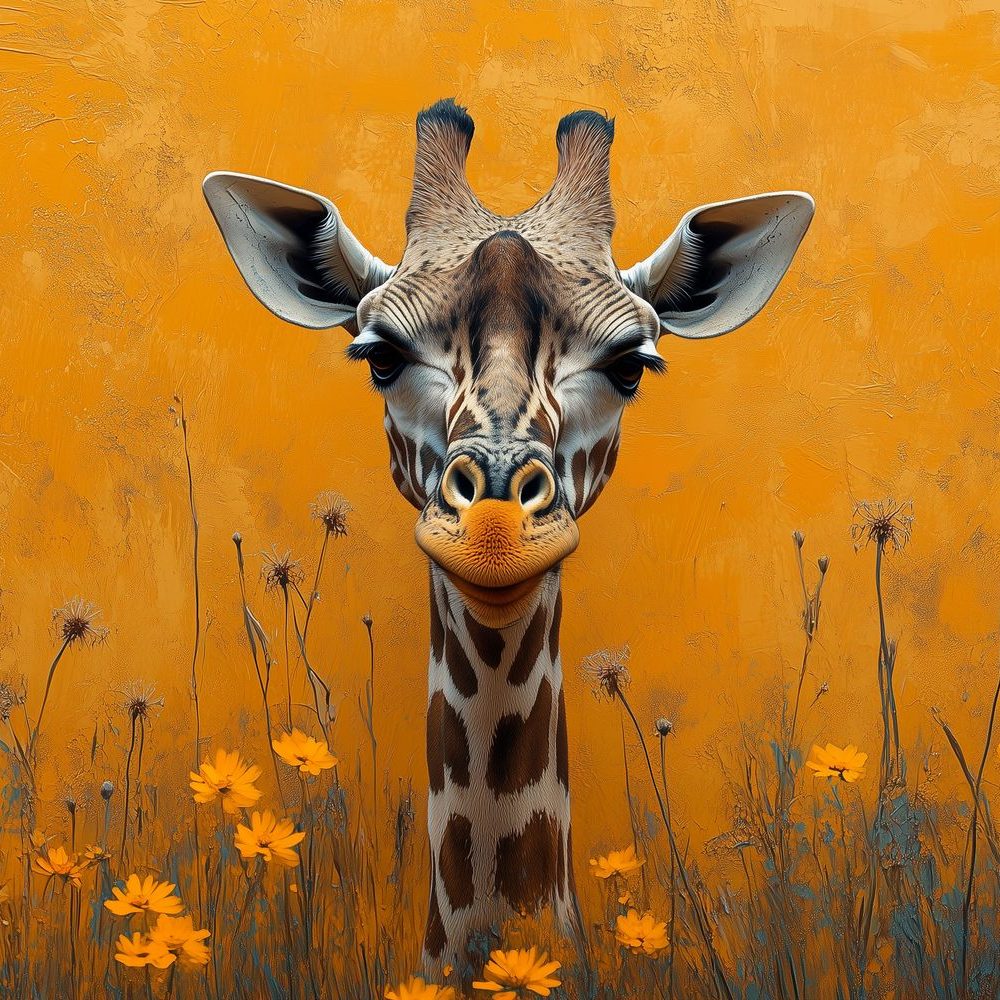 Terug naar collectie / Behang / Abstract behang / Kleurrijke giraf in bloemenveld behang
