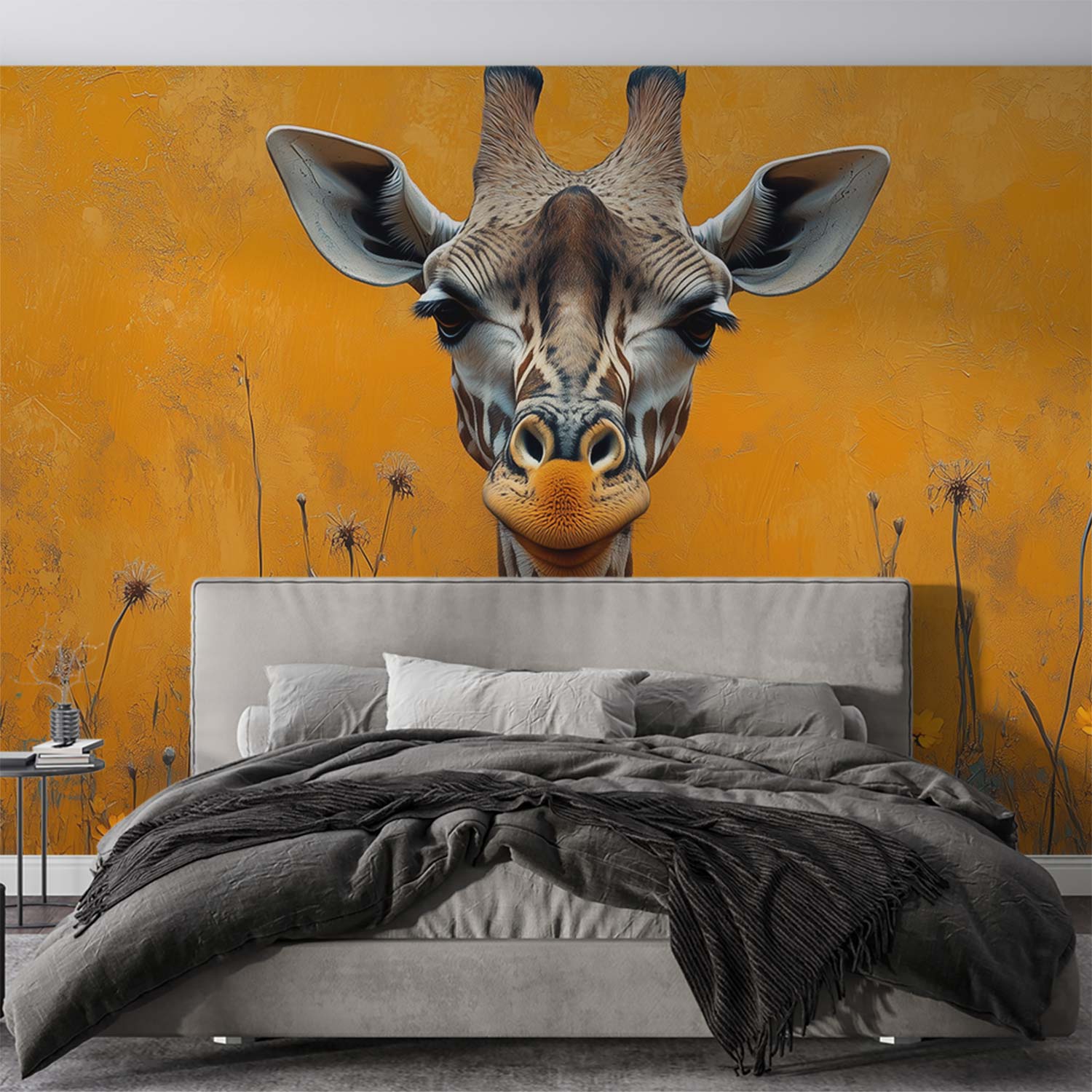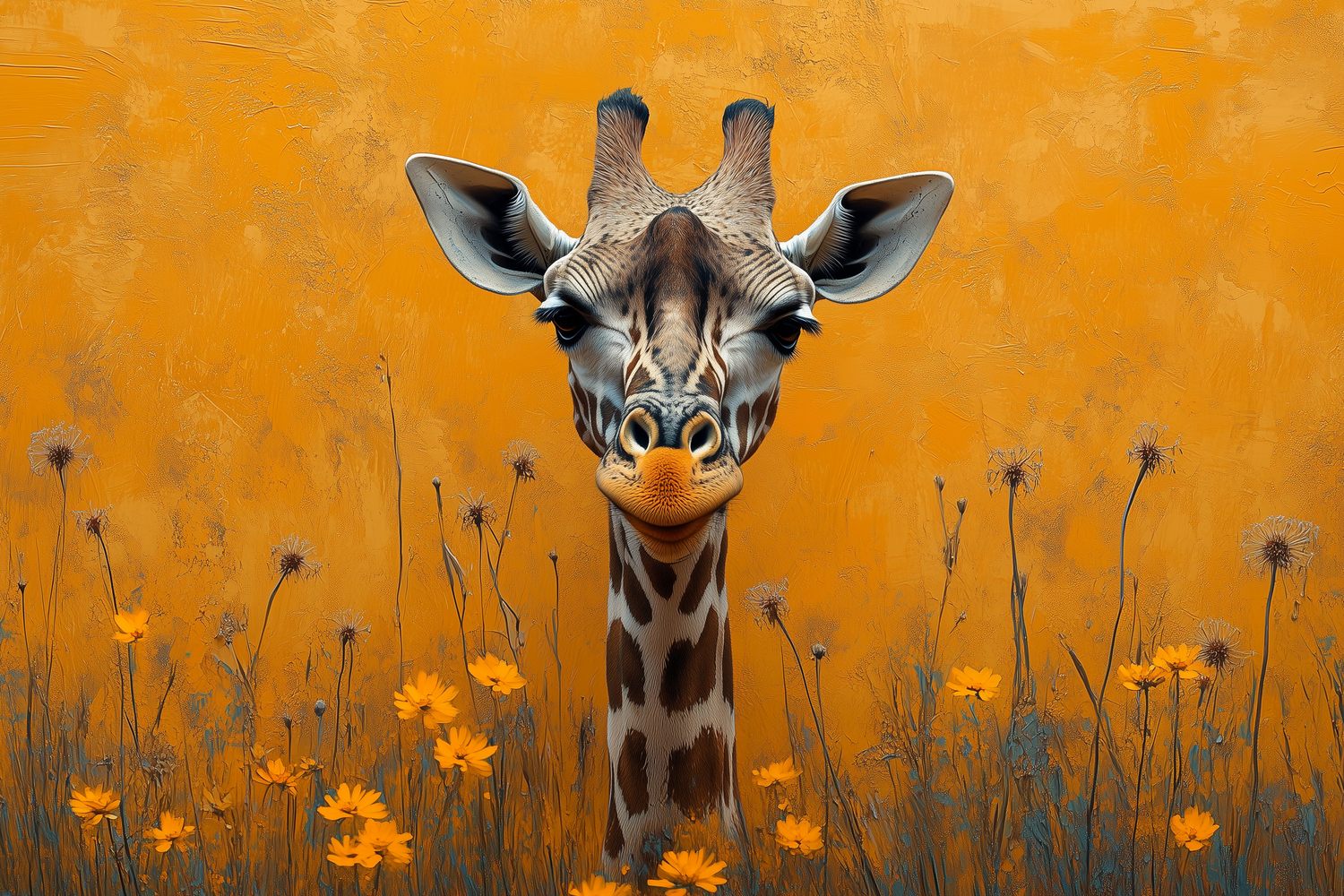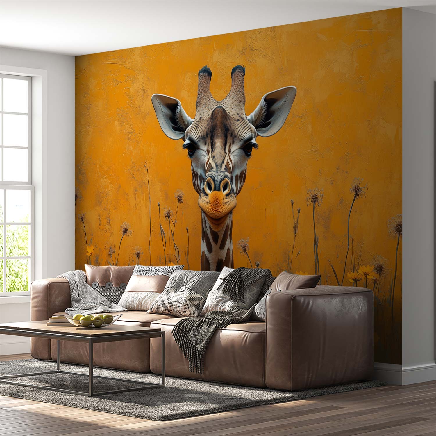 Terug naar collectie / Behang / Abstract behang / Kleurrijke giraf in bloemenveld behang