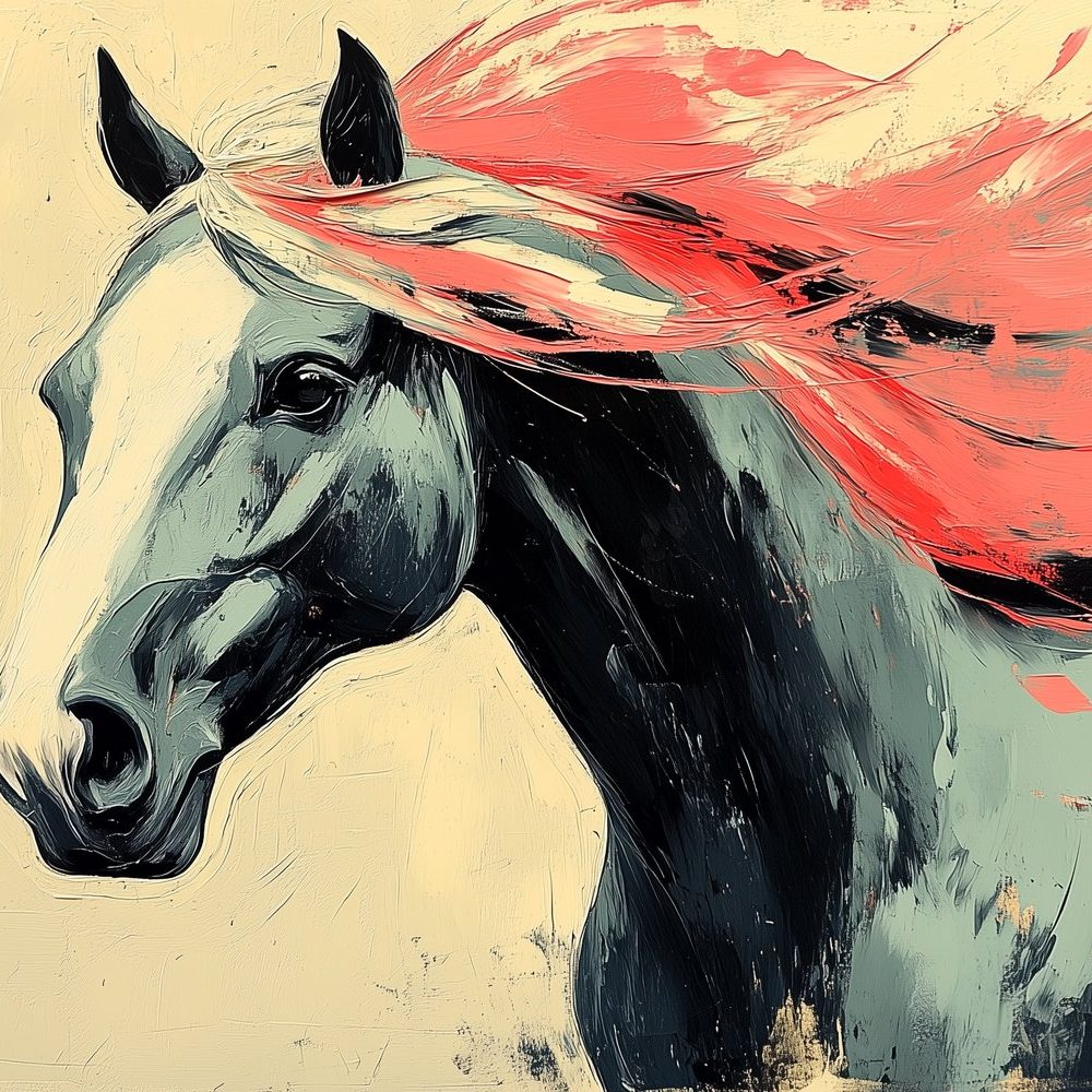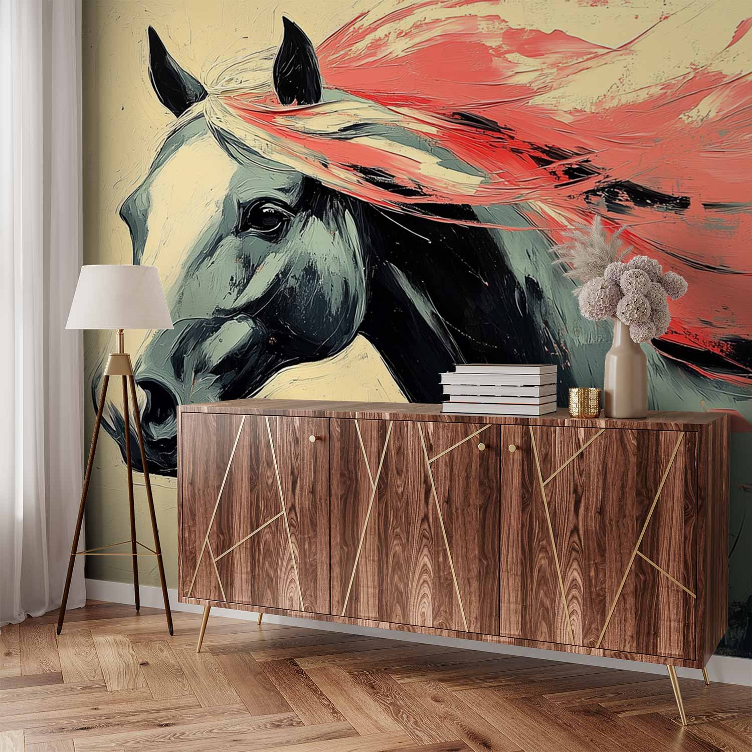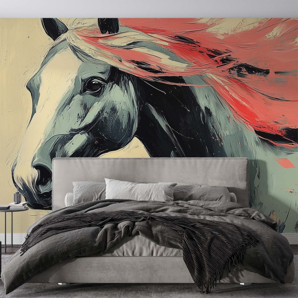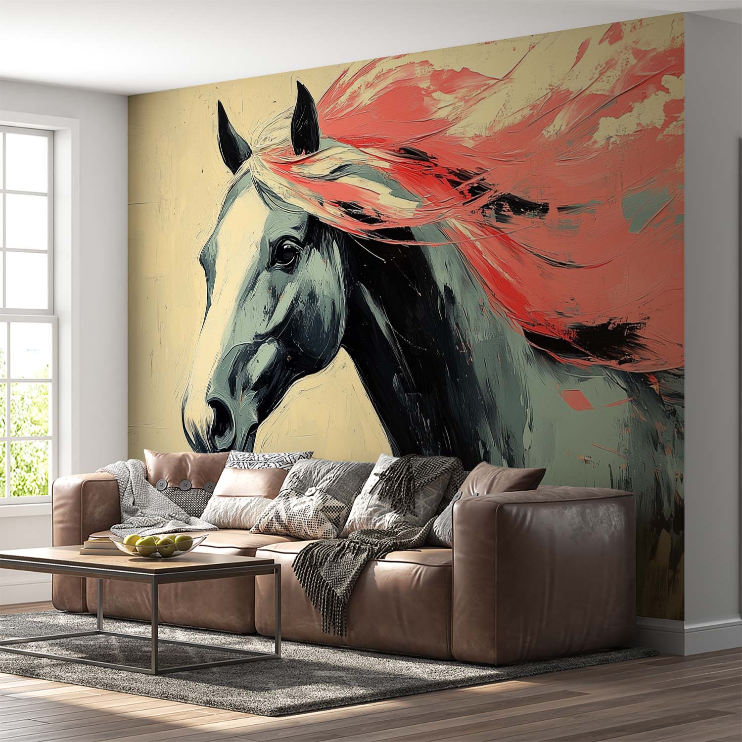 Terug naar collectie / Behang / Abstract behang / Kleurrijke impressionistische paardenschilderij behang