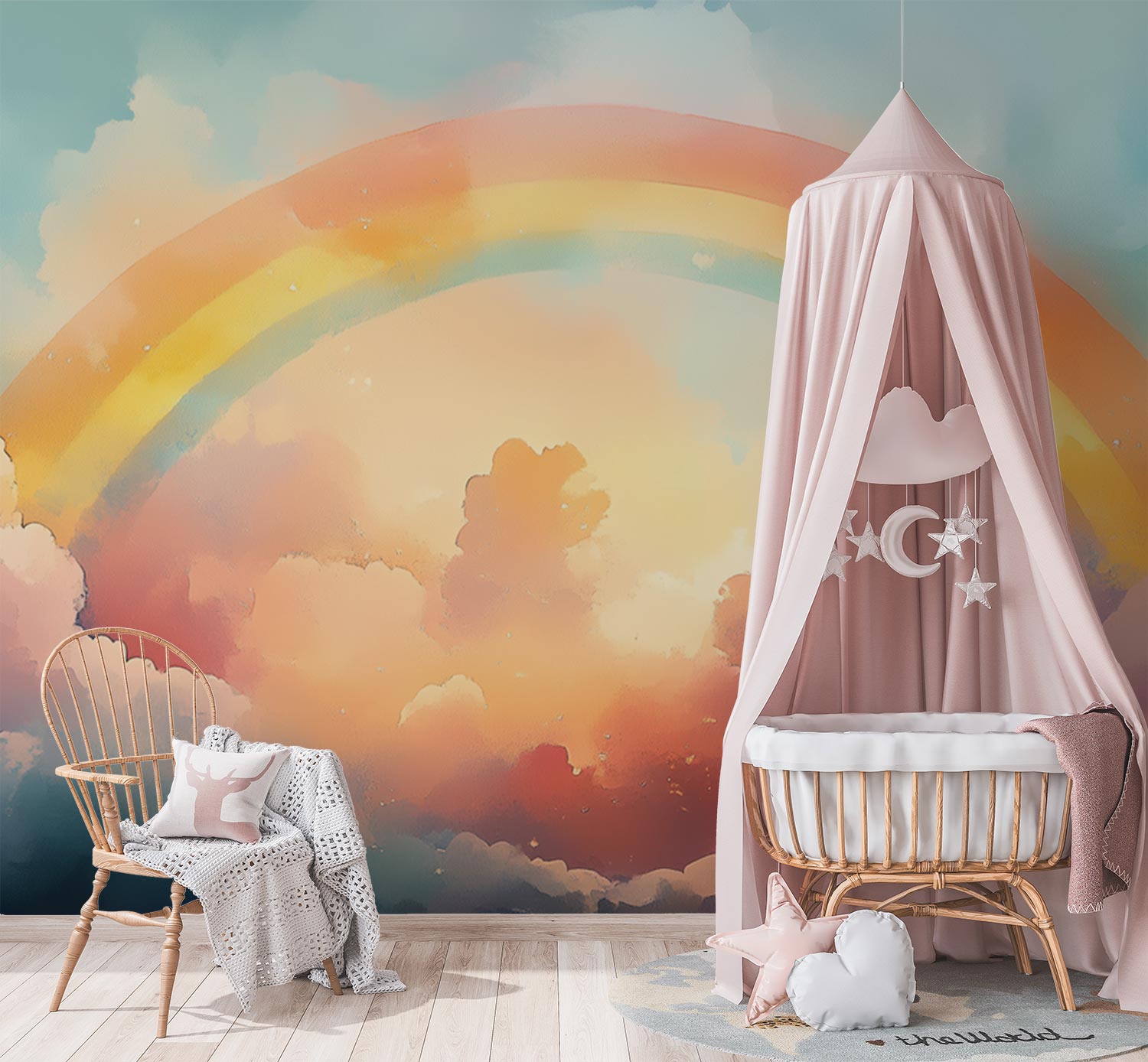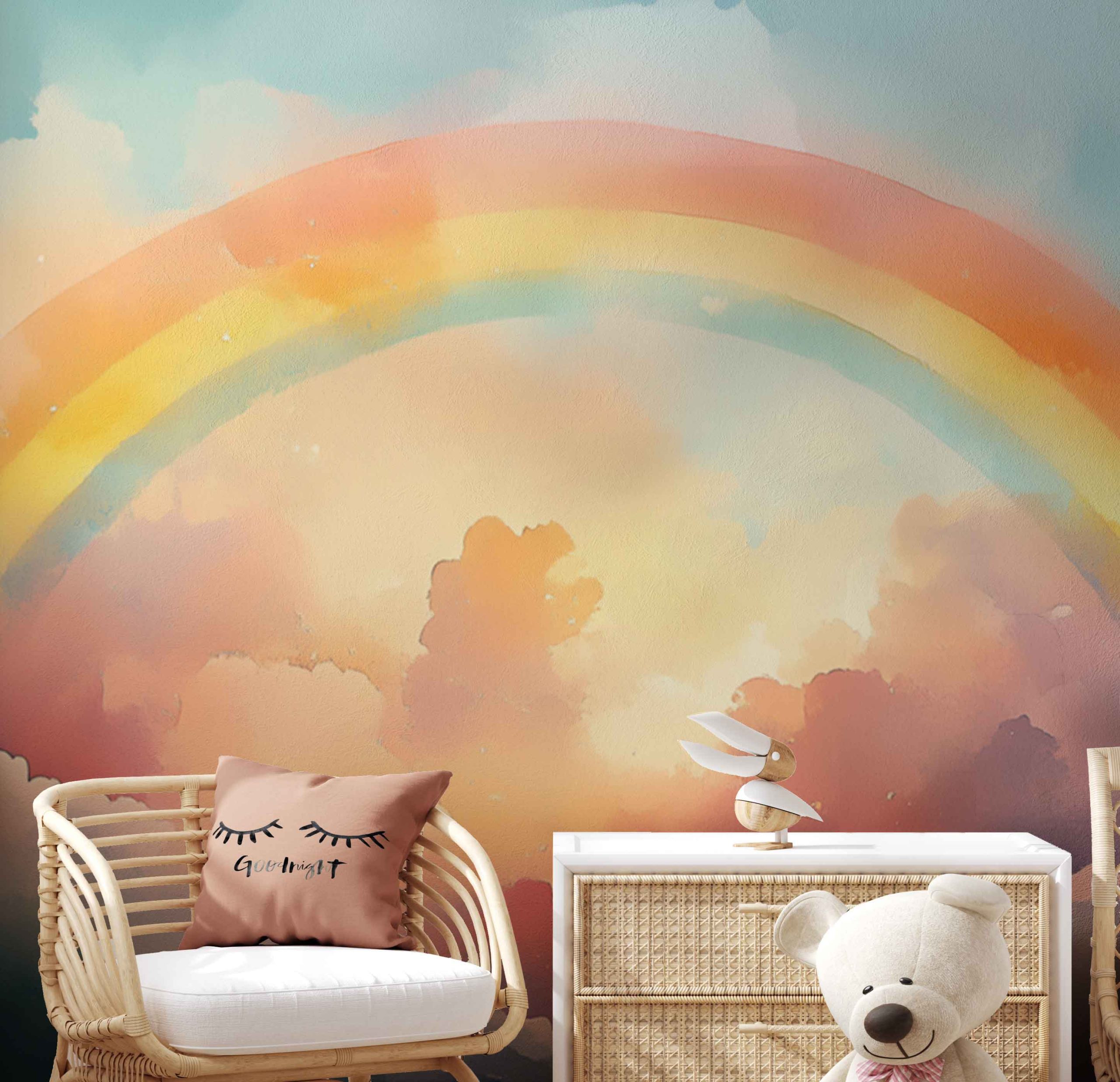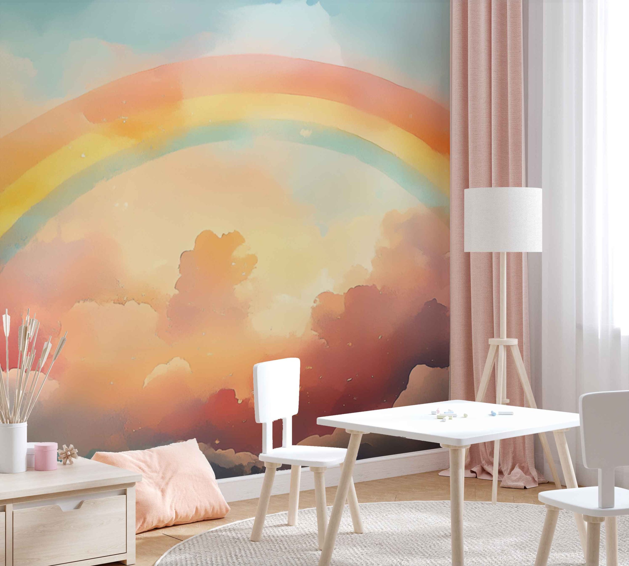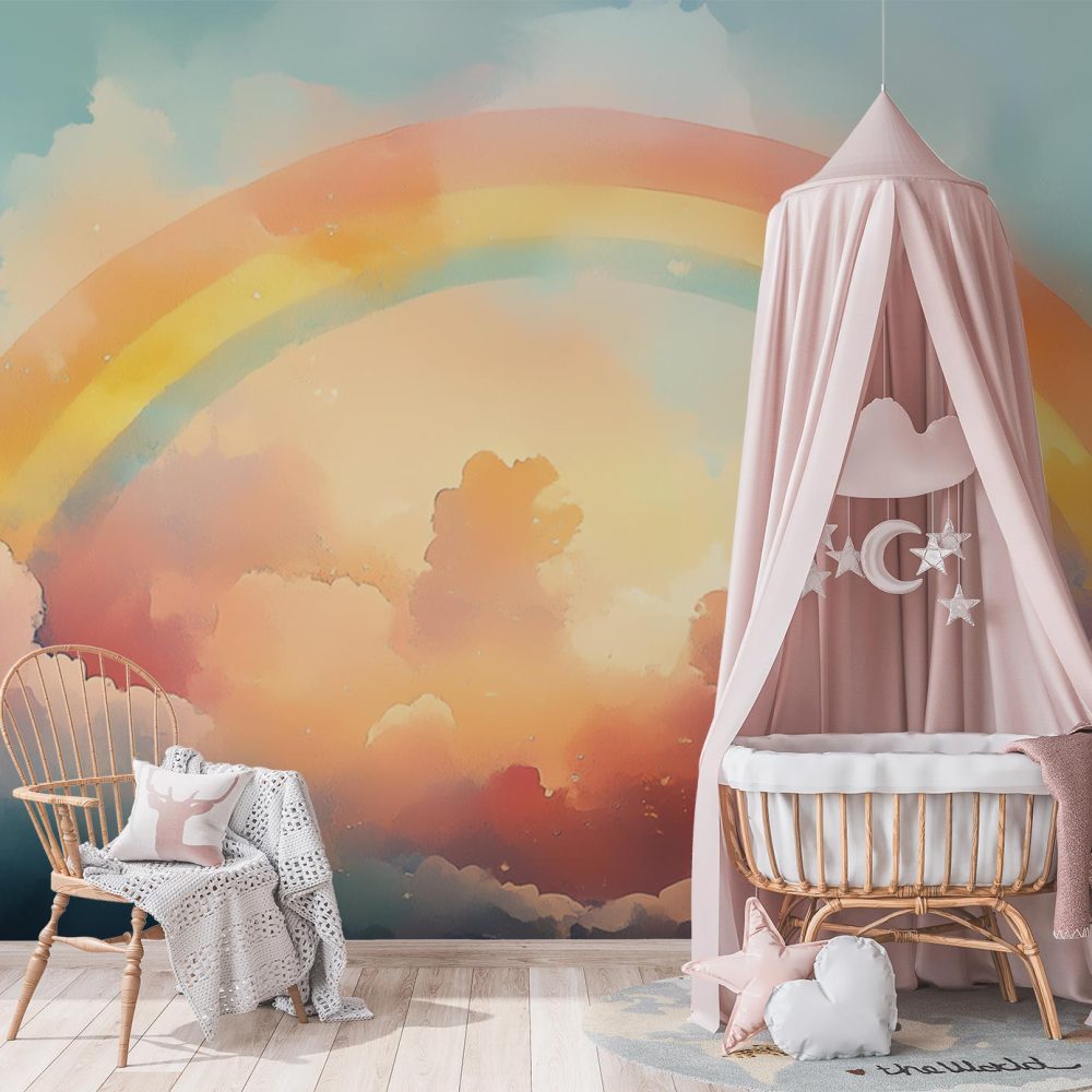 Terug naar collectie / Behang / Kinderkamer behang / Babykamer behang / Kleurrijke regenboogfantasie behang