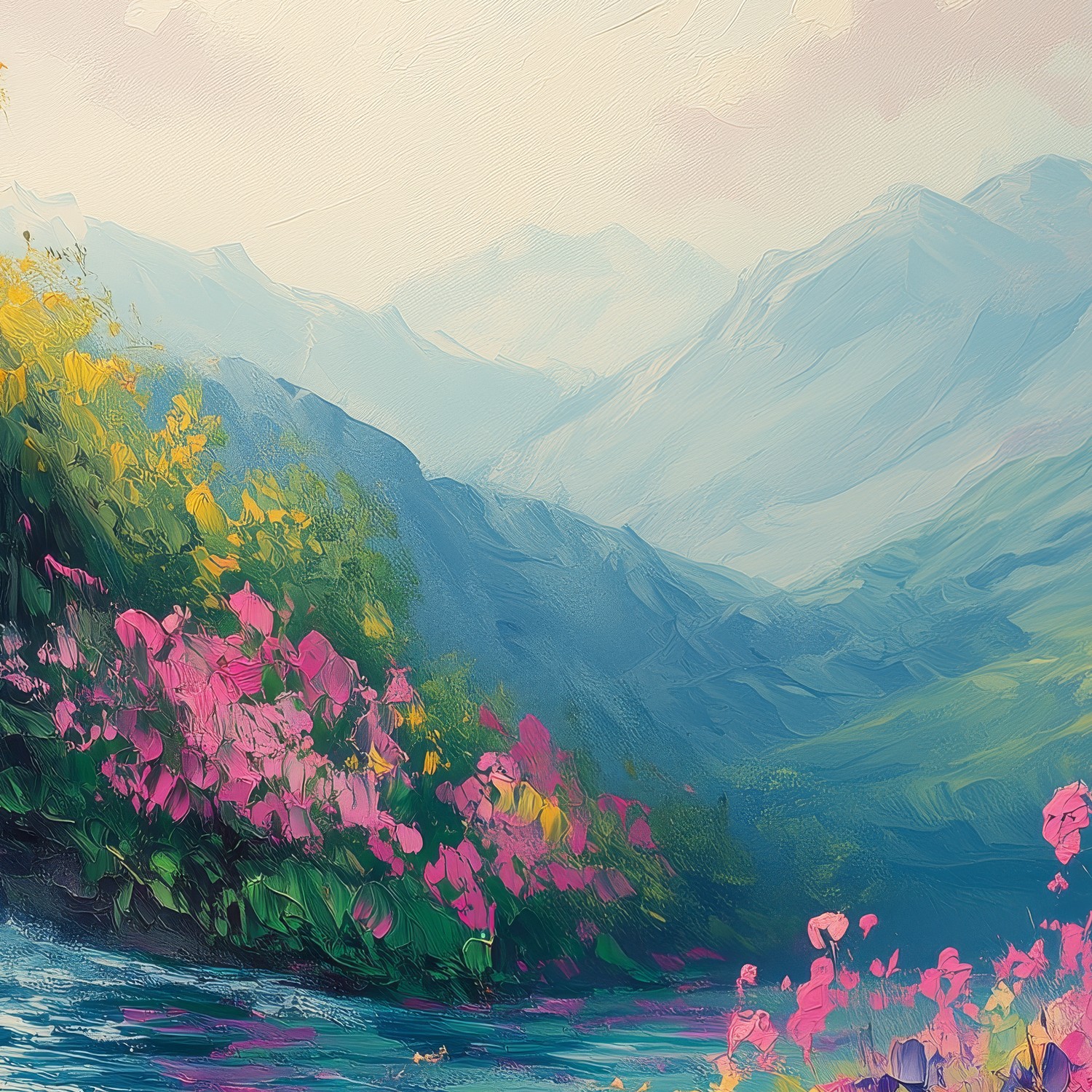 Terug naar collectie / Behang / Kleurrijke waterval en bloemen behang