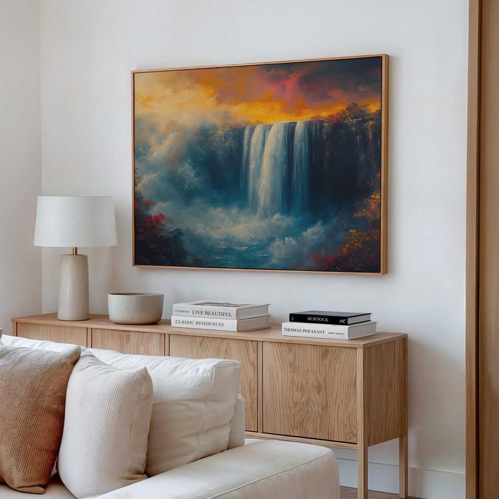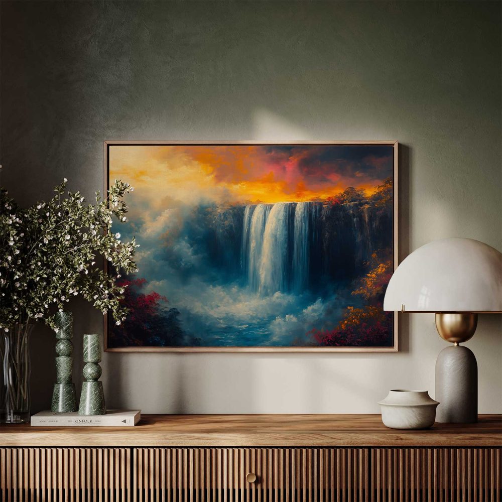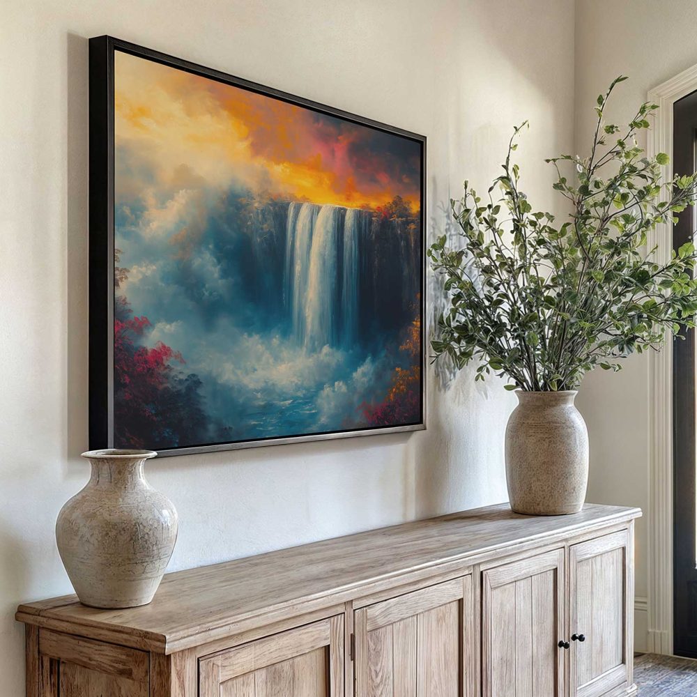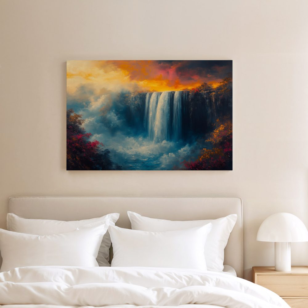 Terug naar collectie / Schilderijen / Bergen Schilderij / Kleurrijke waterval impressie