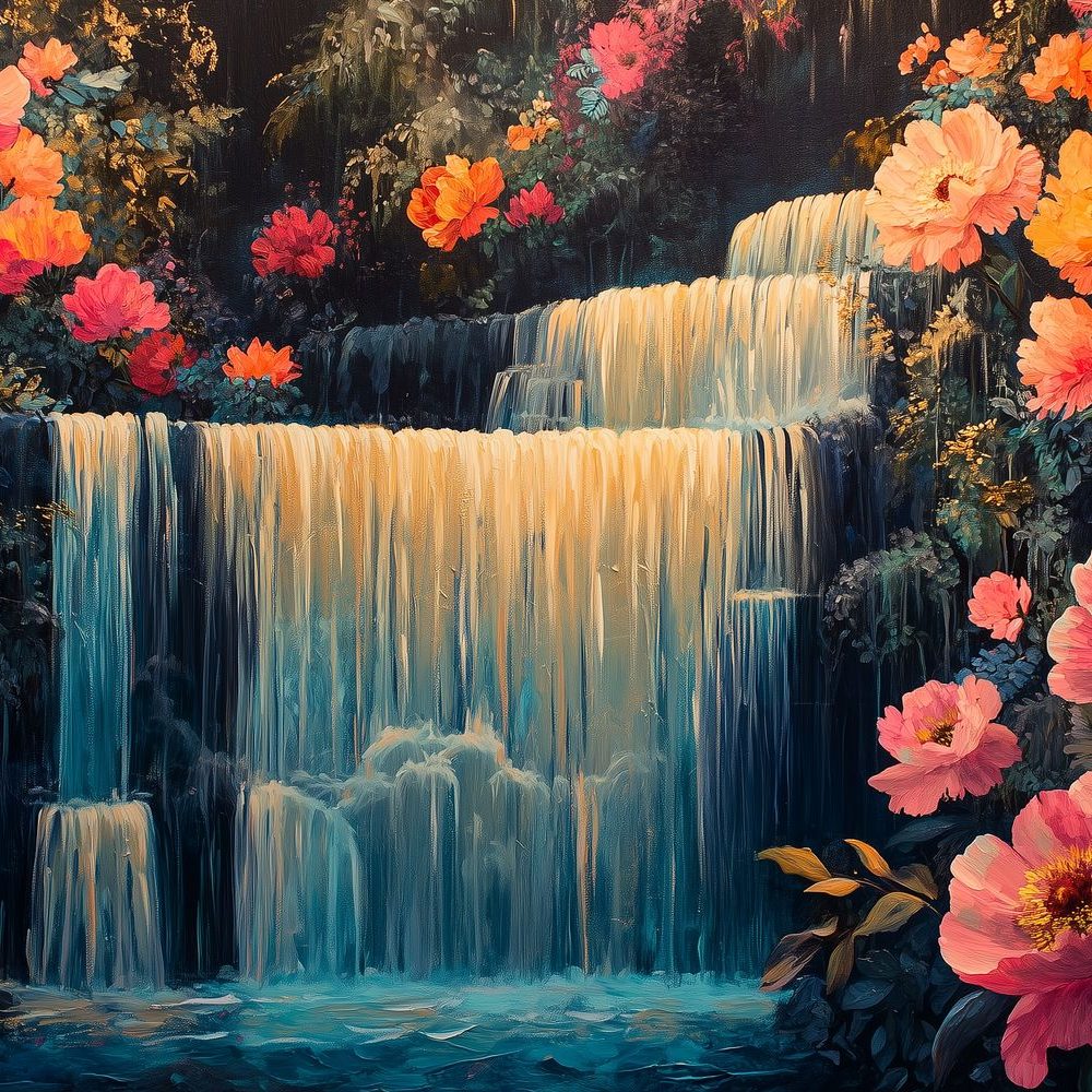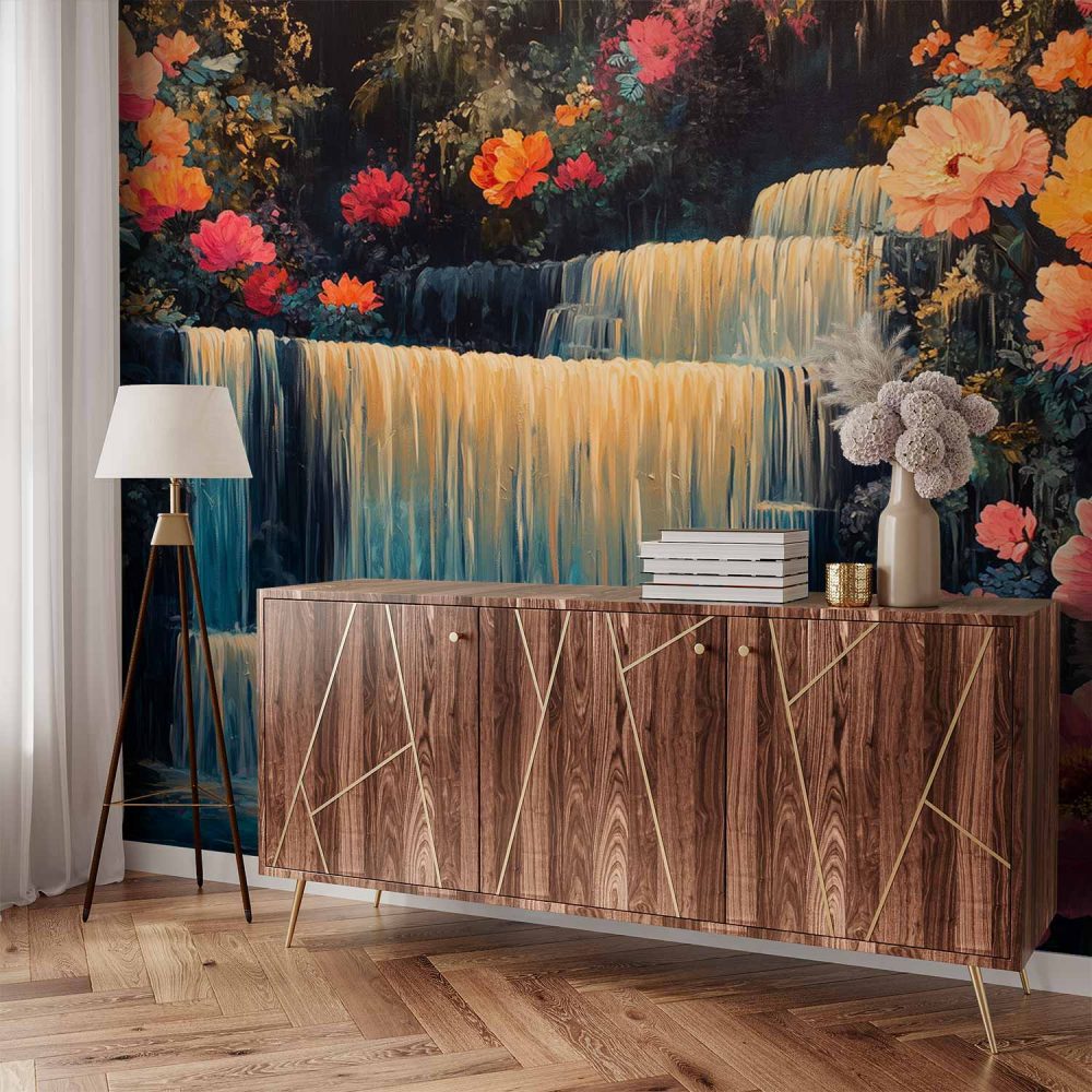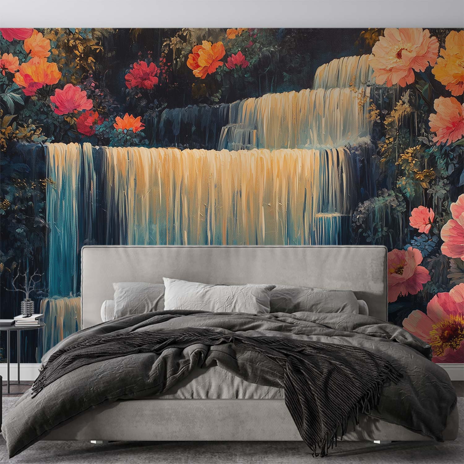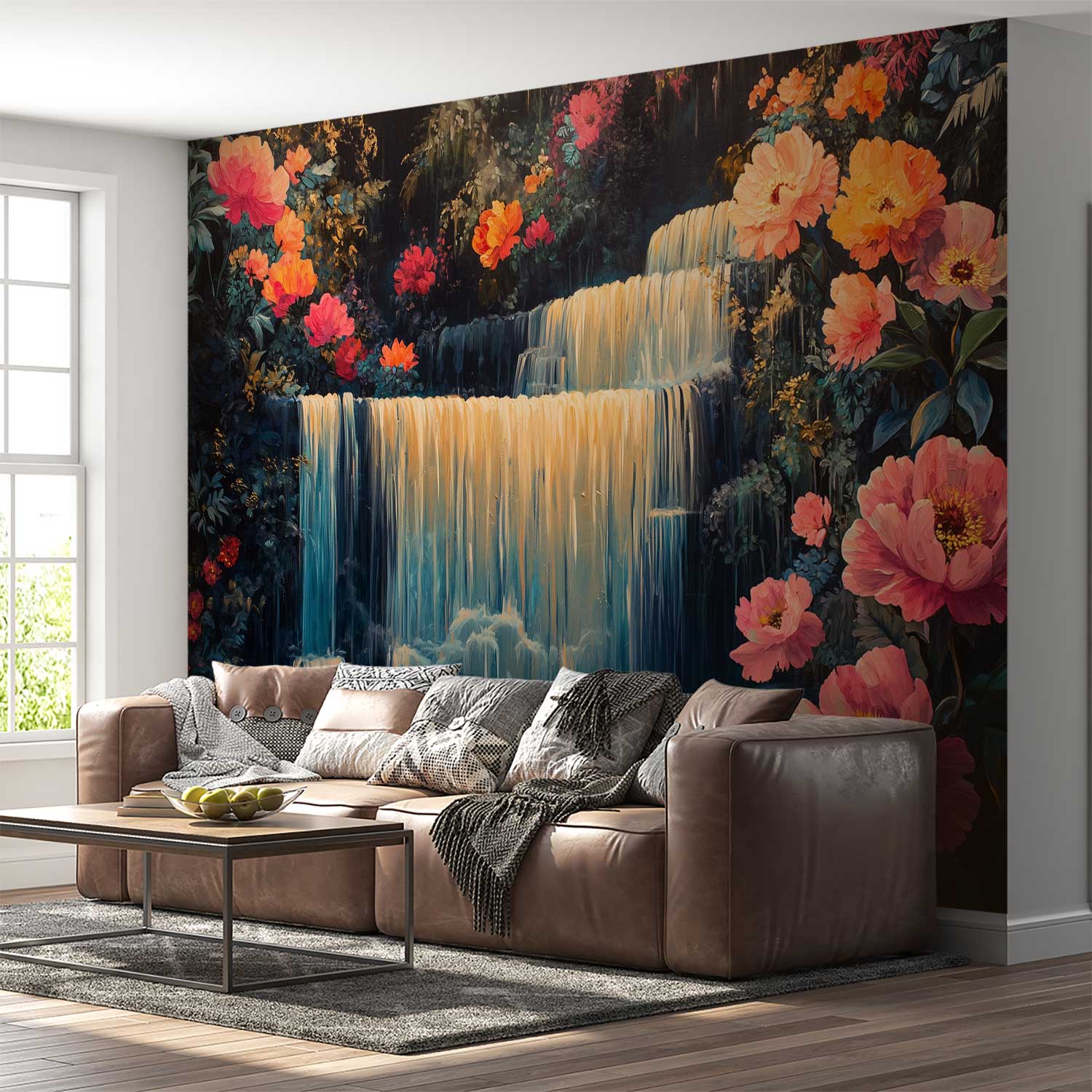 Terug naar collectie / Behang / Kleurrijke waterval in bloei behang