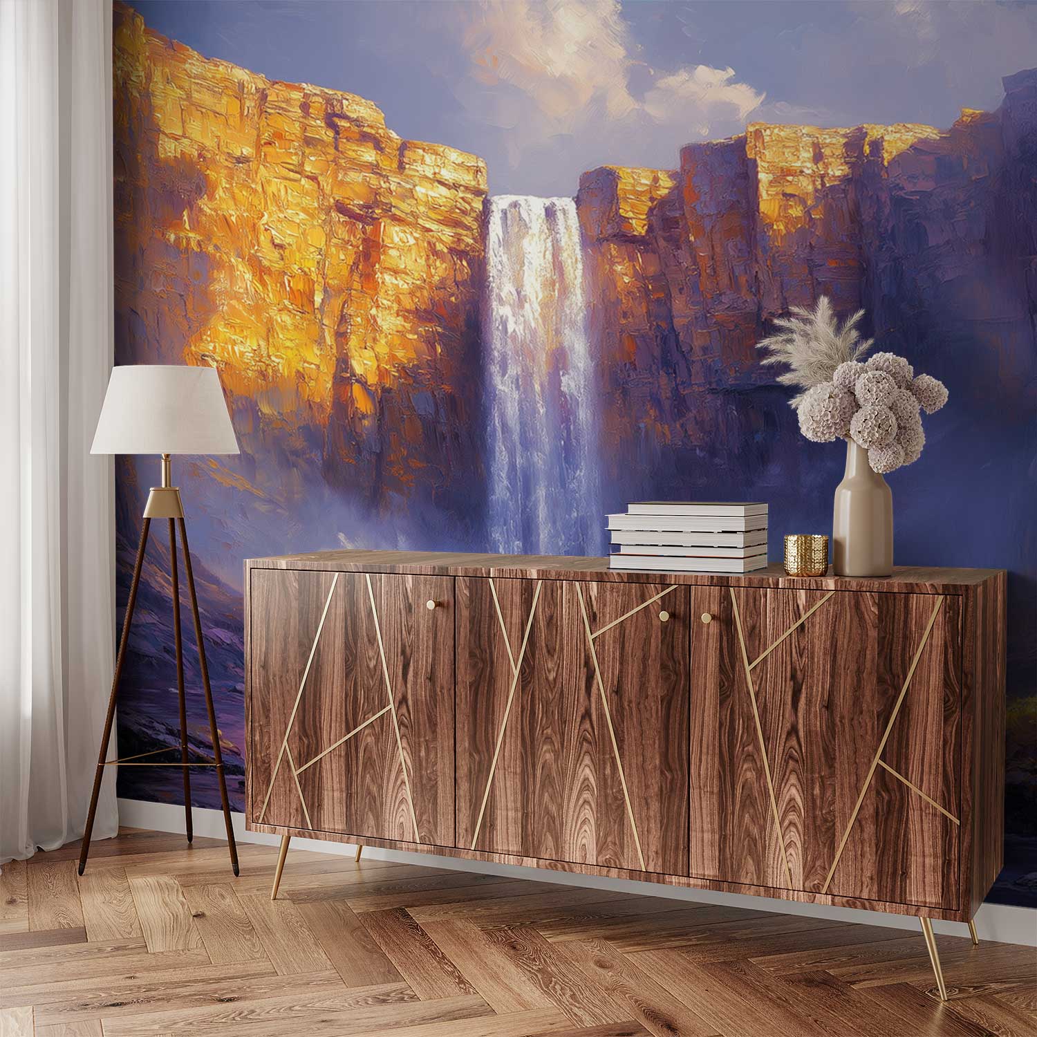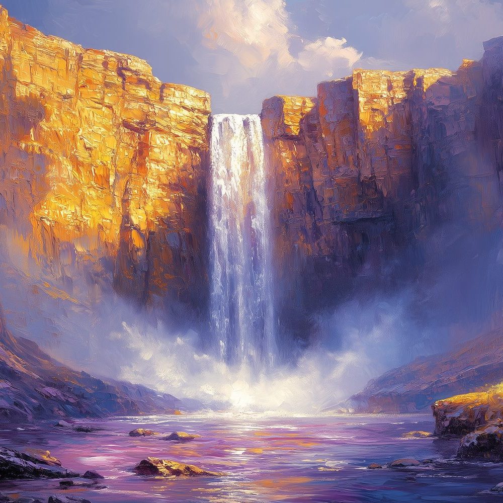Kleurrijke Waterval Schilderij behang