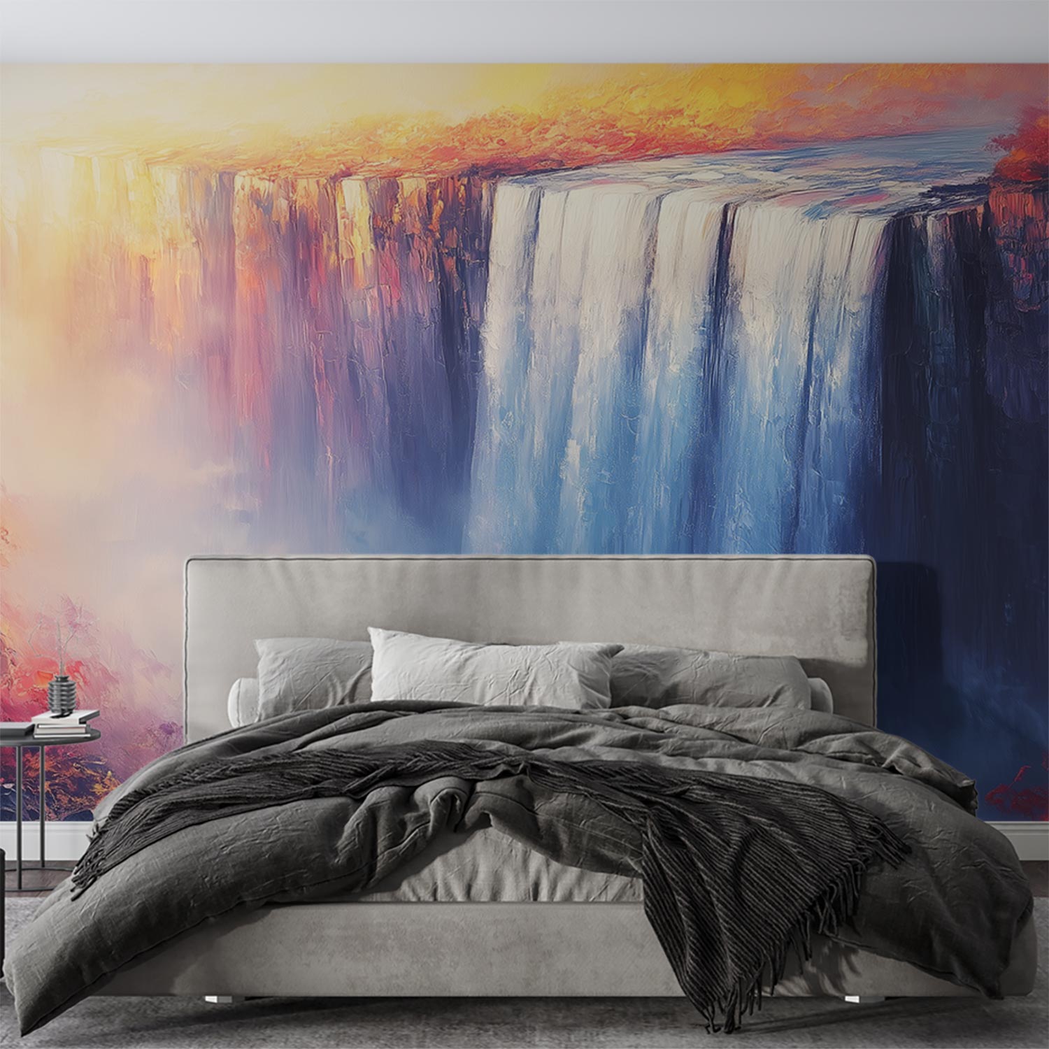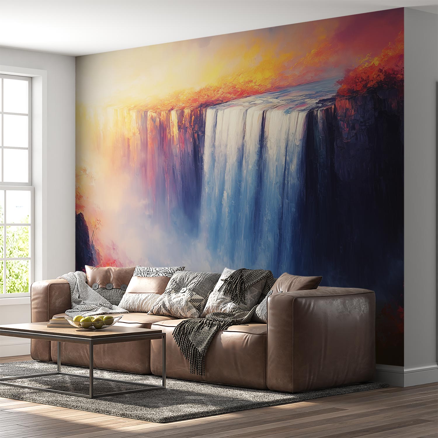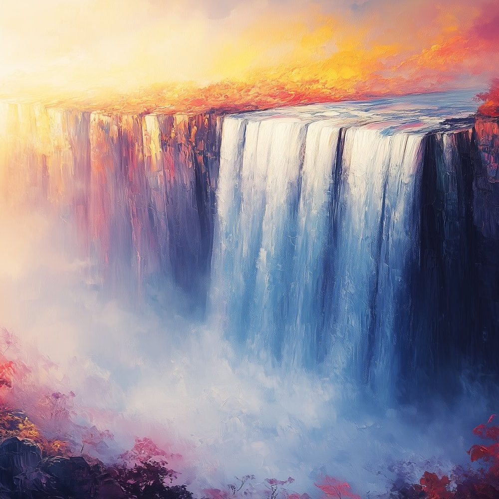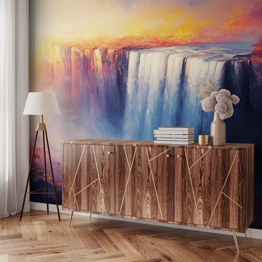 Kleurrijke waterval schilderij behang