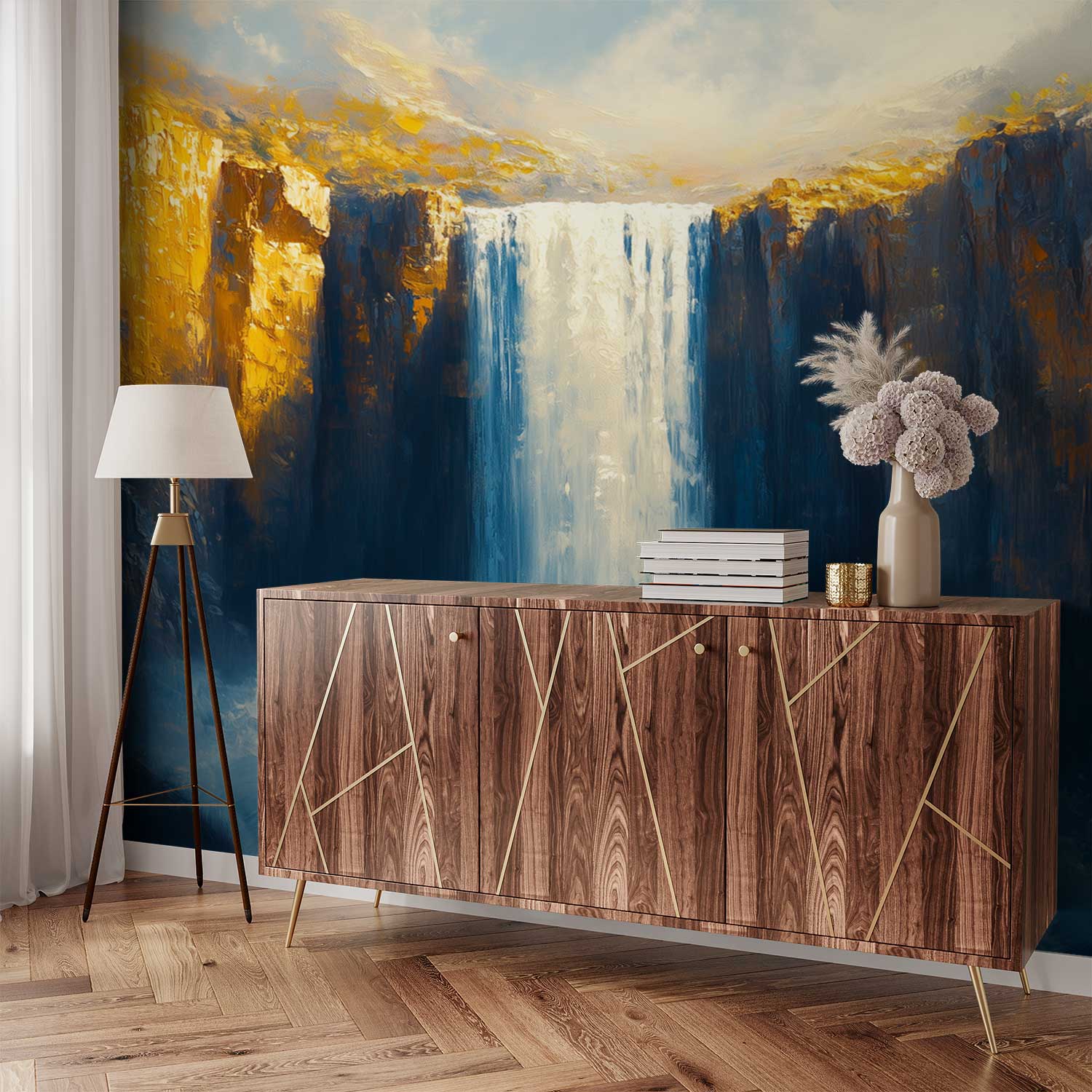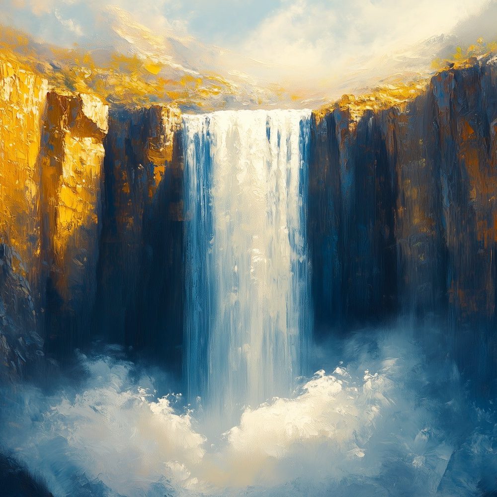 Kleurrijke Waterval Schilderij behang