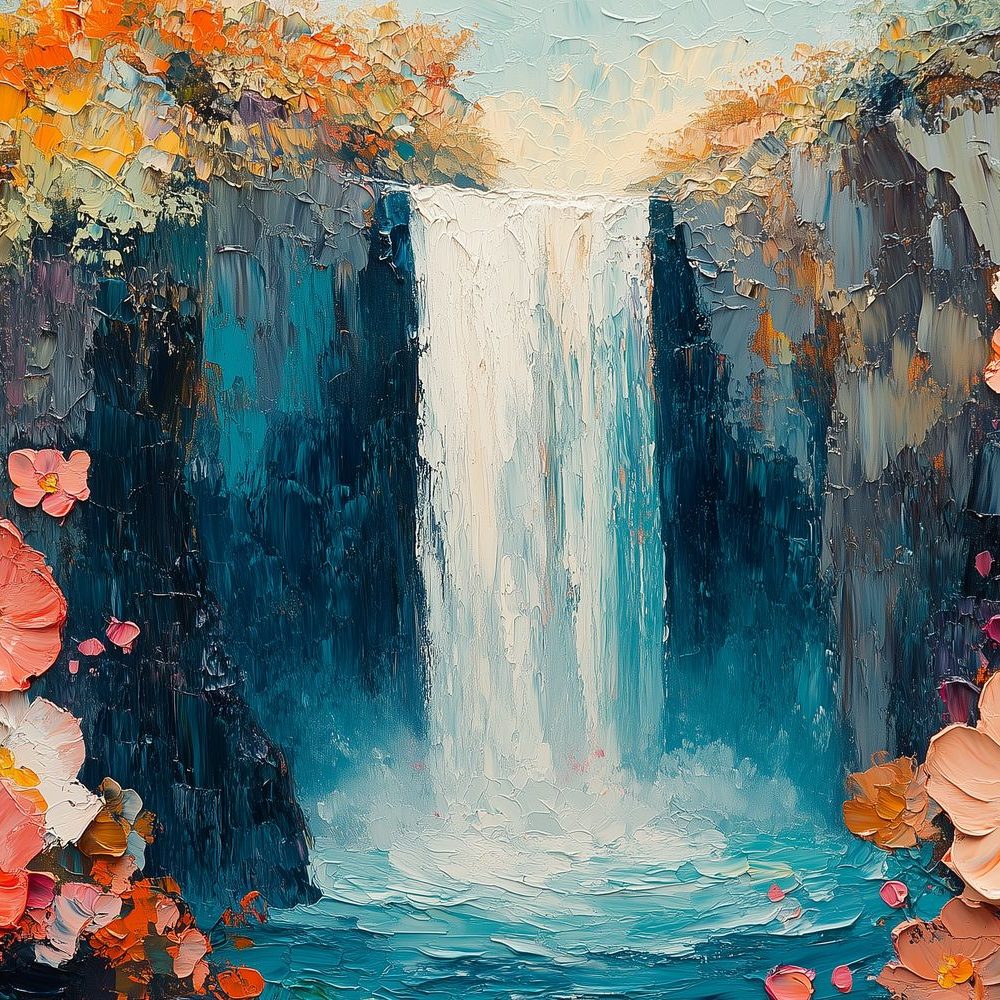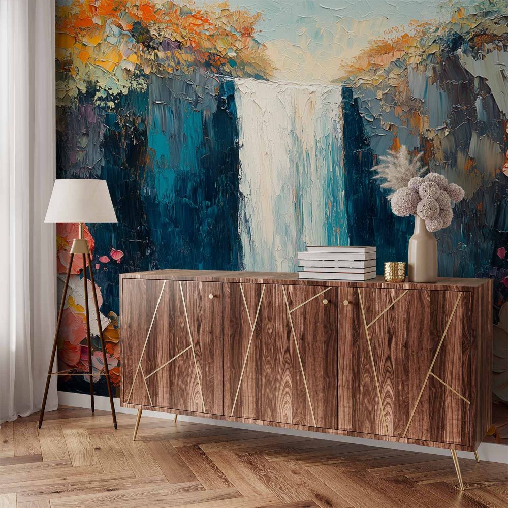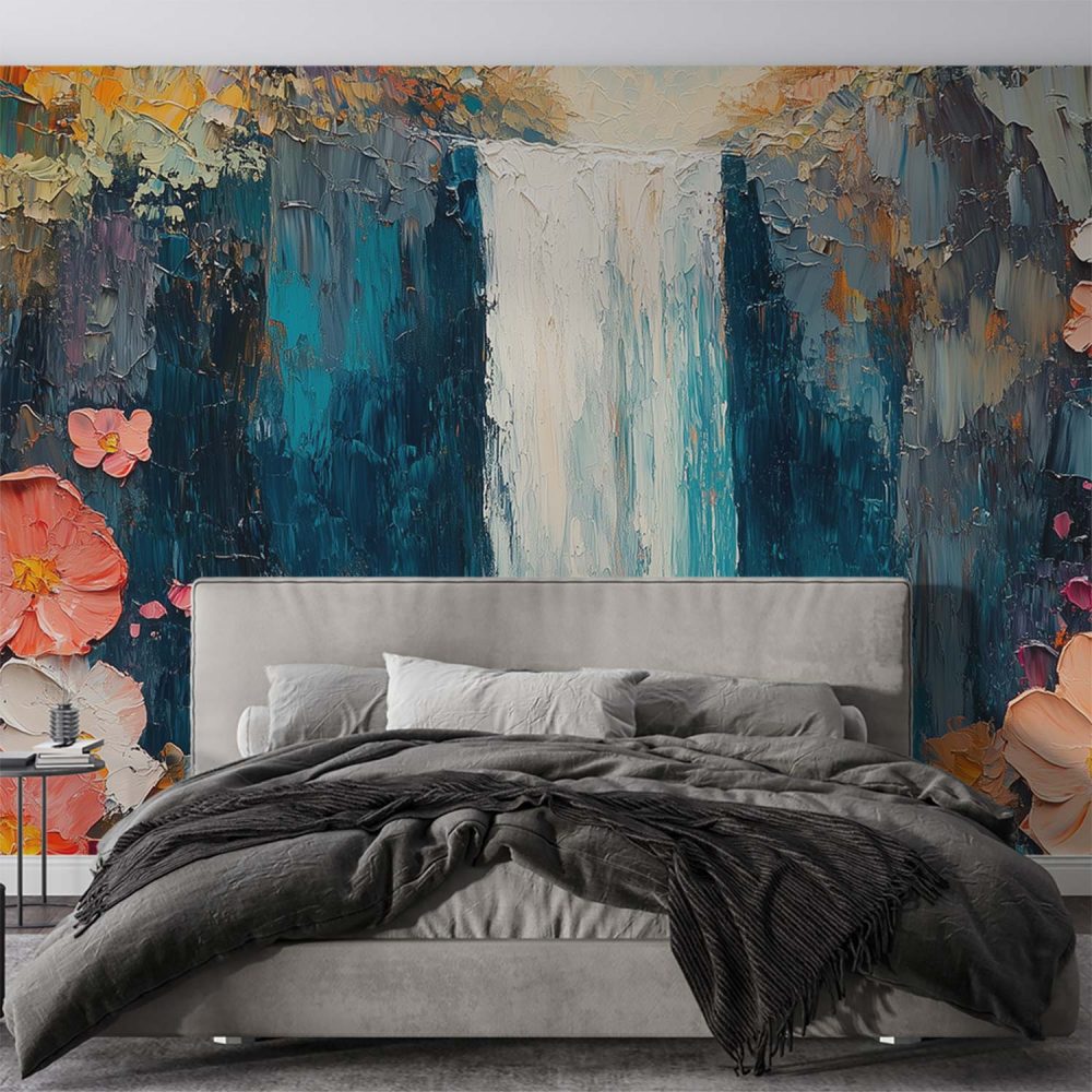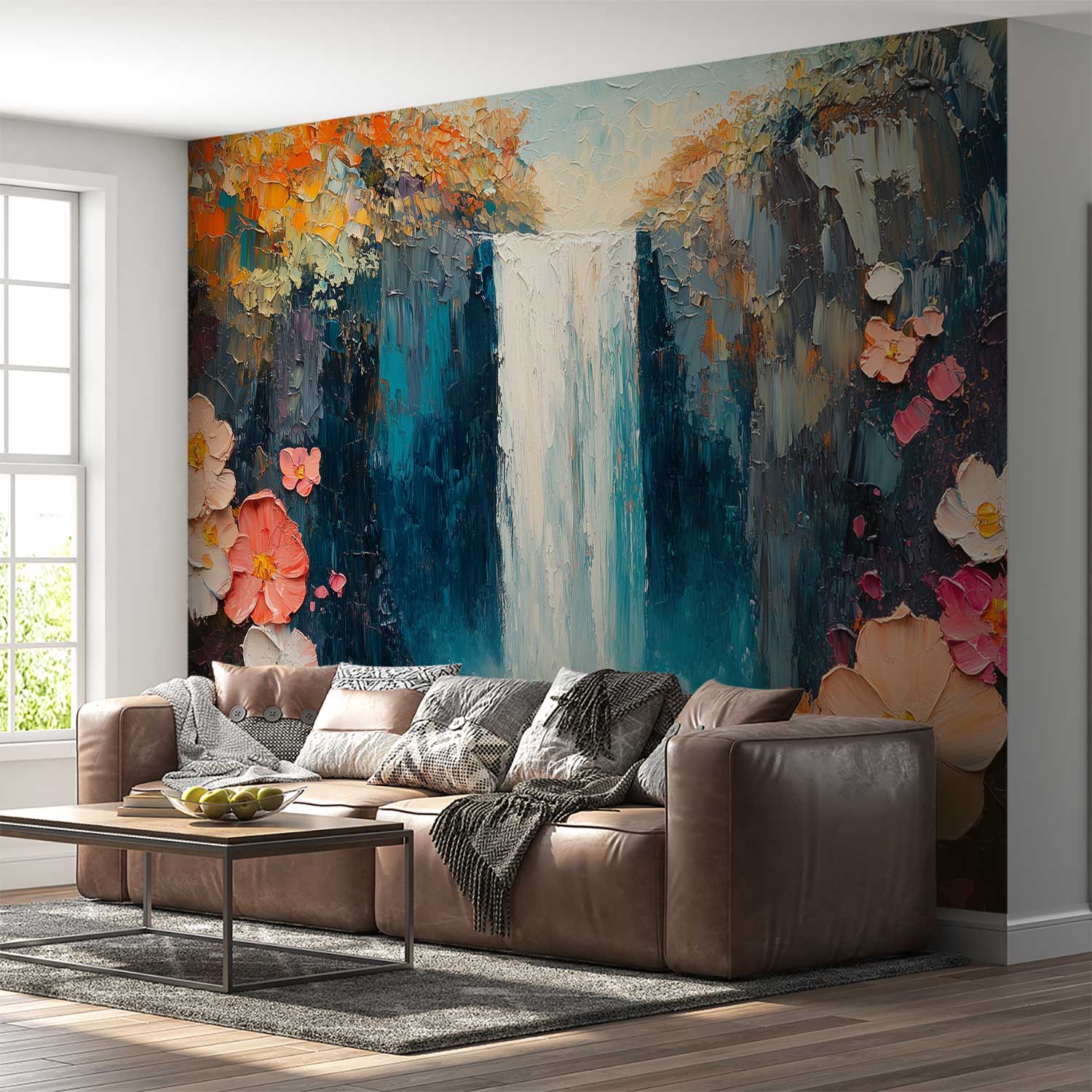 Terug naar collectie / Behang / Kleurrijke watervalbloemenschilderij behang