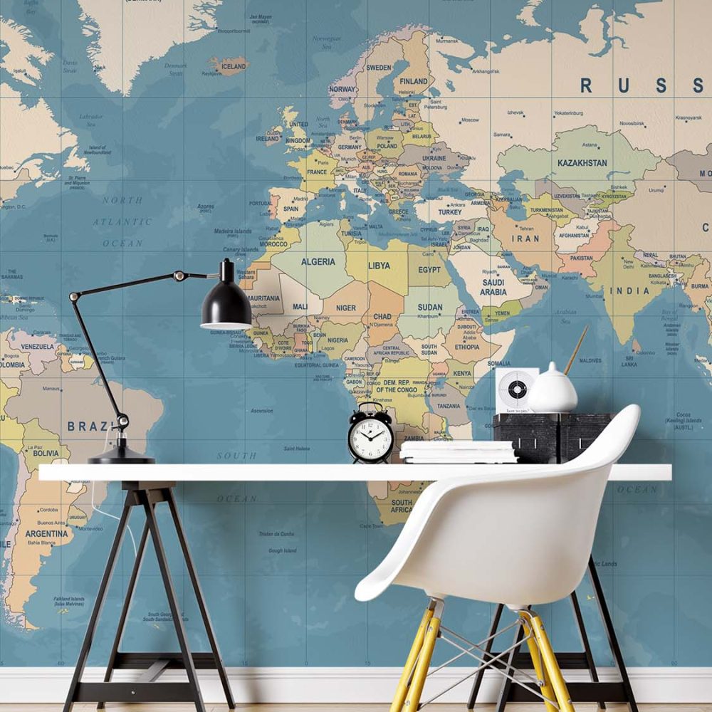 Kleurrijke Wereldkaart Interieurbehang