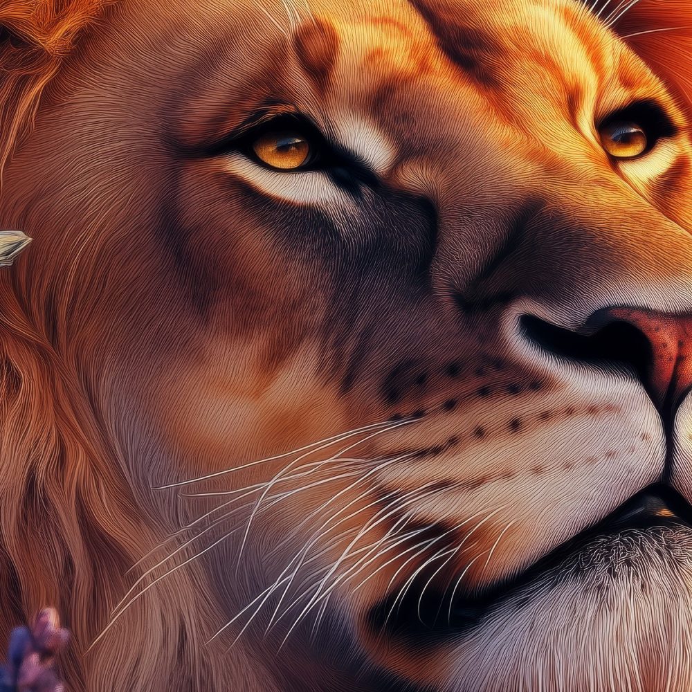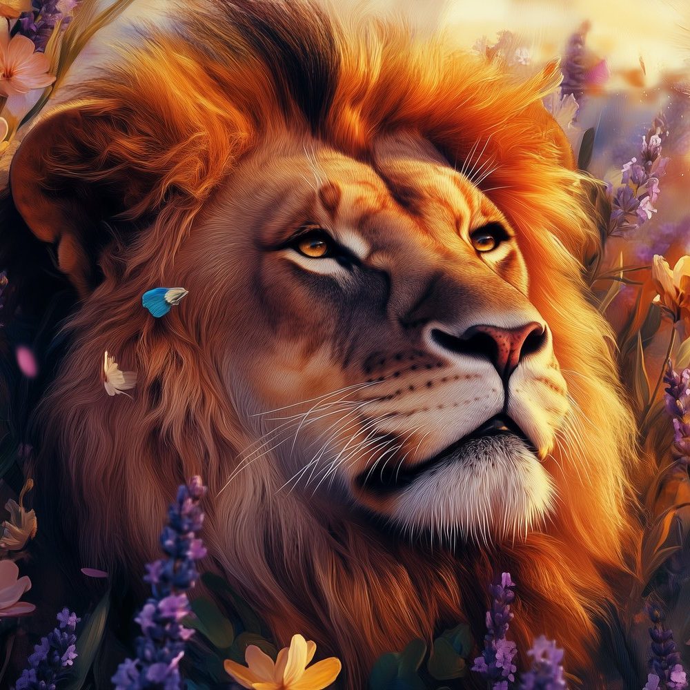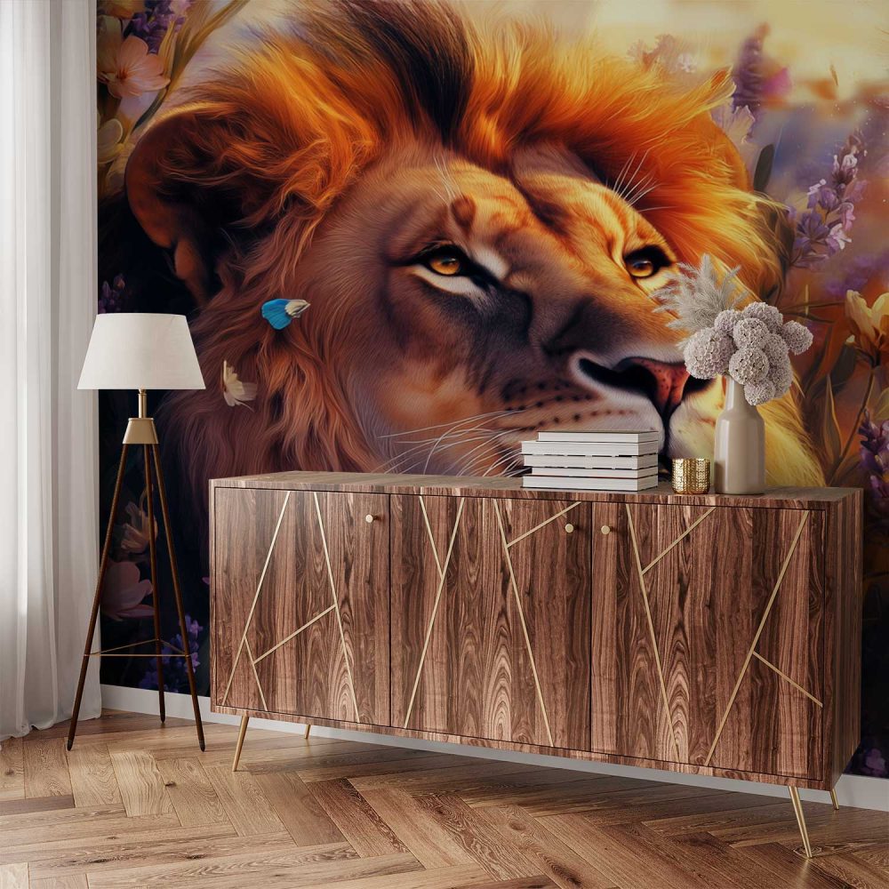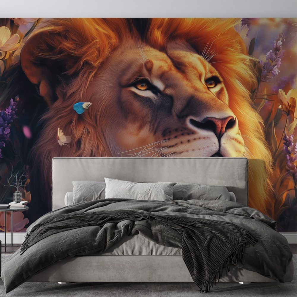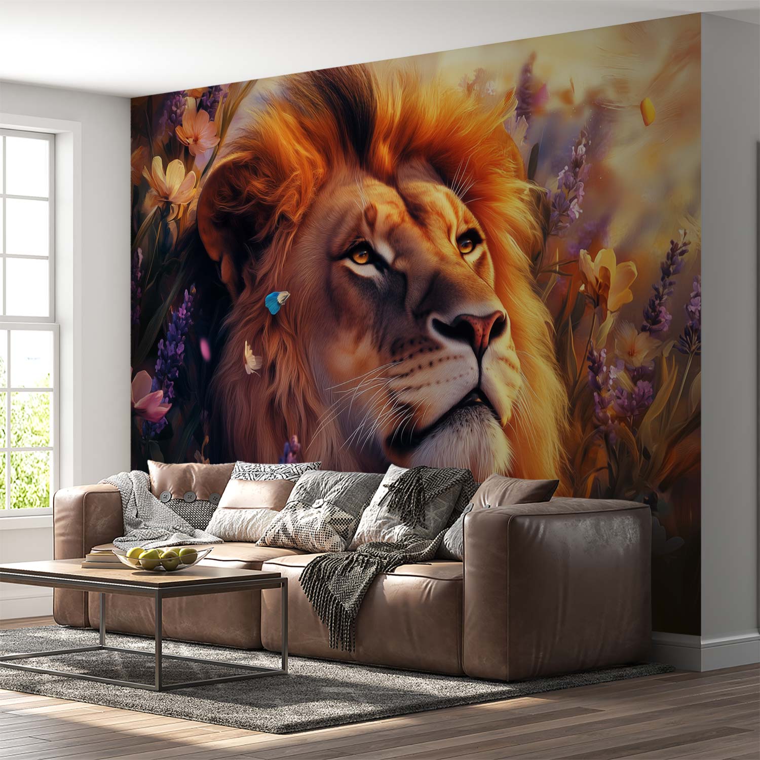 Terug naar collectie / Behang / Koninklijke leeuw in bloementuin behang
