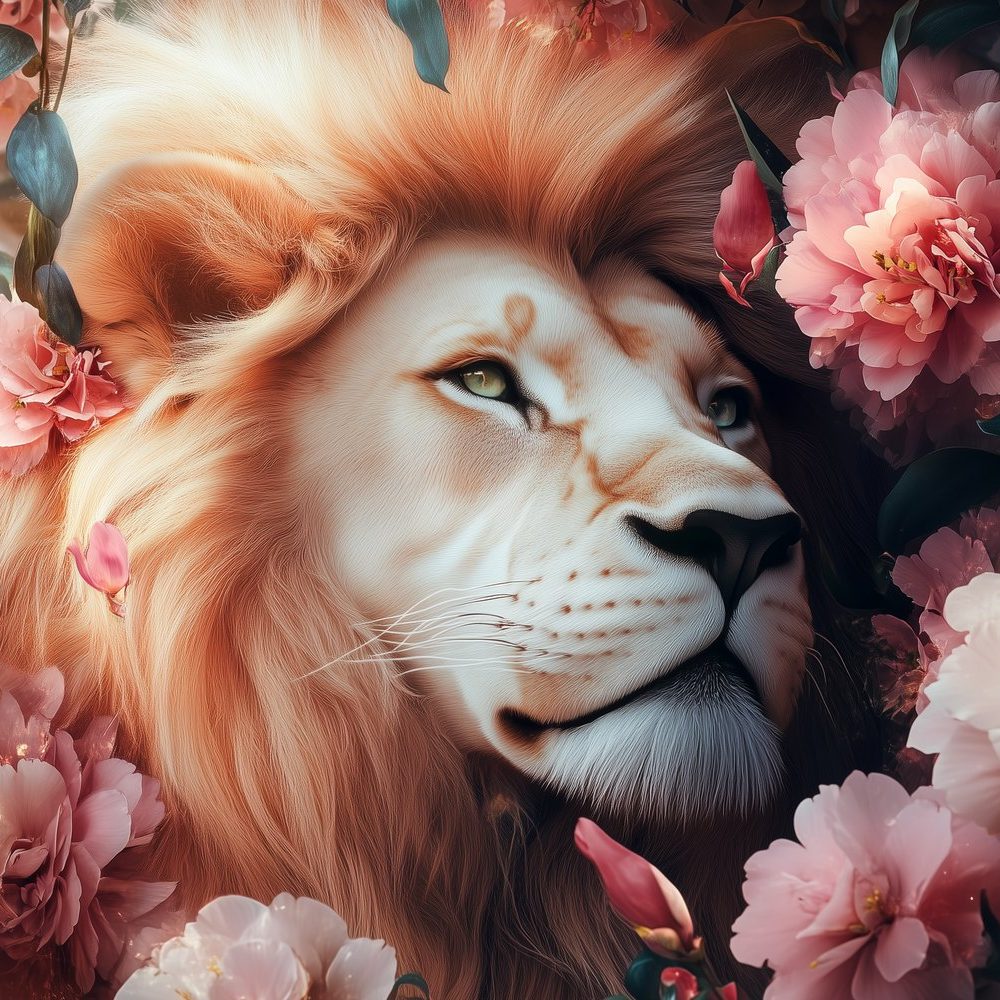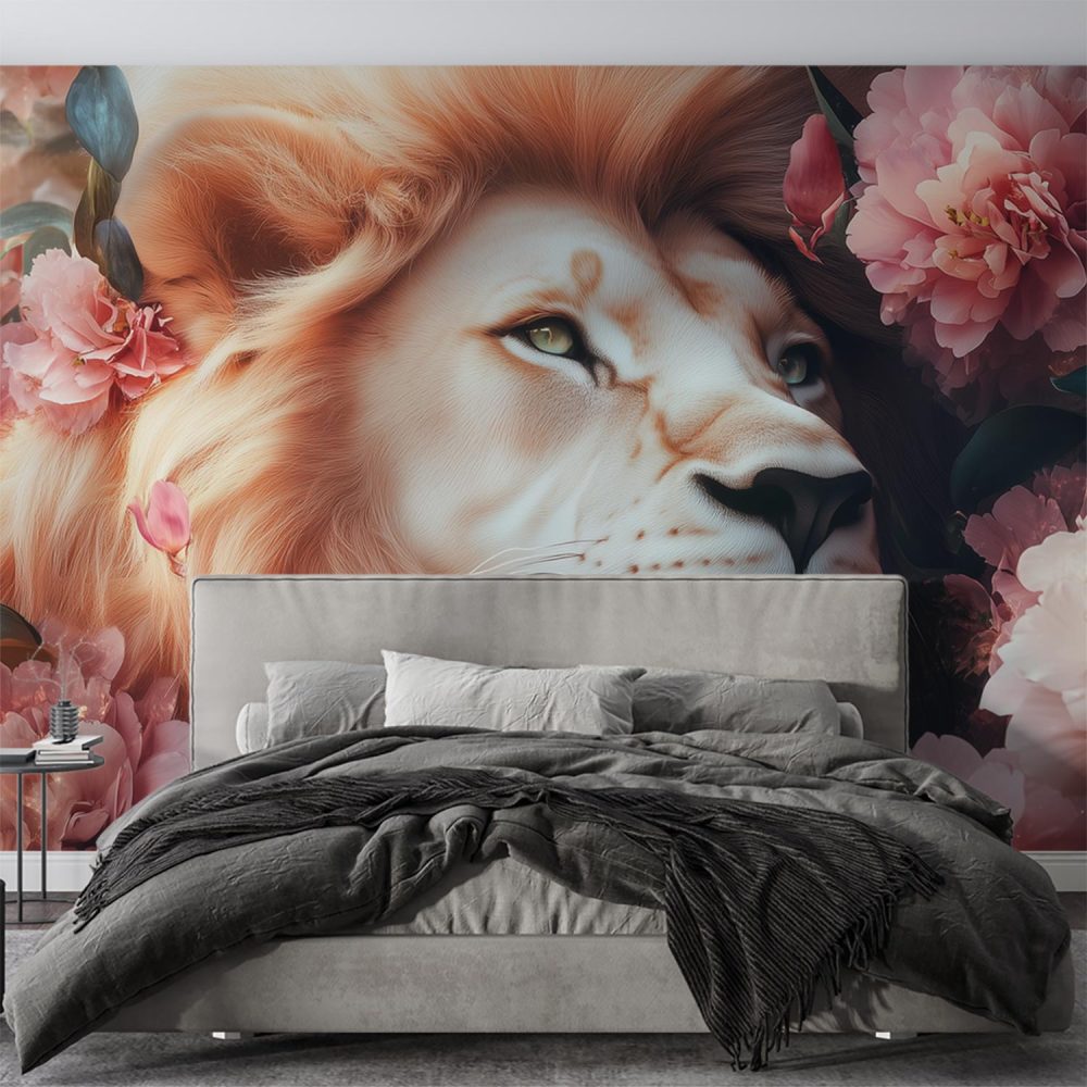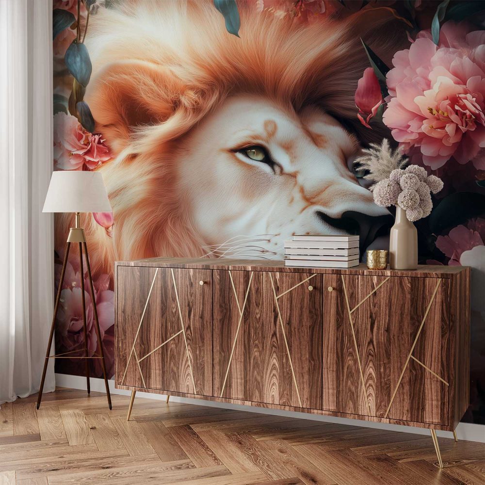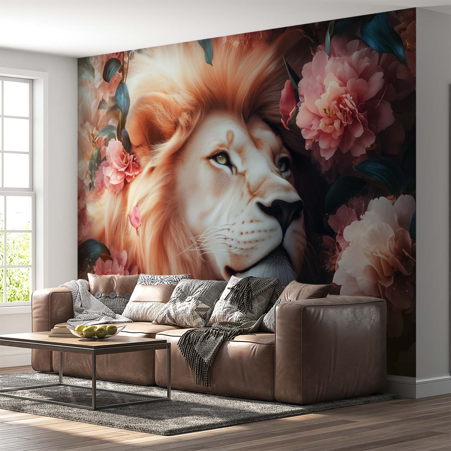 Terug naar collectie / Behang / Koninklijke leeuw tussen bloemen behang