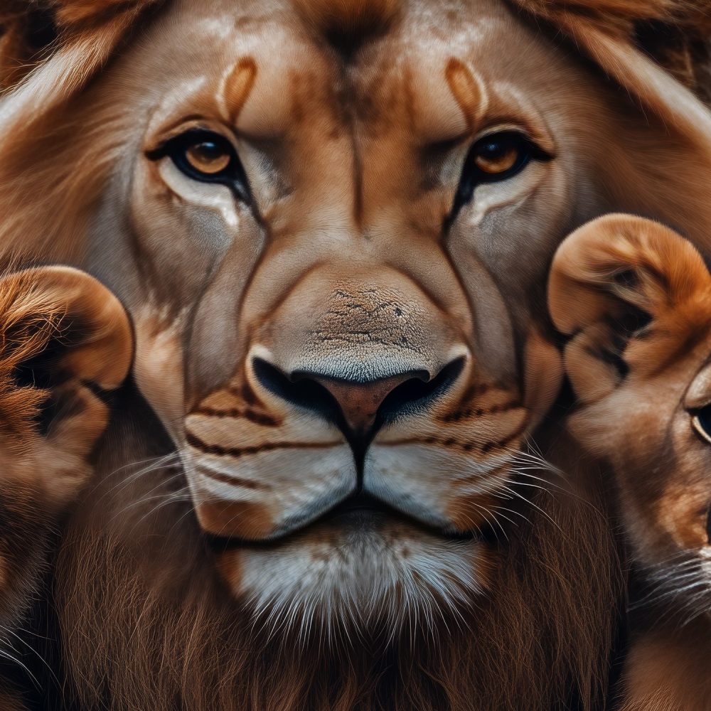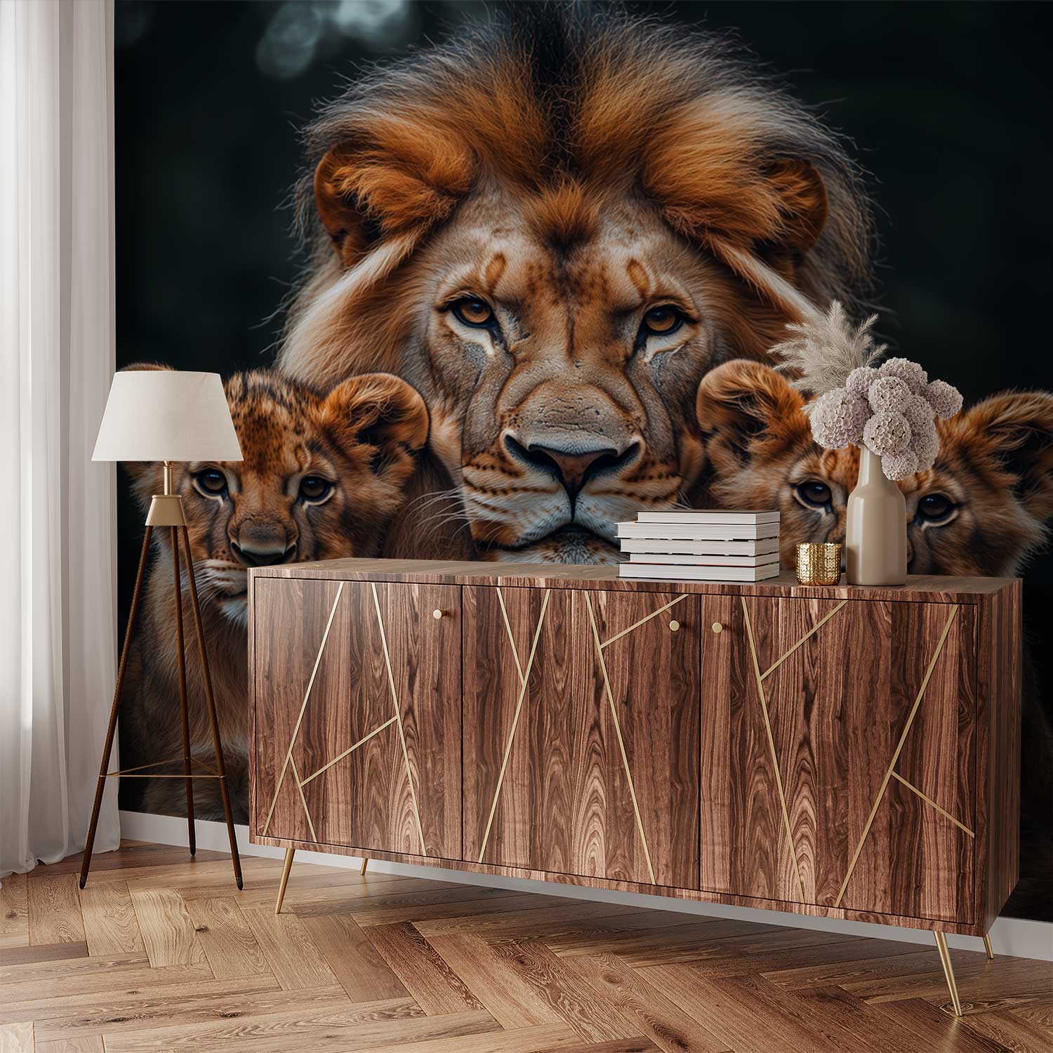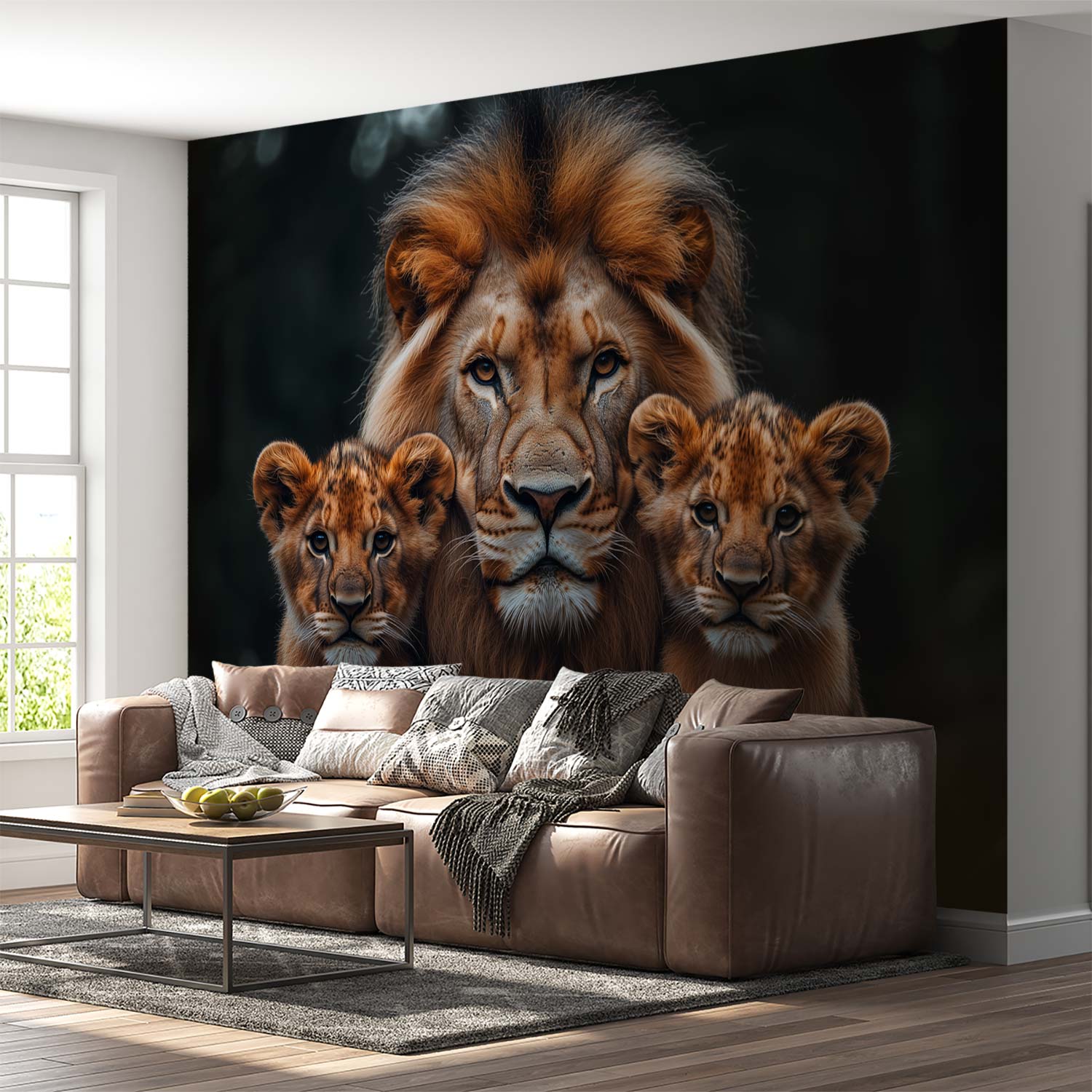 Terug naar collectie / Behang / Koninklijke leeuwenfamilie in rust behang