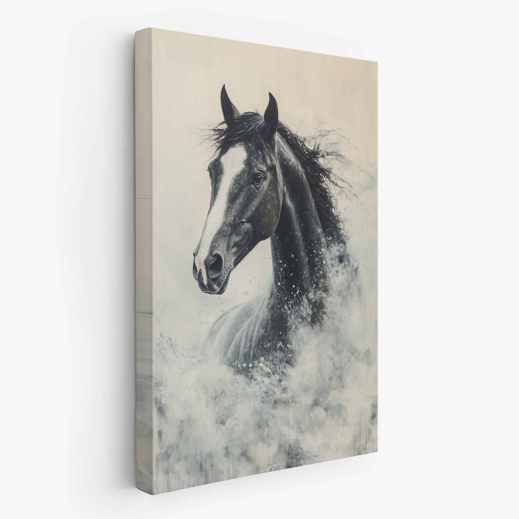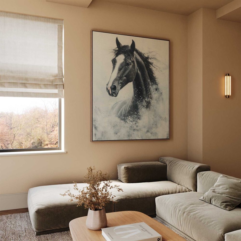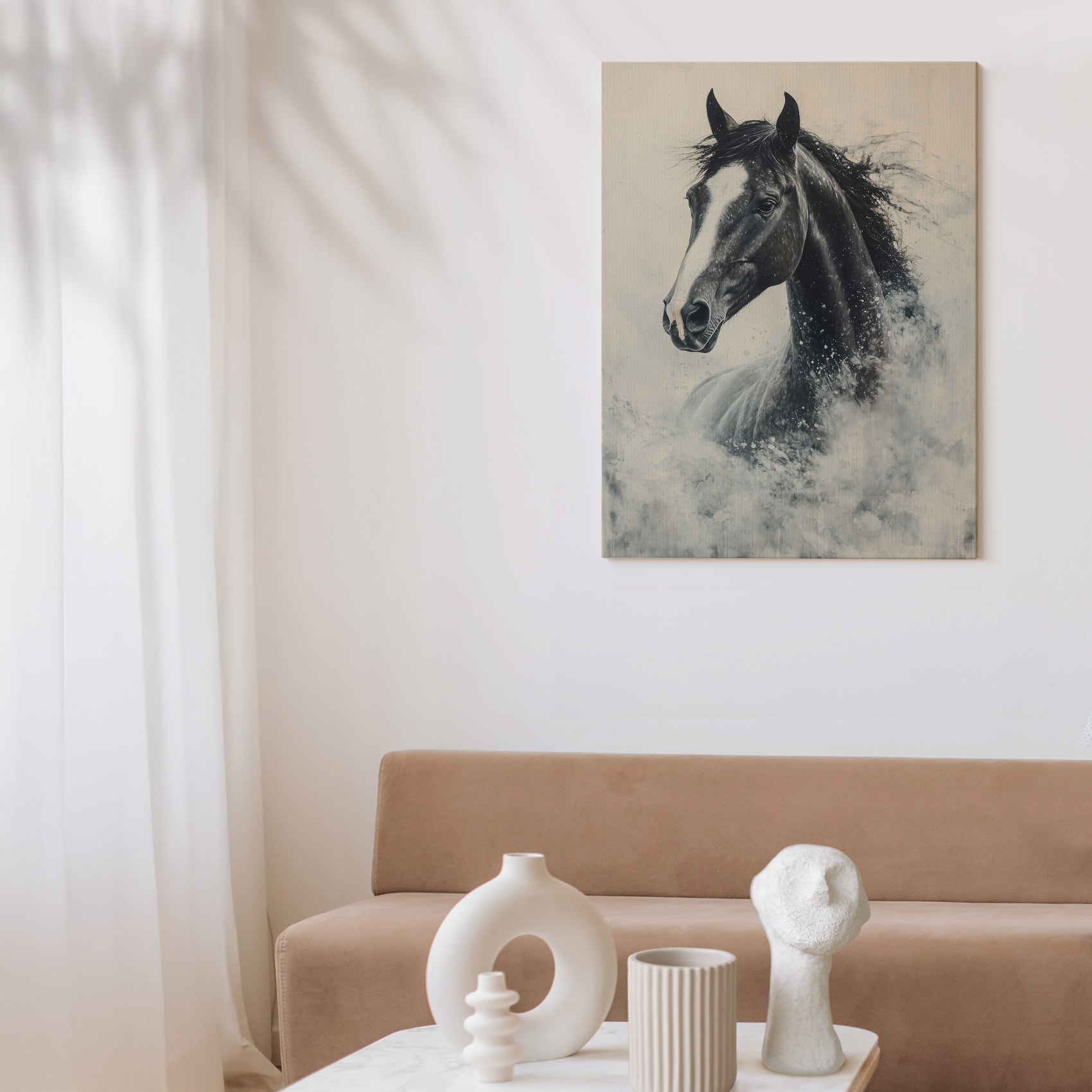 Terug naar collectie / Schilderijen / Dieren Schilderij / Krachtig zwart-wit paardenportret