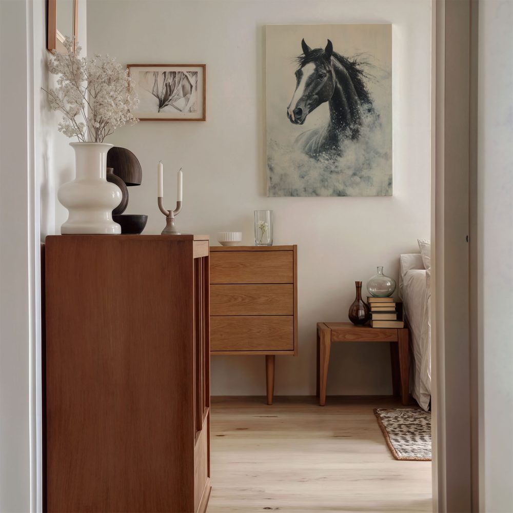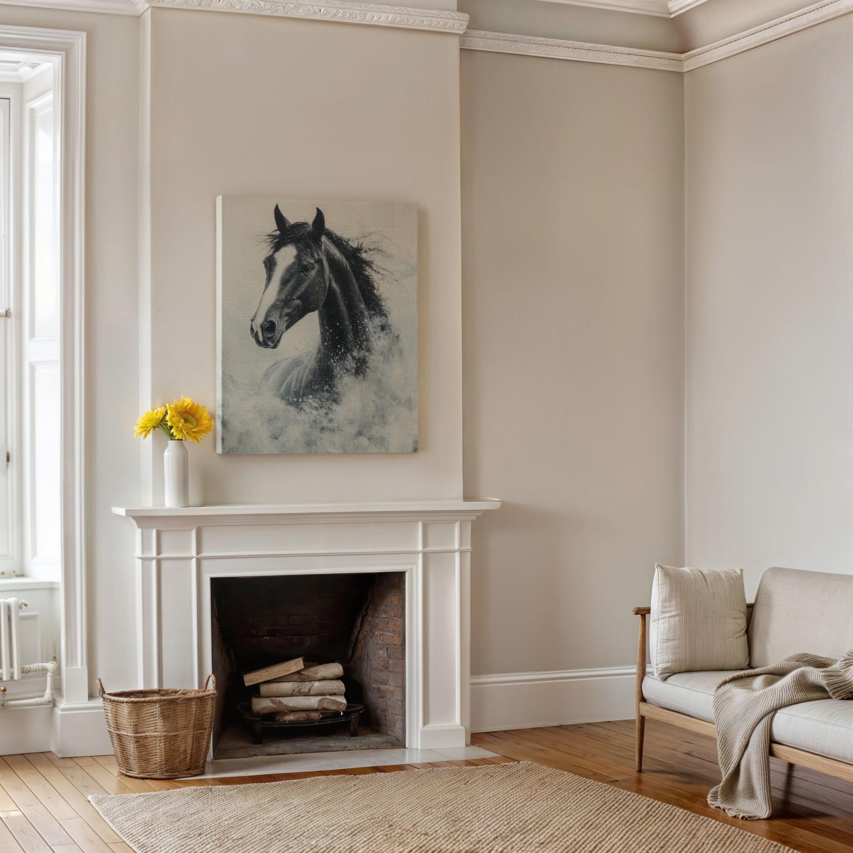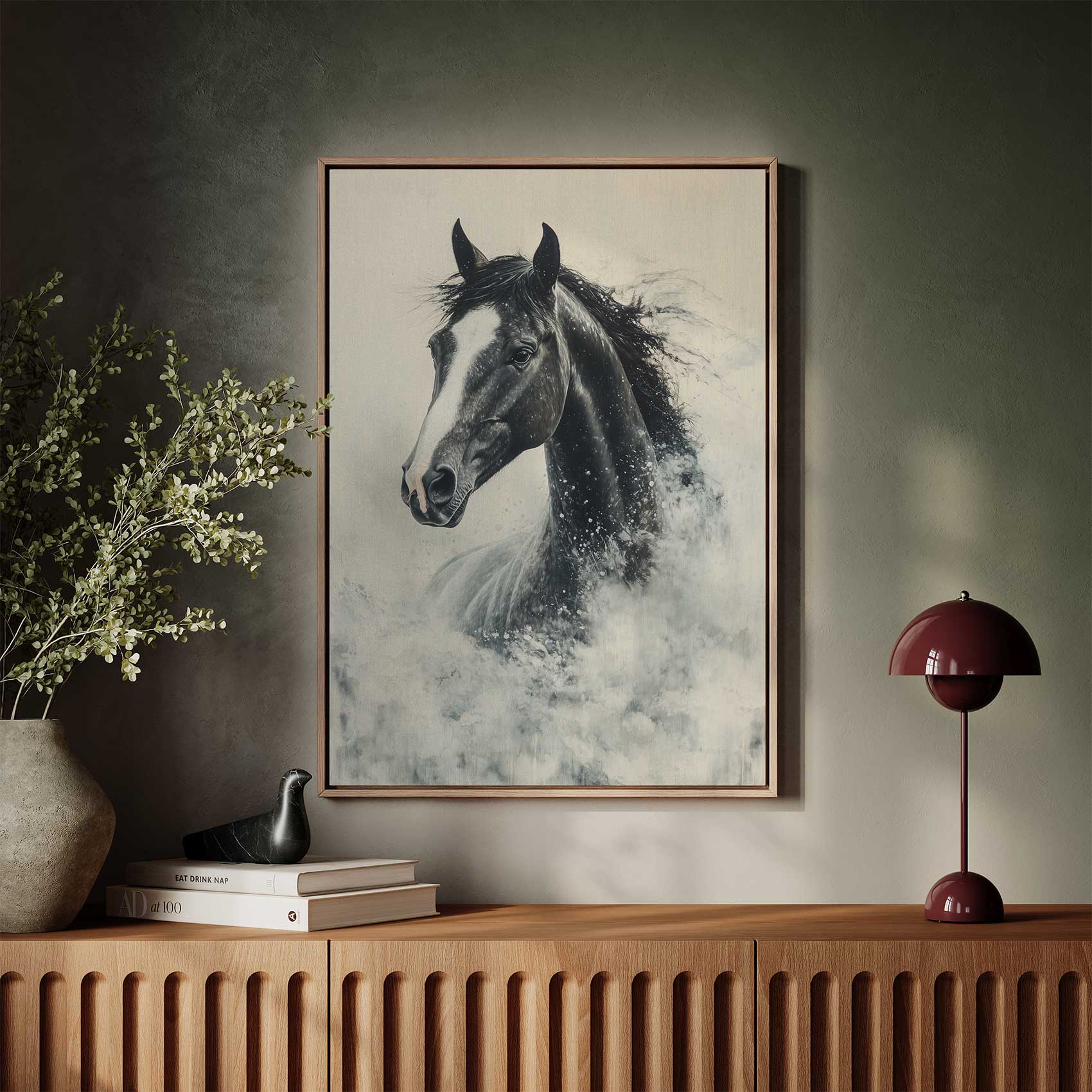 Terug naar collectie / Schilderijen / Dieren Schilderij / Krachtig zwart-wit paardenportret