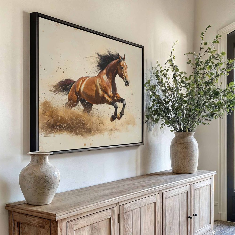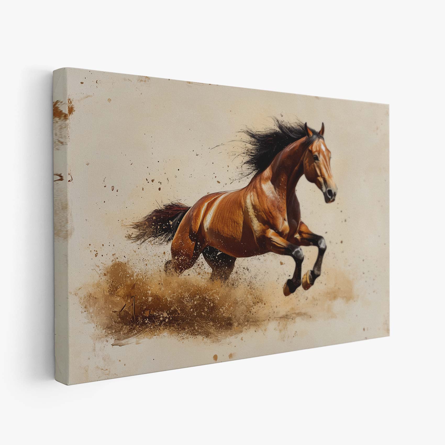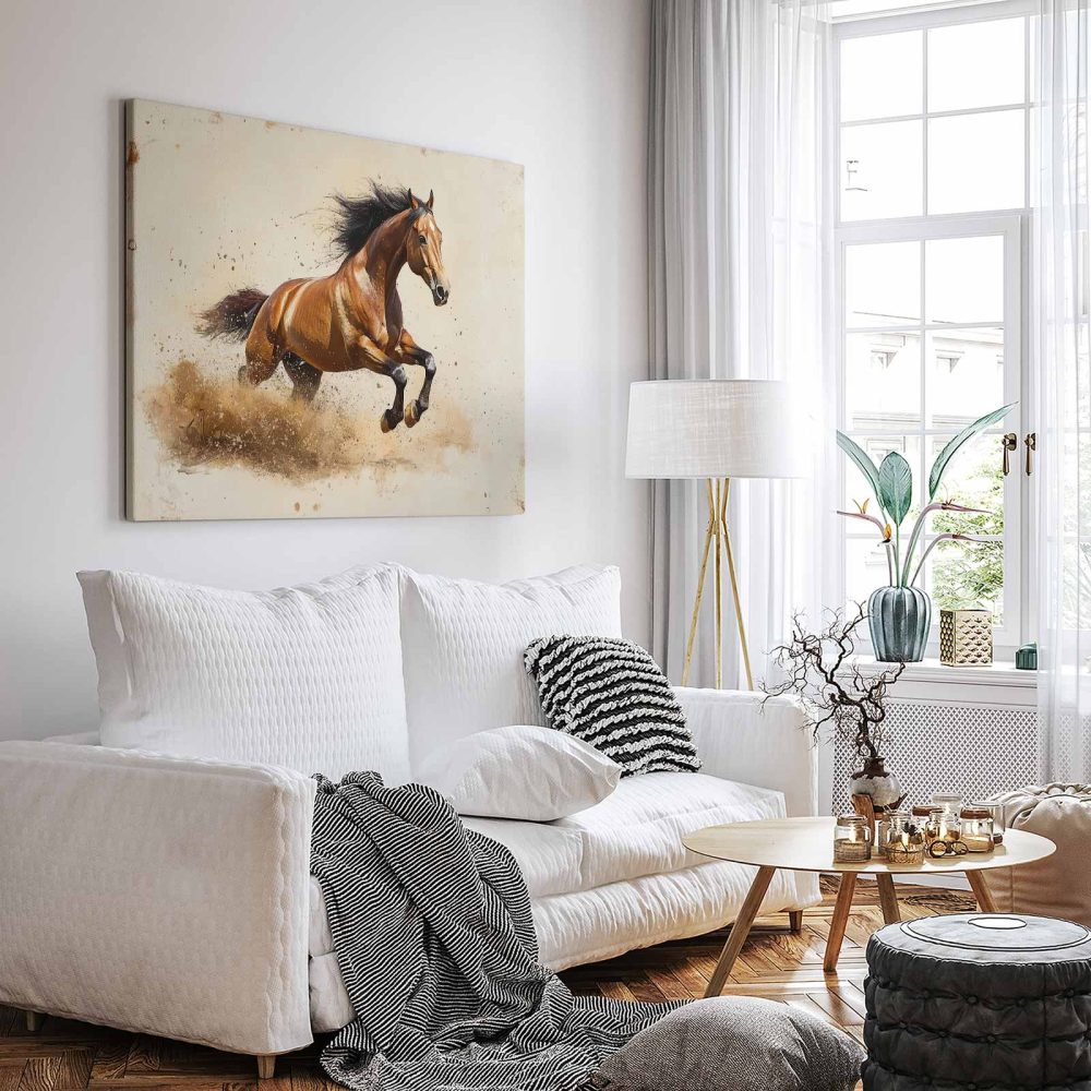 Terug naar collectie / Schilderijen / Dieren Schilderij / Krachtige galopperende bruine paard