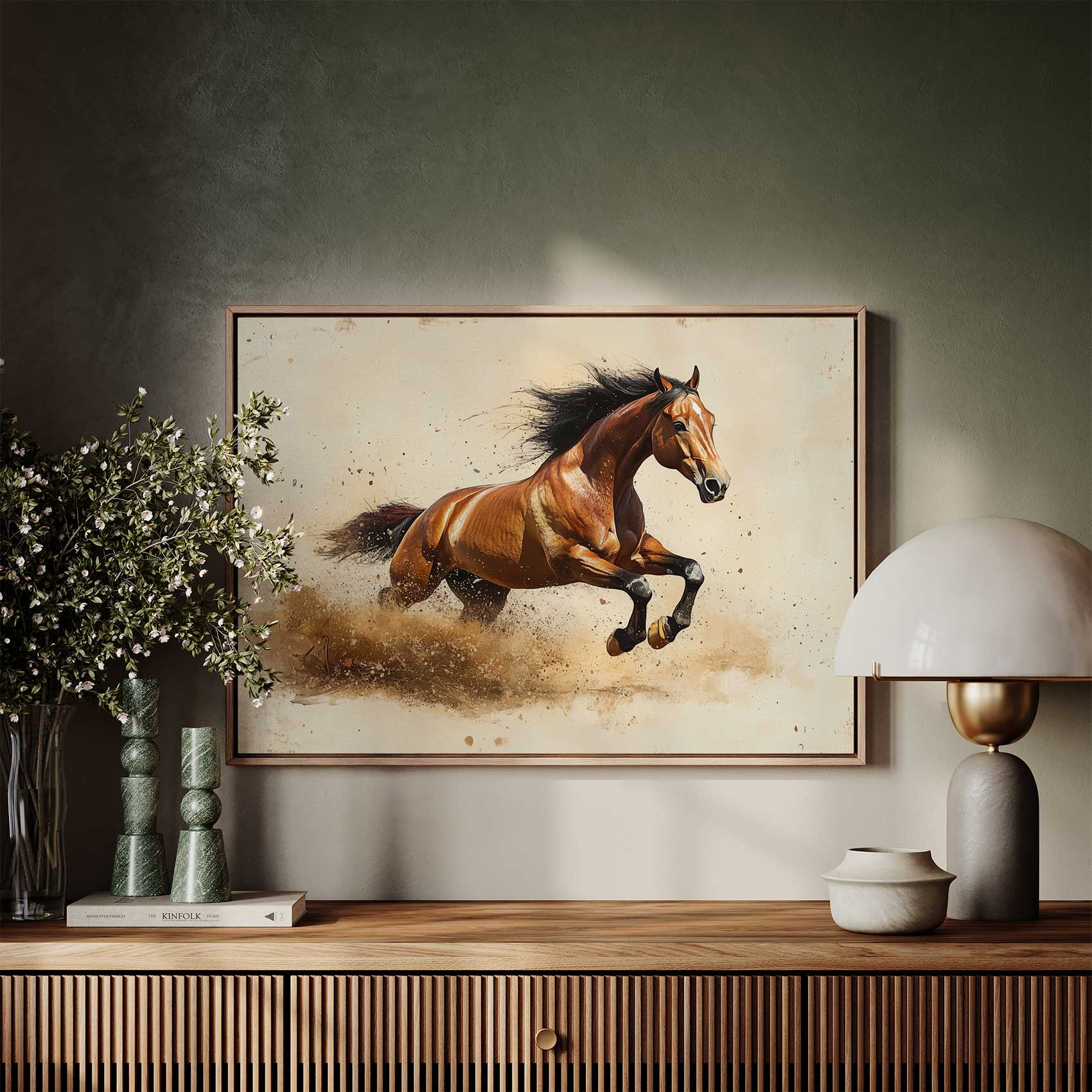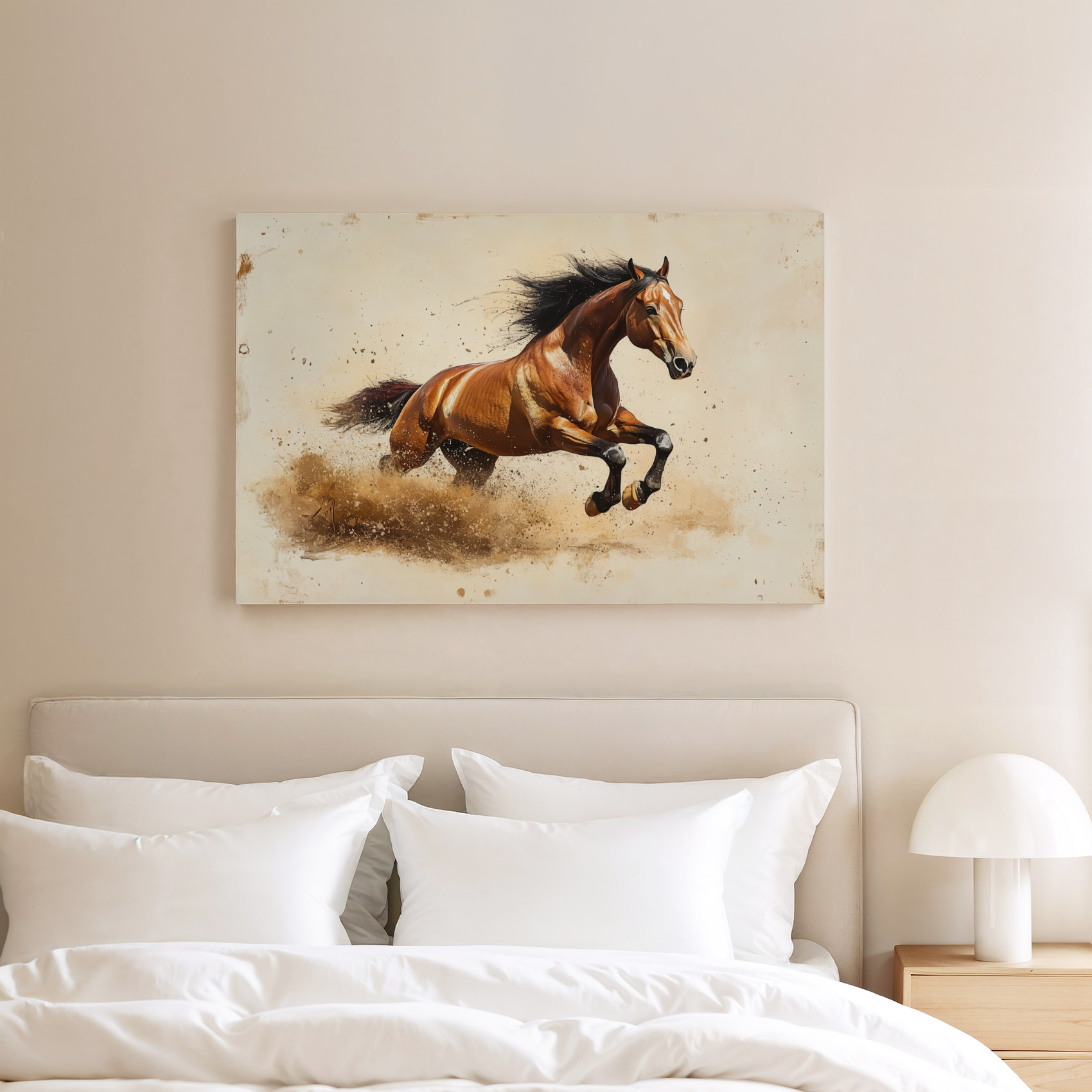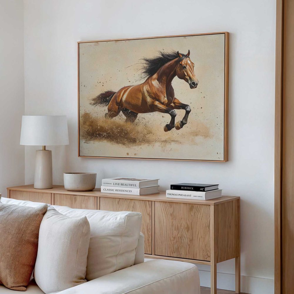Terug naar collectie / Schilderijen / Dieren Schilderij / Krachtige galopperende bruine paard