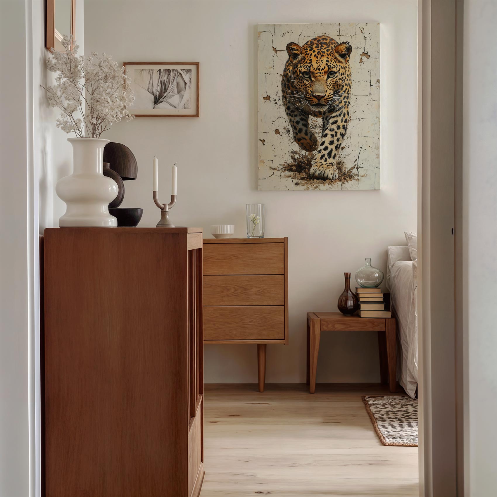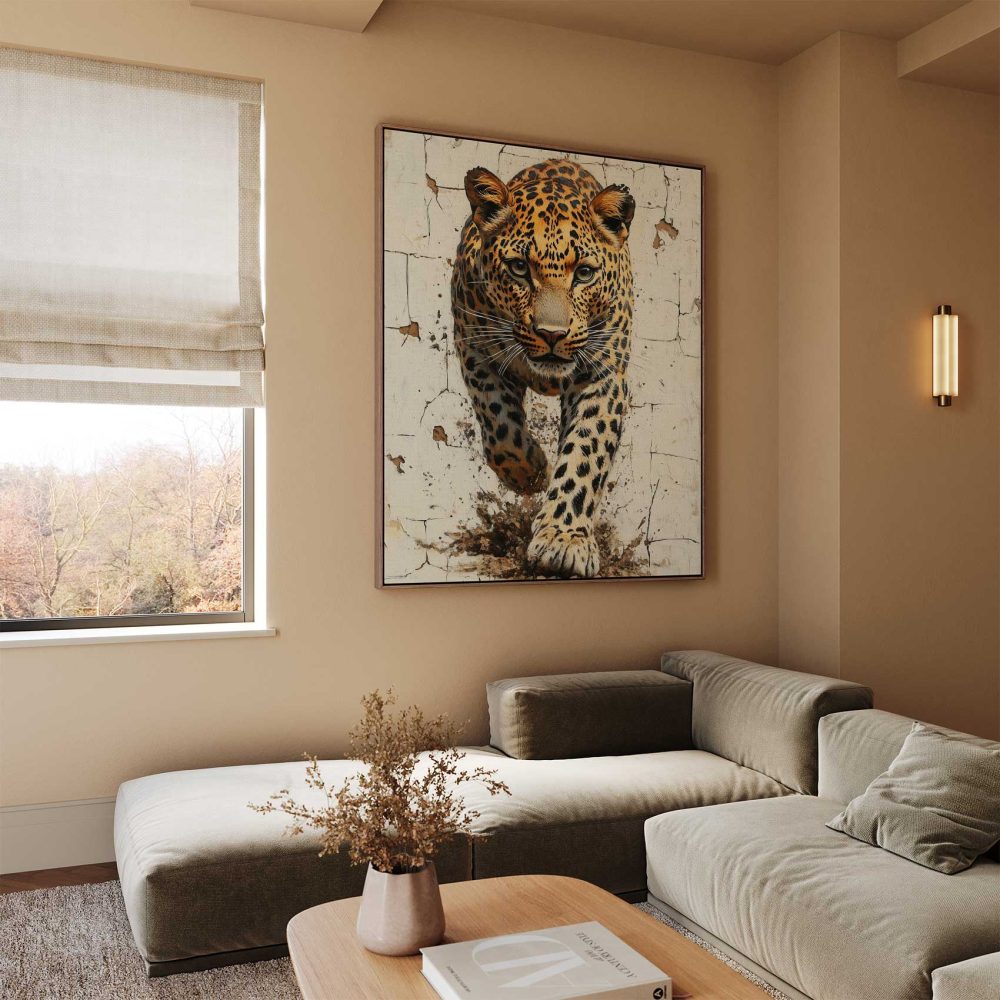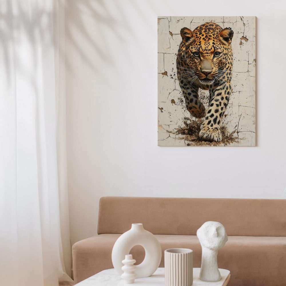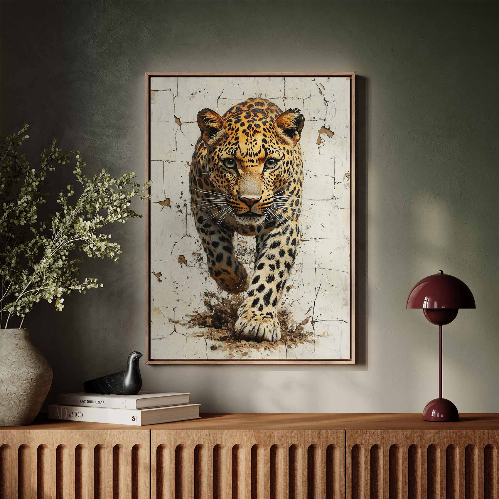 Terug naar collectie / Schilderijen / Dieren Schilderij / Krachtige Luipaard Door Muur