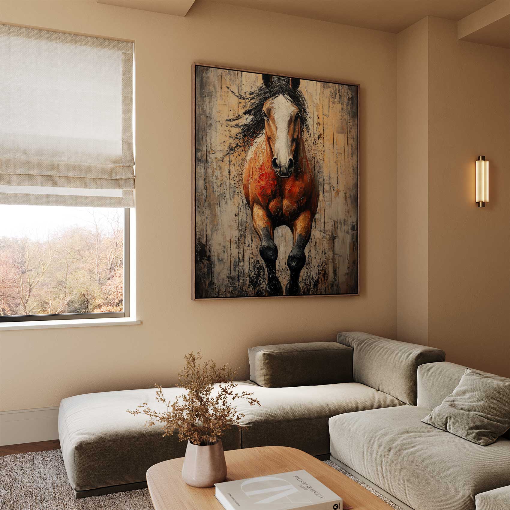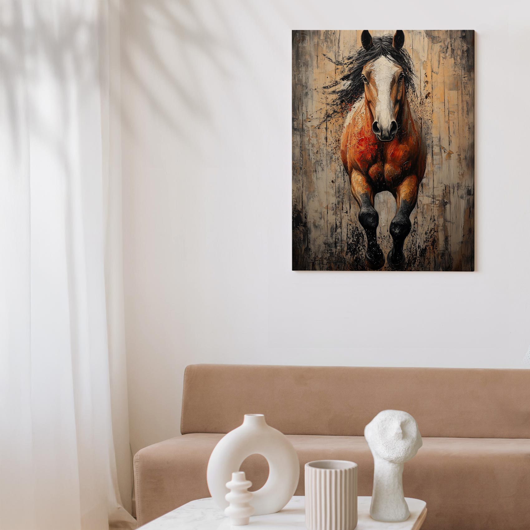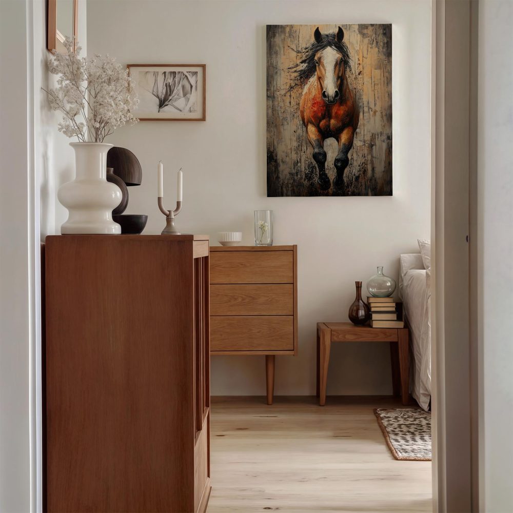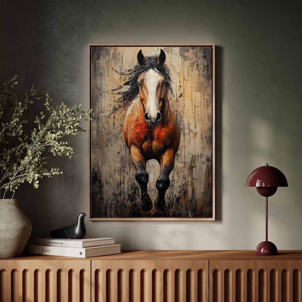 Terug naar collectie / Schilderijen / Abstract Schilderij / Krachtige springende paardenschilderij